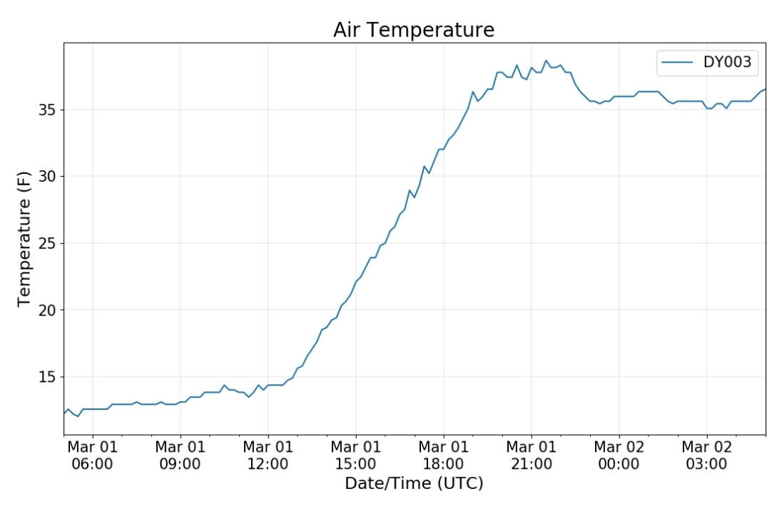 MIN[12.0]—MAX[42.0]—AVERAGE MEAN[27.0]—PRECIP[.02]