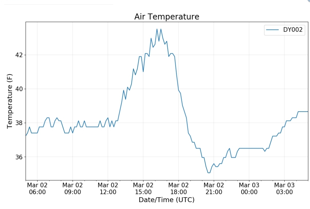 Some early sun, breezy. The morning sun allowed temps to spike, especially Garrett on north. Further south, Snowshoe had some flakes in the air, and down in the NC mts, some accumulating snow across the tops. Showers pushed north by midday. Relatively light.