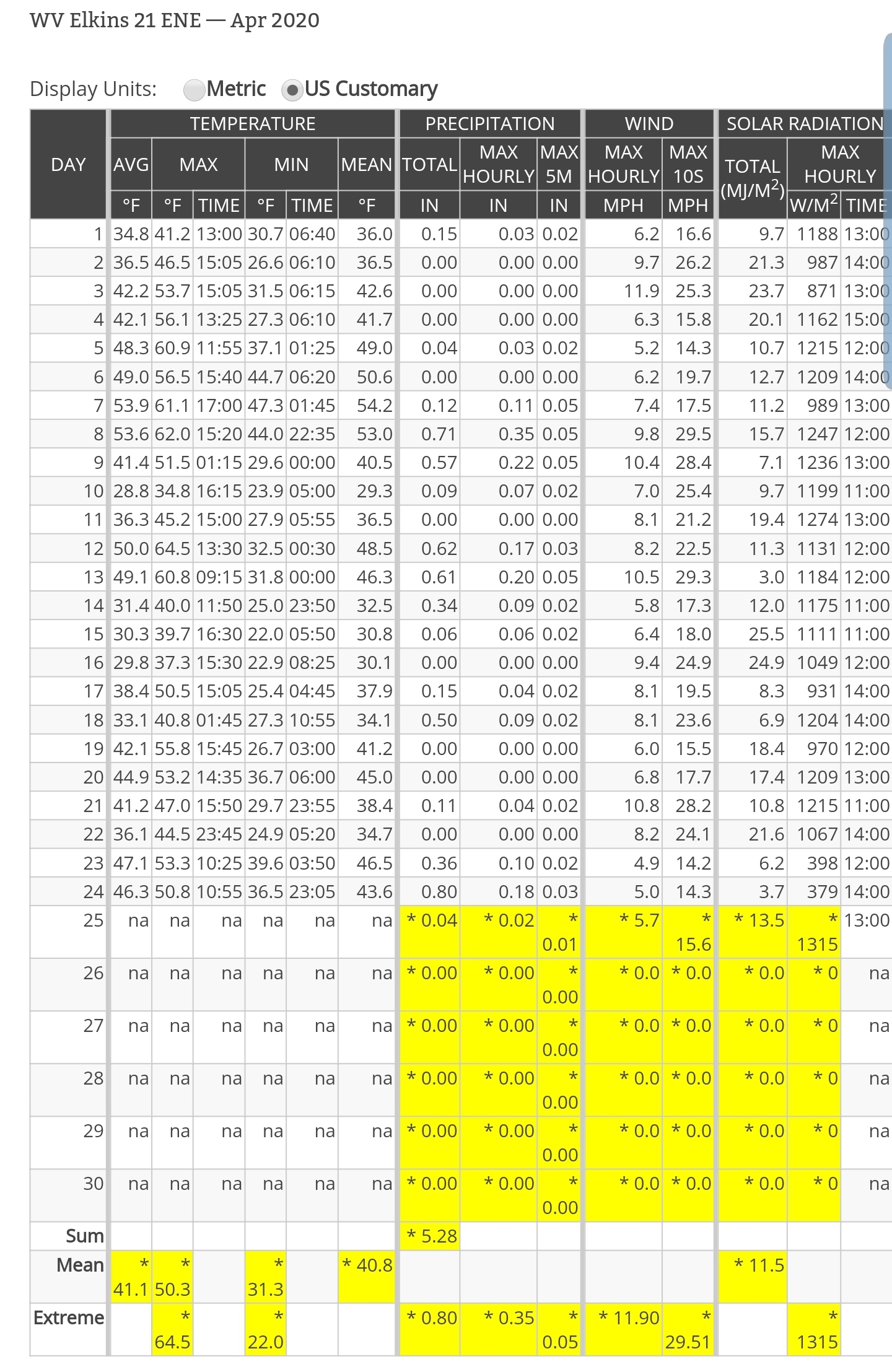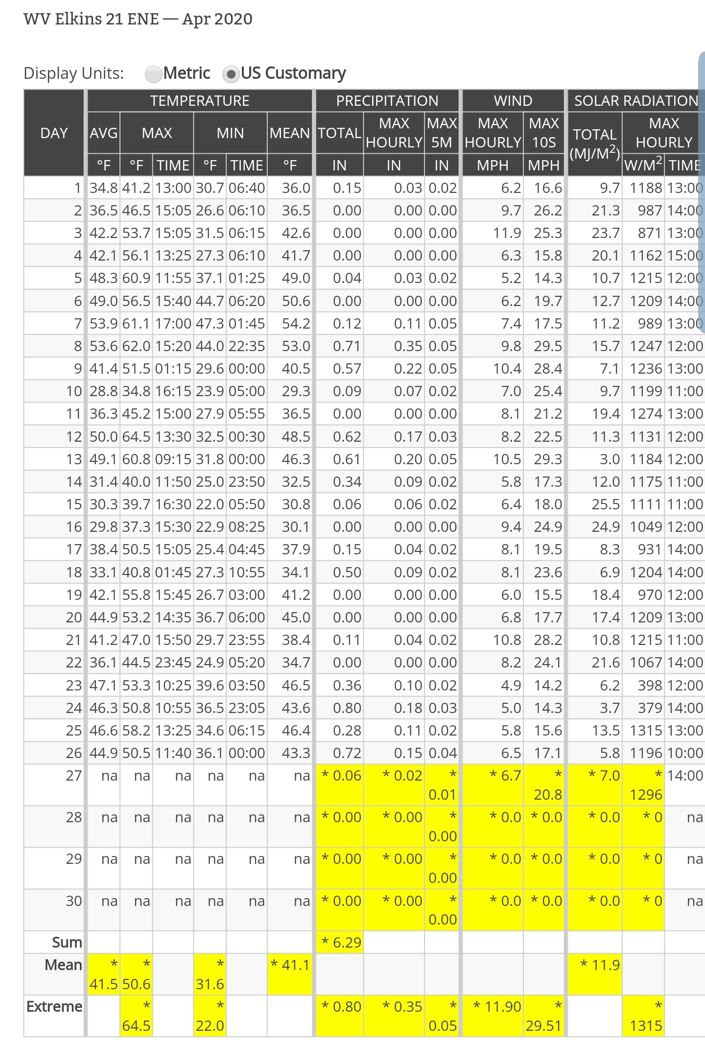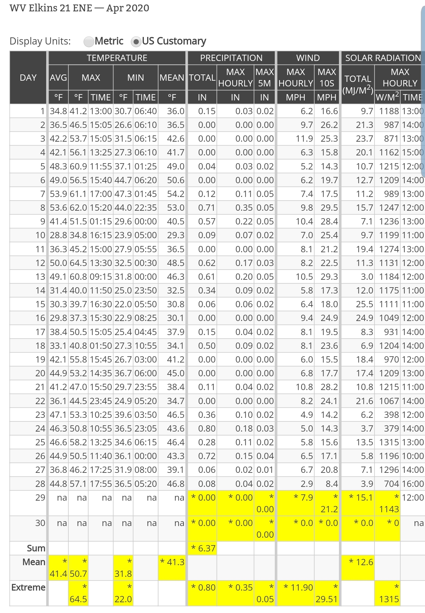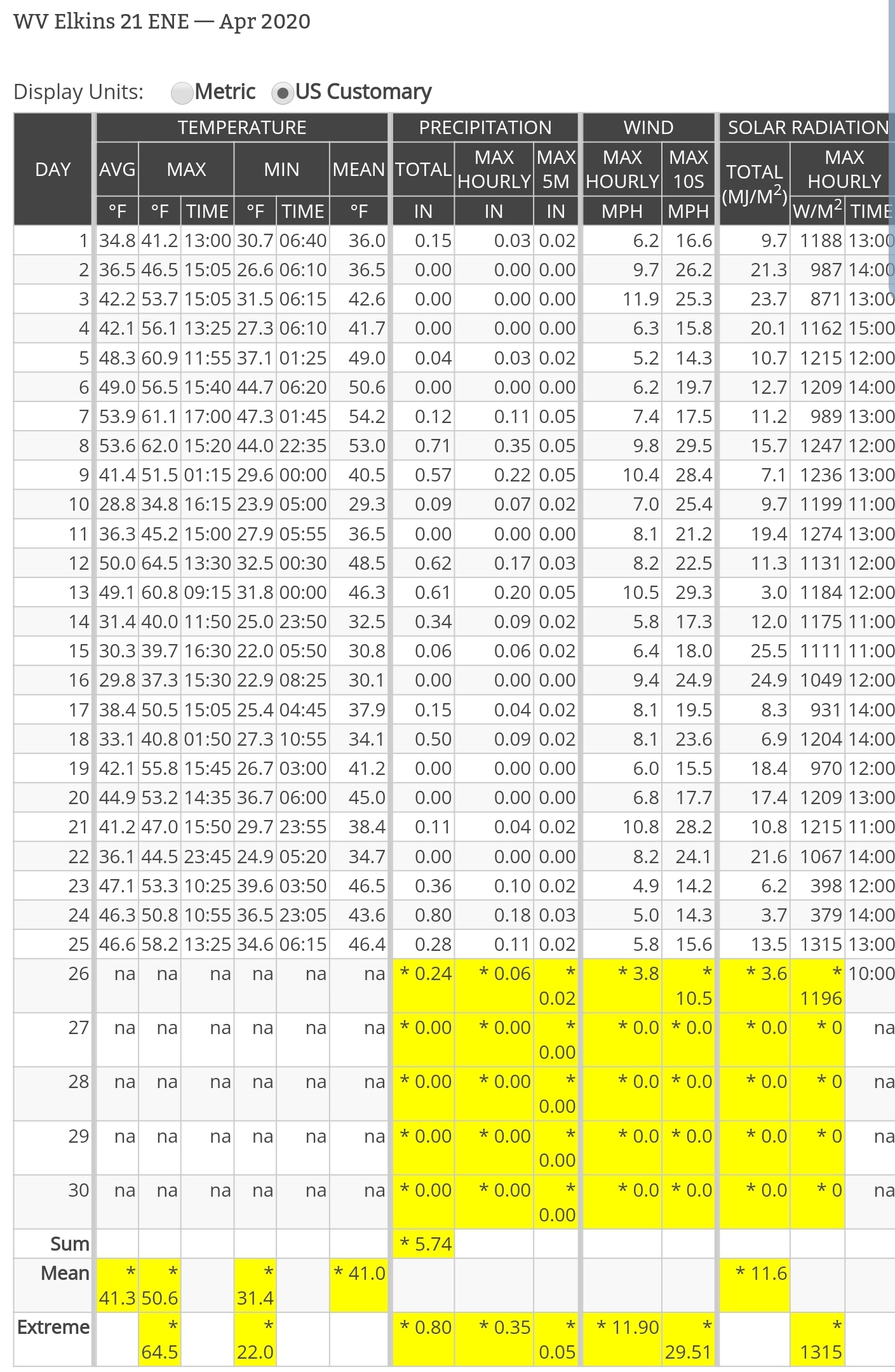 That lead to the wide temp spread that eastern Garrett at Savage Mt was low 40s while Morgantown was mid 70s