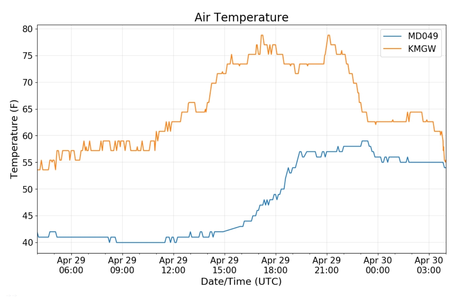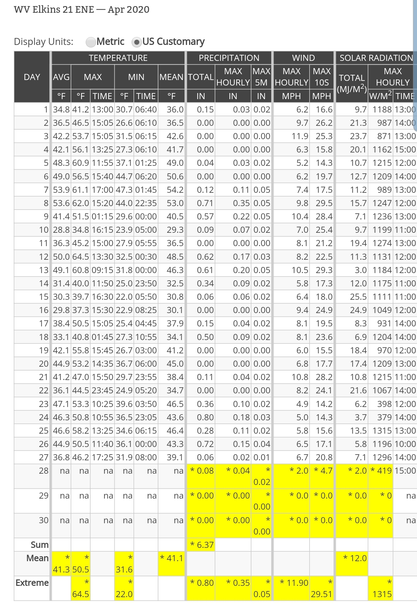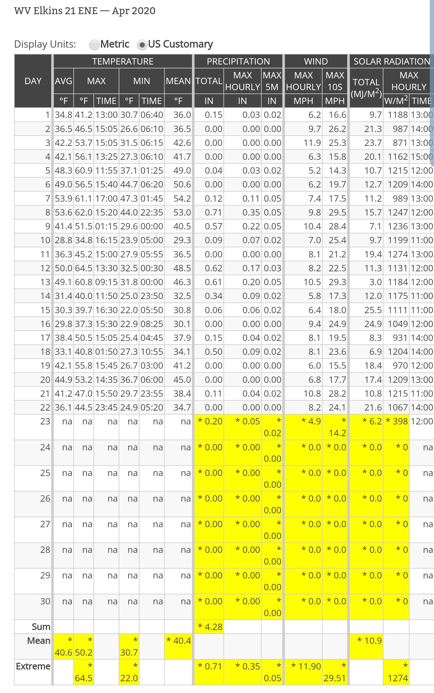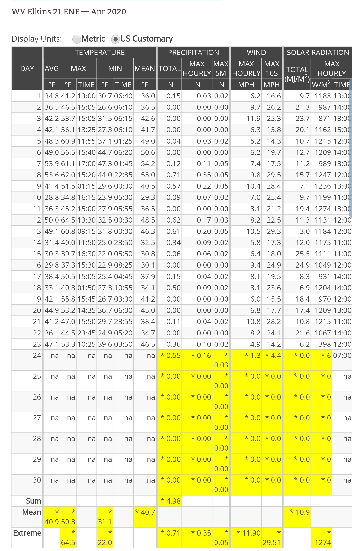 That lead to the wide temp spread that eastern Garrett at Savage Mt was low 40s while Morgantown was mid 70s