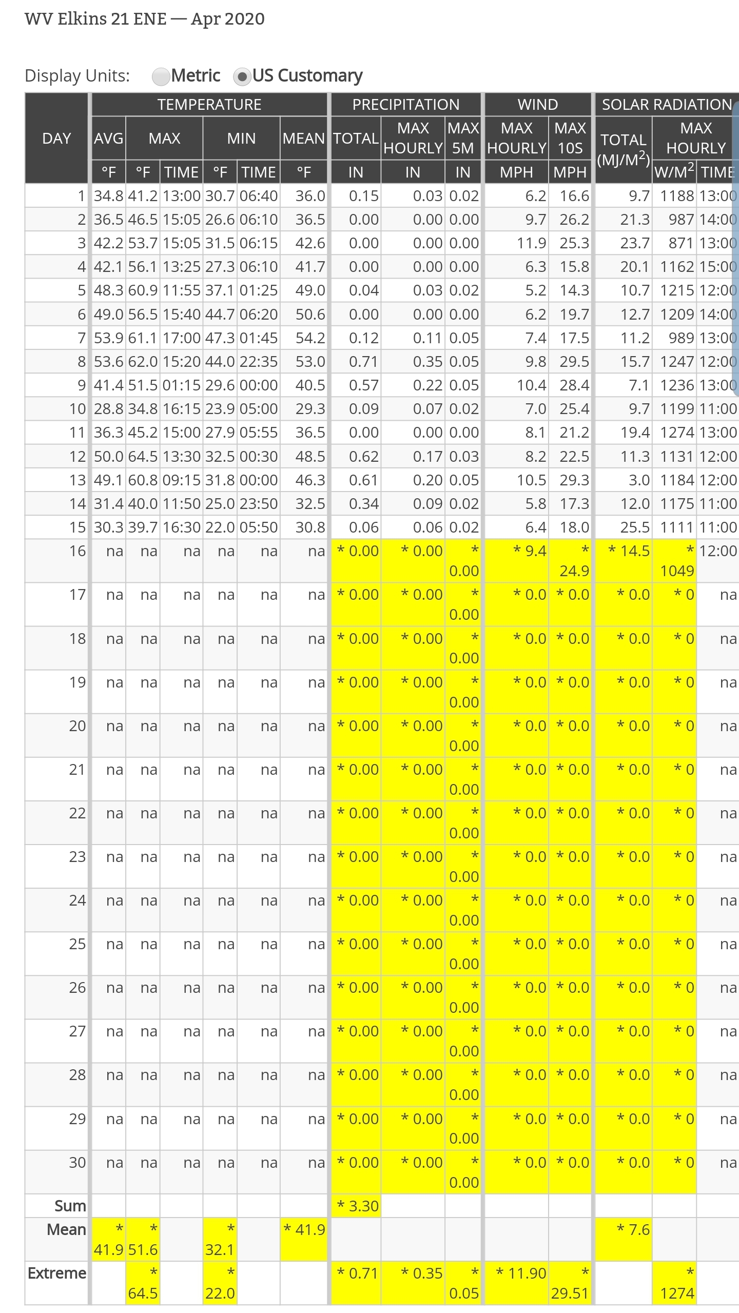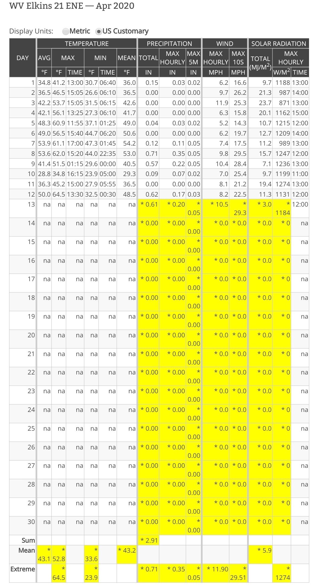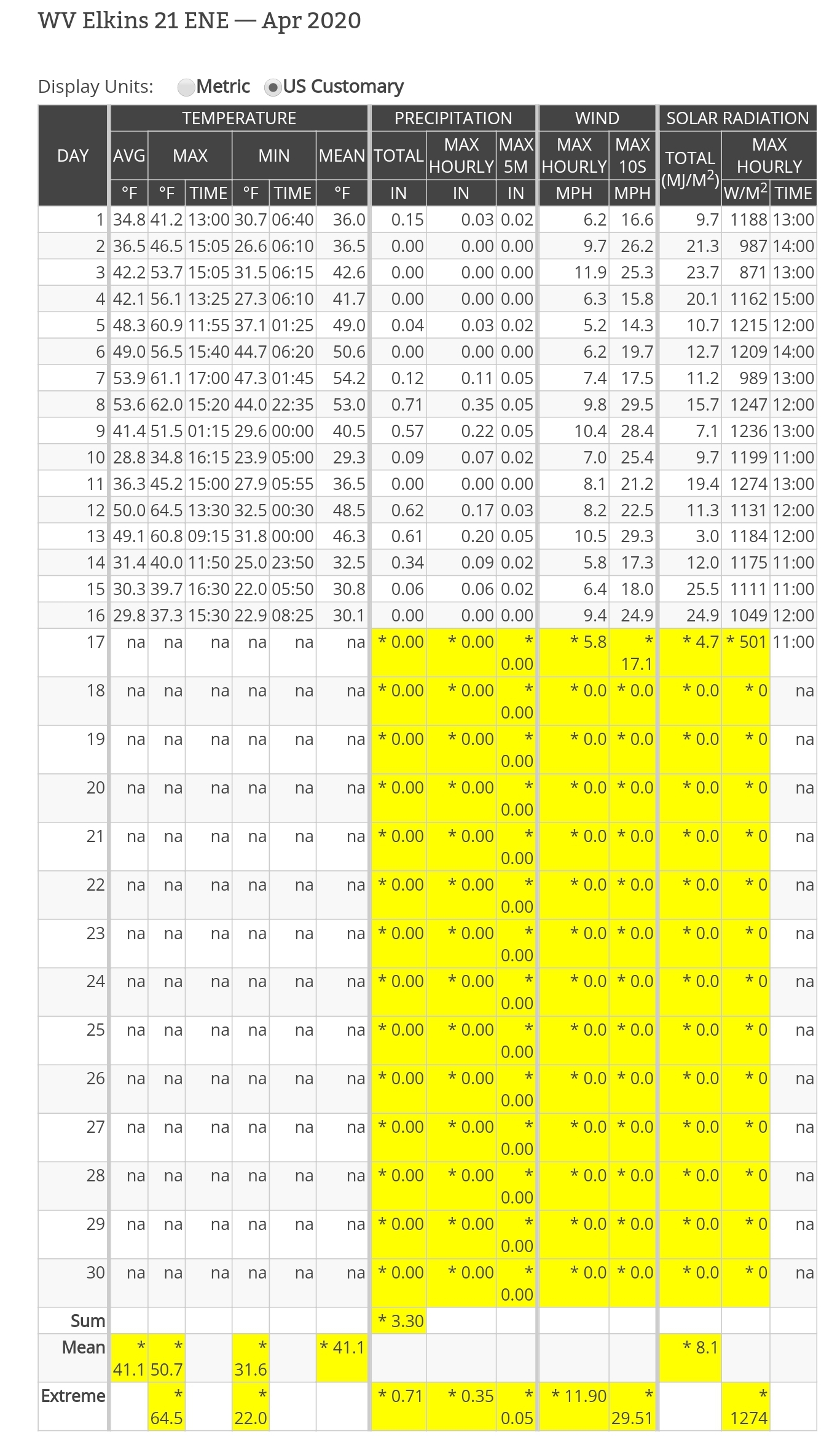 First note- I accidentally deleted the saved daily videos from Northern Garrett, Allegany High. Weatherbug does not archive cams. I did accidentally freeing up storage space for videos at Spruce Knob.
