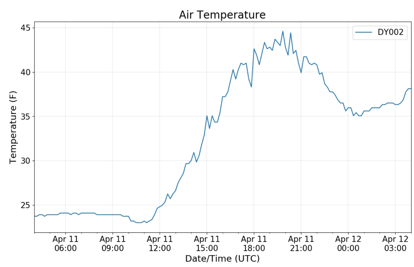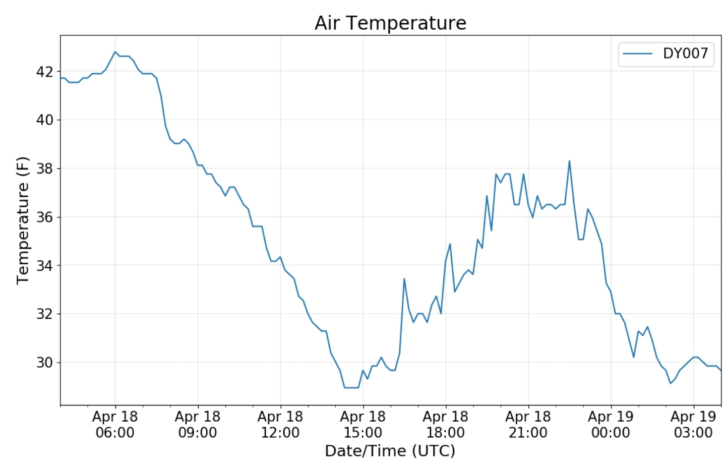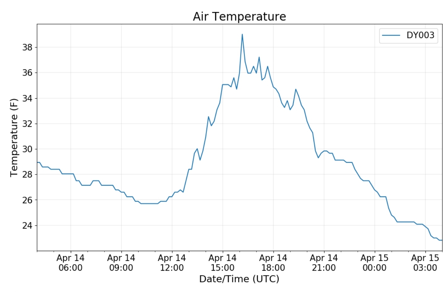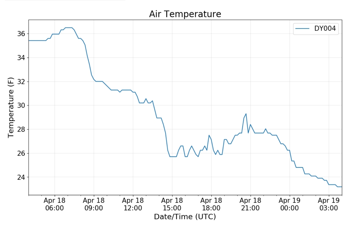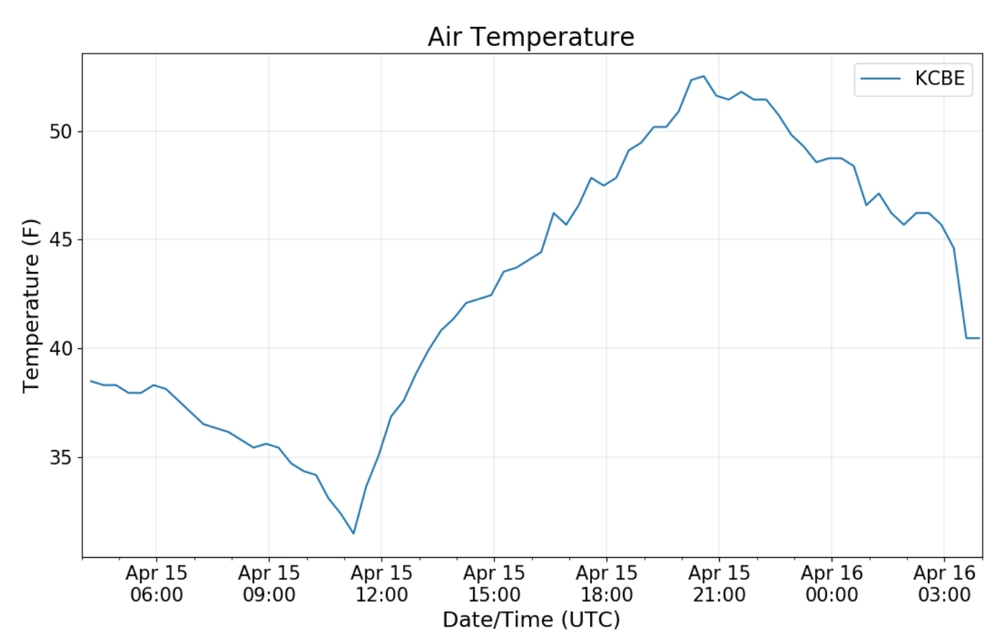 Mostly cloudy, cold, dry air in place, snow began early afternoon despite temps near 40°. Ground covered by evening .