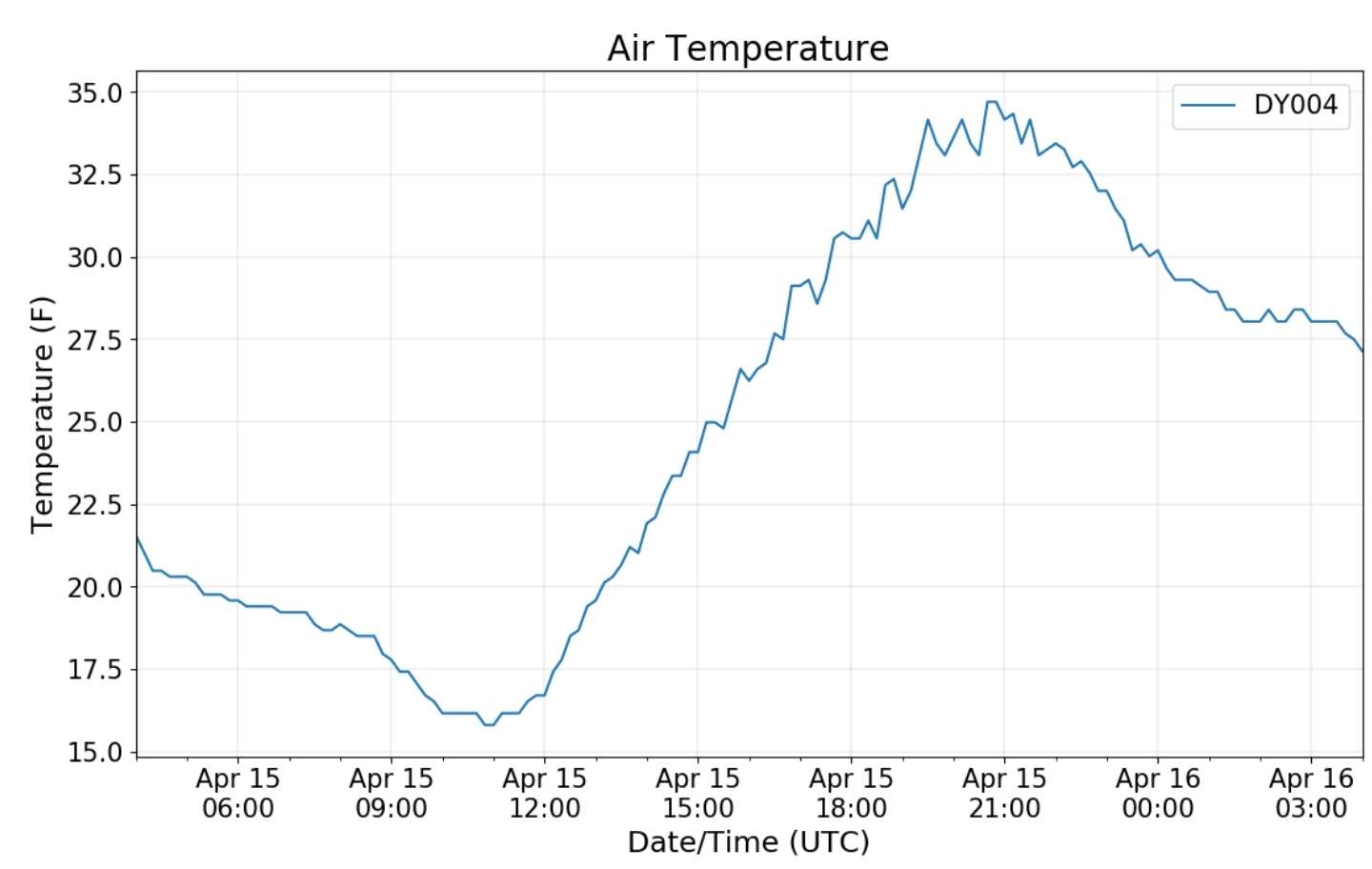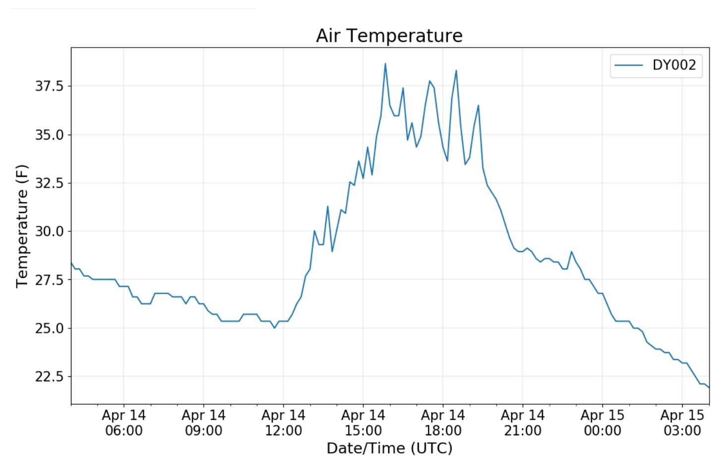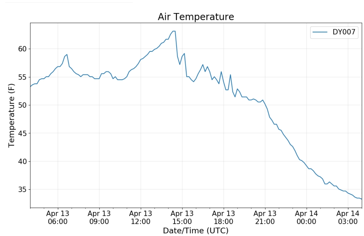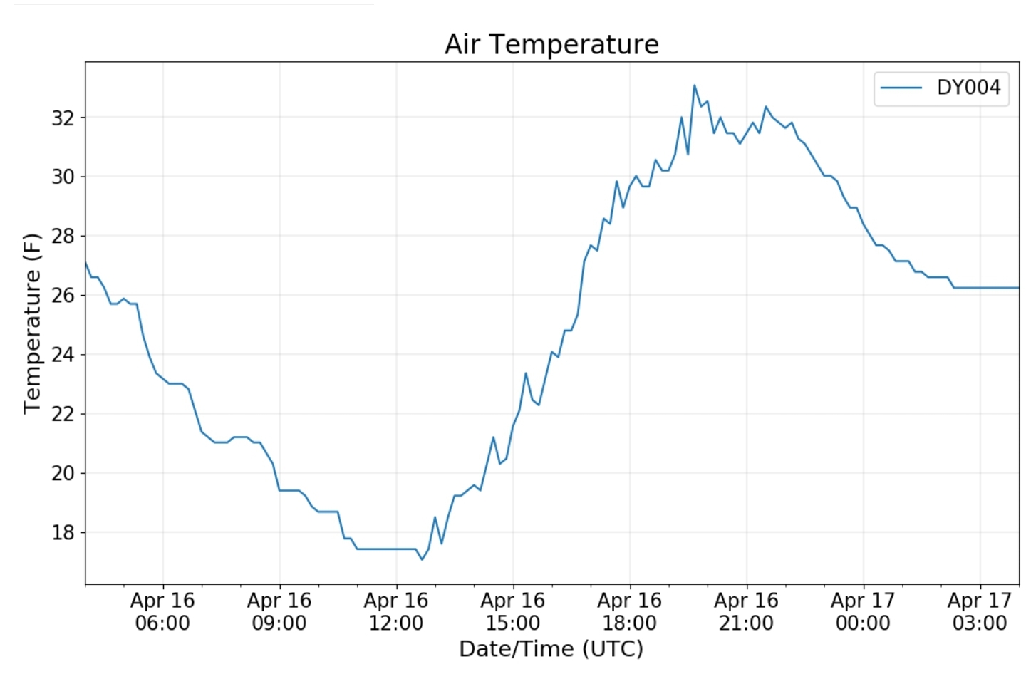 Mostly cloudy, cold, dry air in place, snow began early afternoon despite temps near 40°. Ground covered by evening .