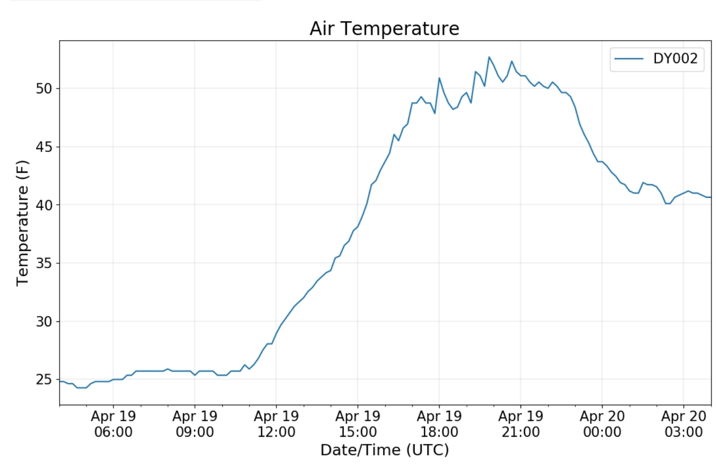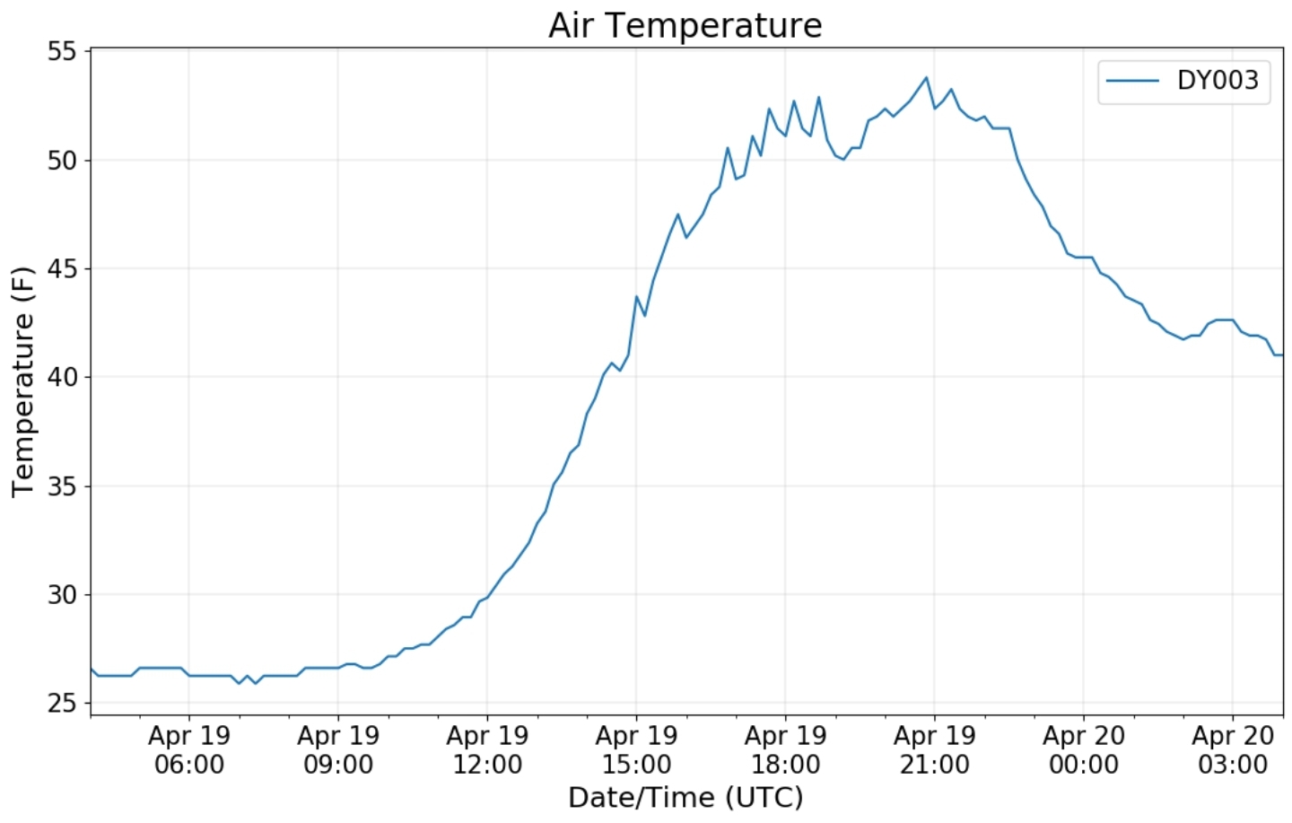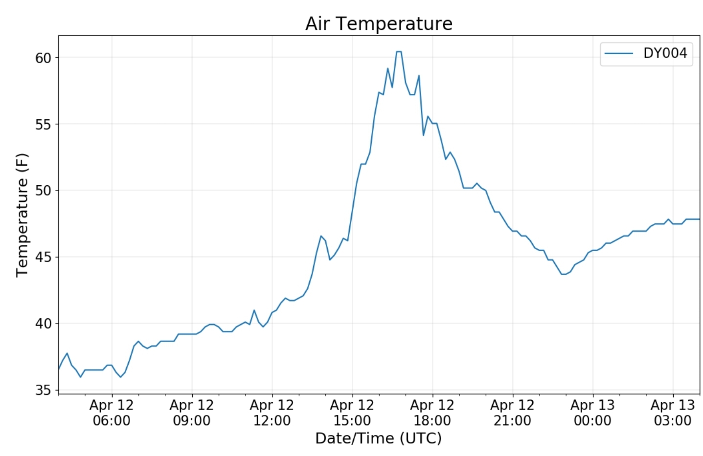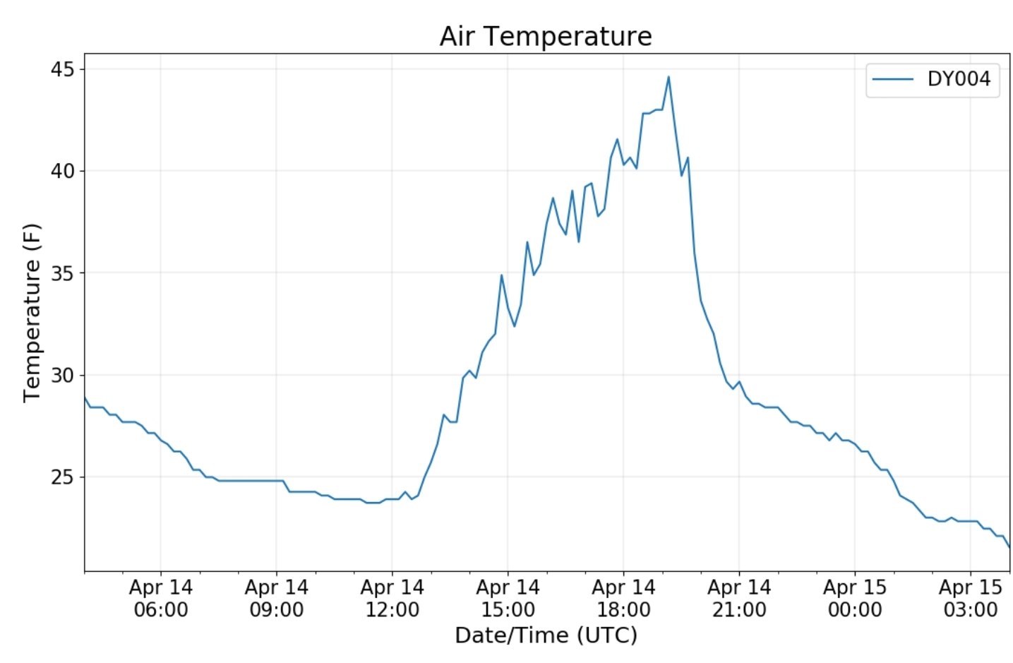 Mostly cloudy, cold, dry air in place, snow began early afternoon despite temps near 40°. Ground covered by evening .
