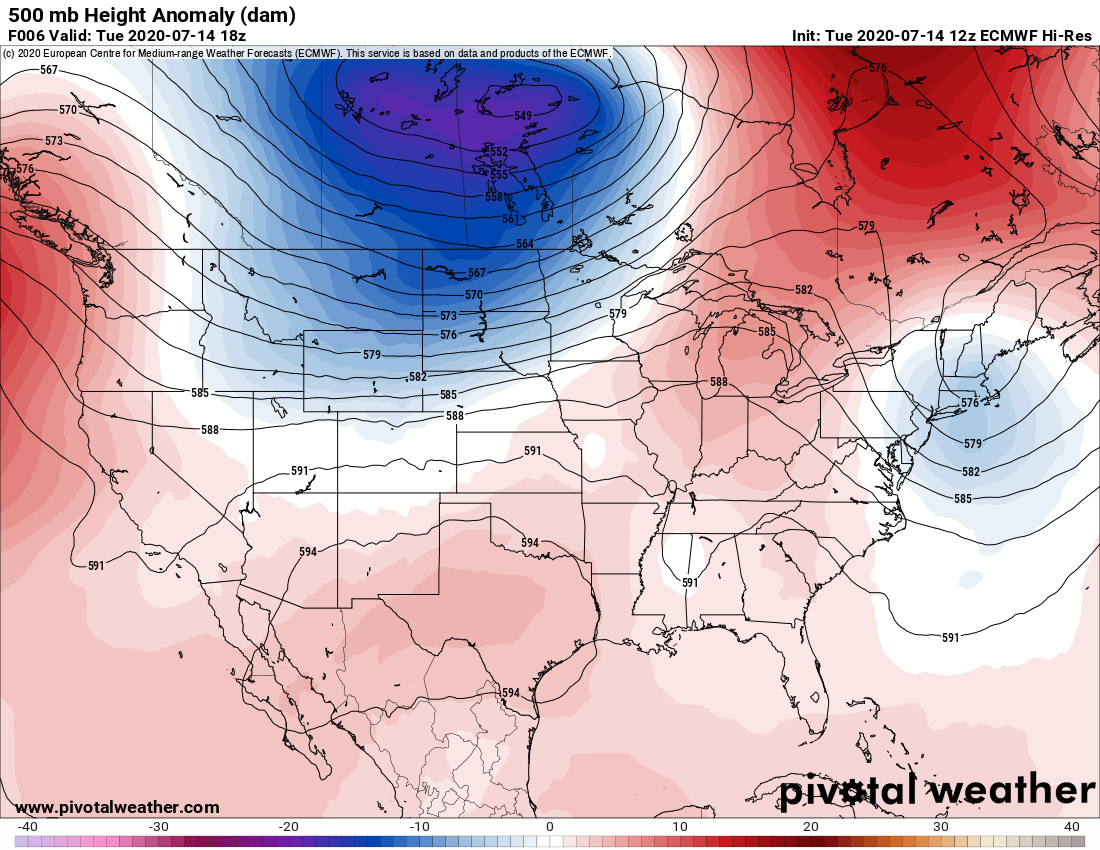 Surface features and 500mb height anomalies and flow