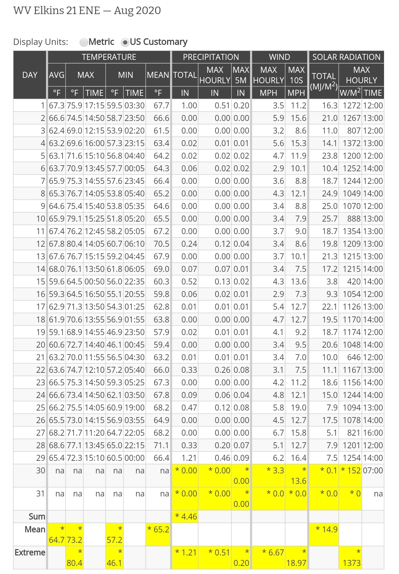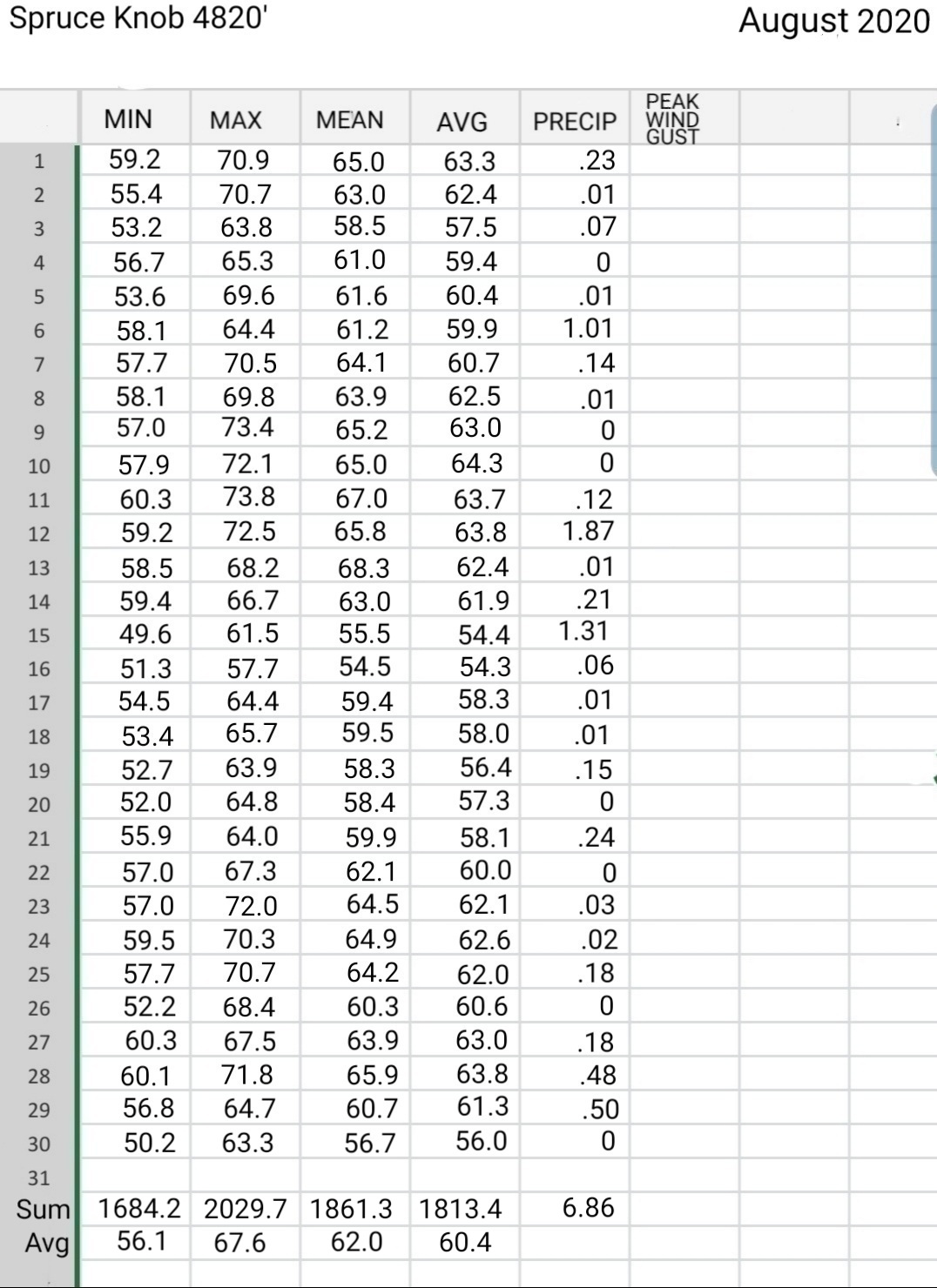 Bald Knob afternoon 8/23/20 “brief light shower”