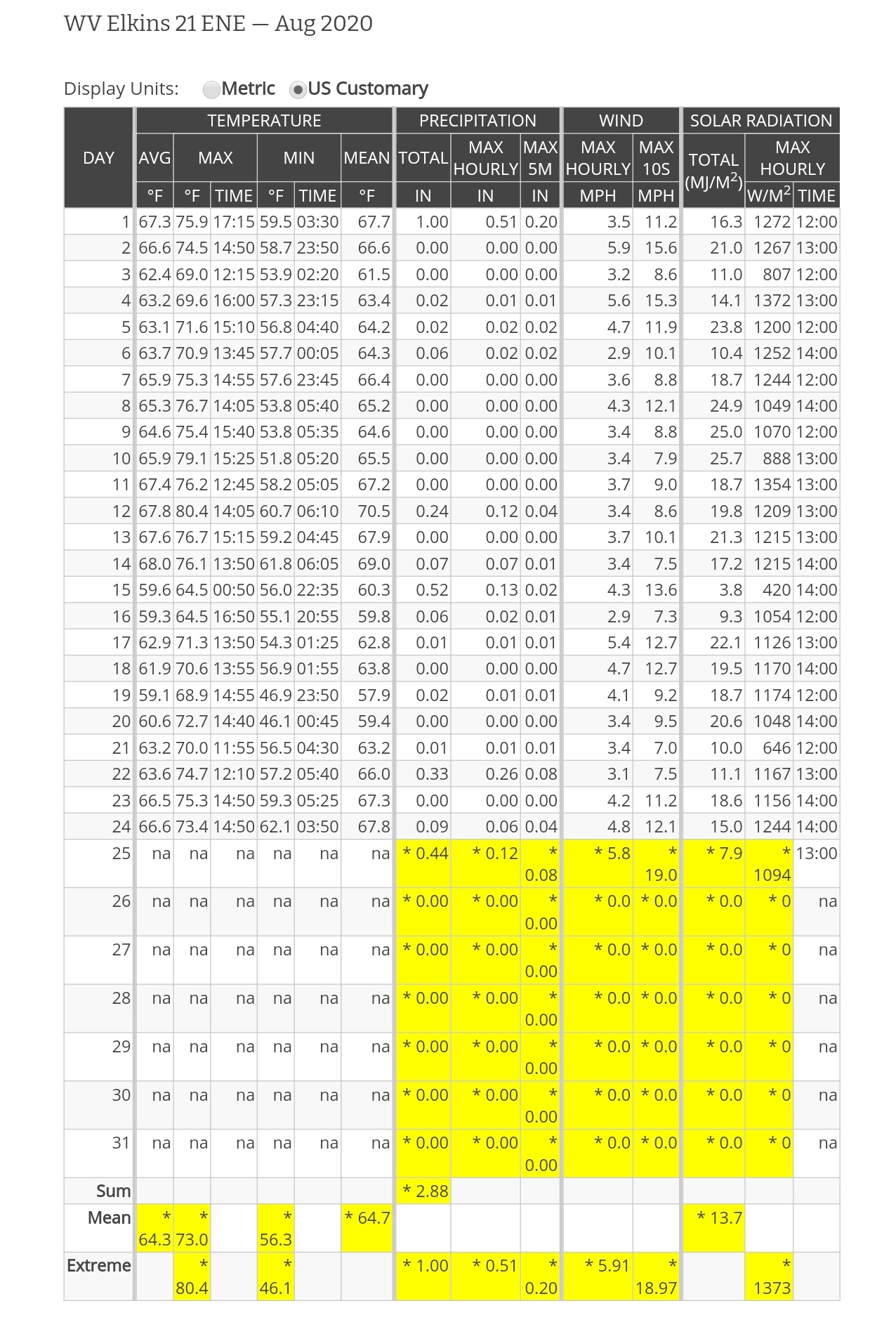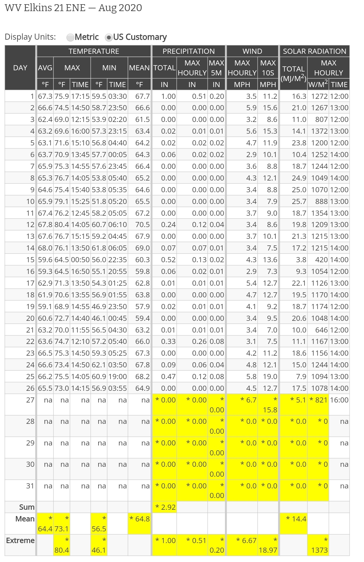 this station runs into daily technical issues that go unresolve . After the date of 8/31/20 this station will be replaced or dropped completely. Too much questionable data.