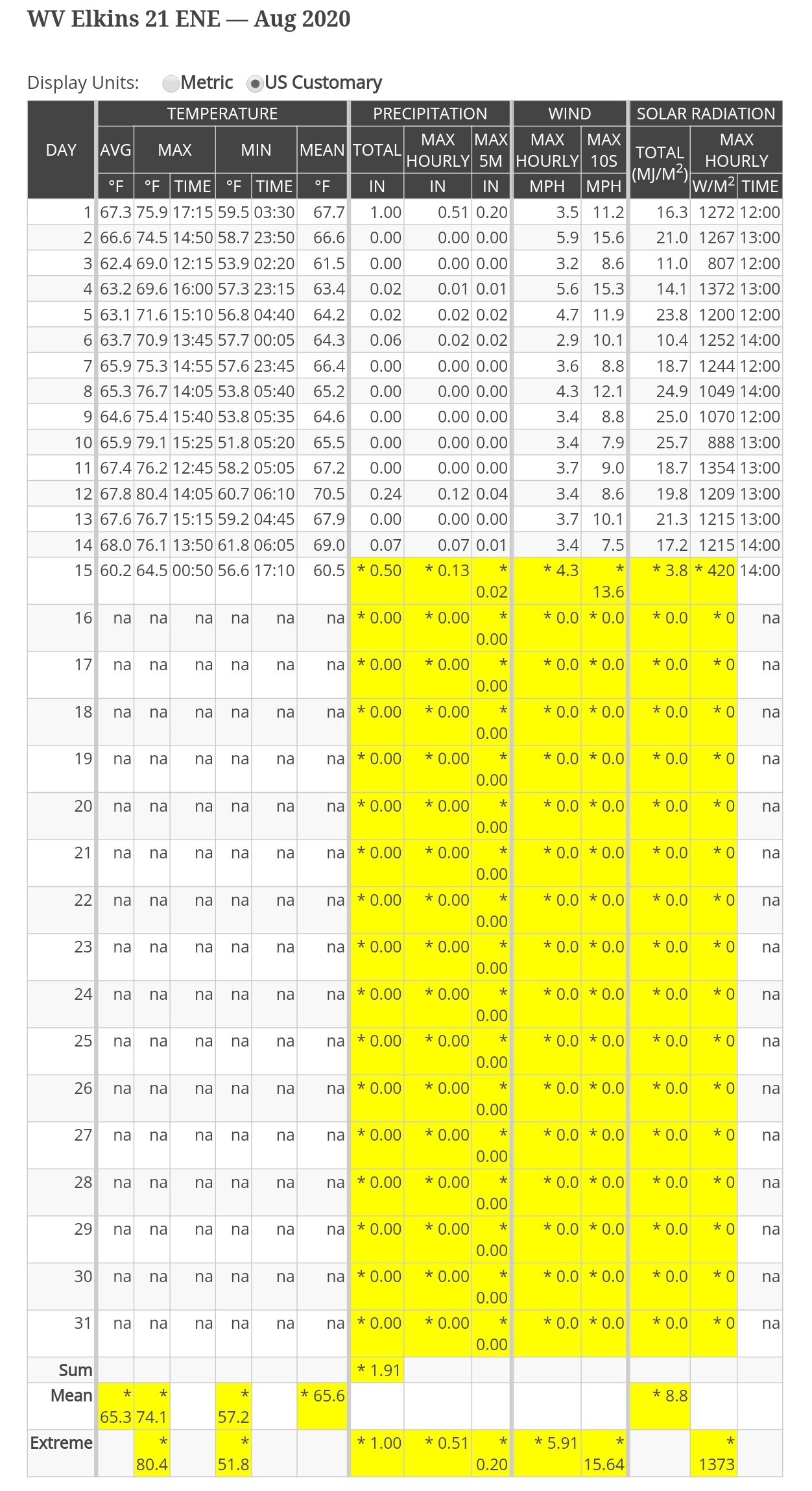 First full day back online. With weeks of data missed. I will not bother making a monthly chart, but will post the daily graph.