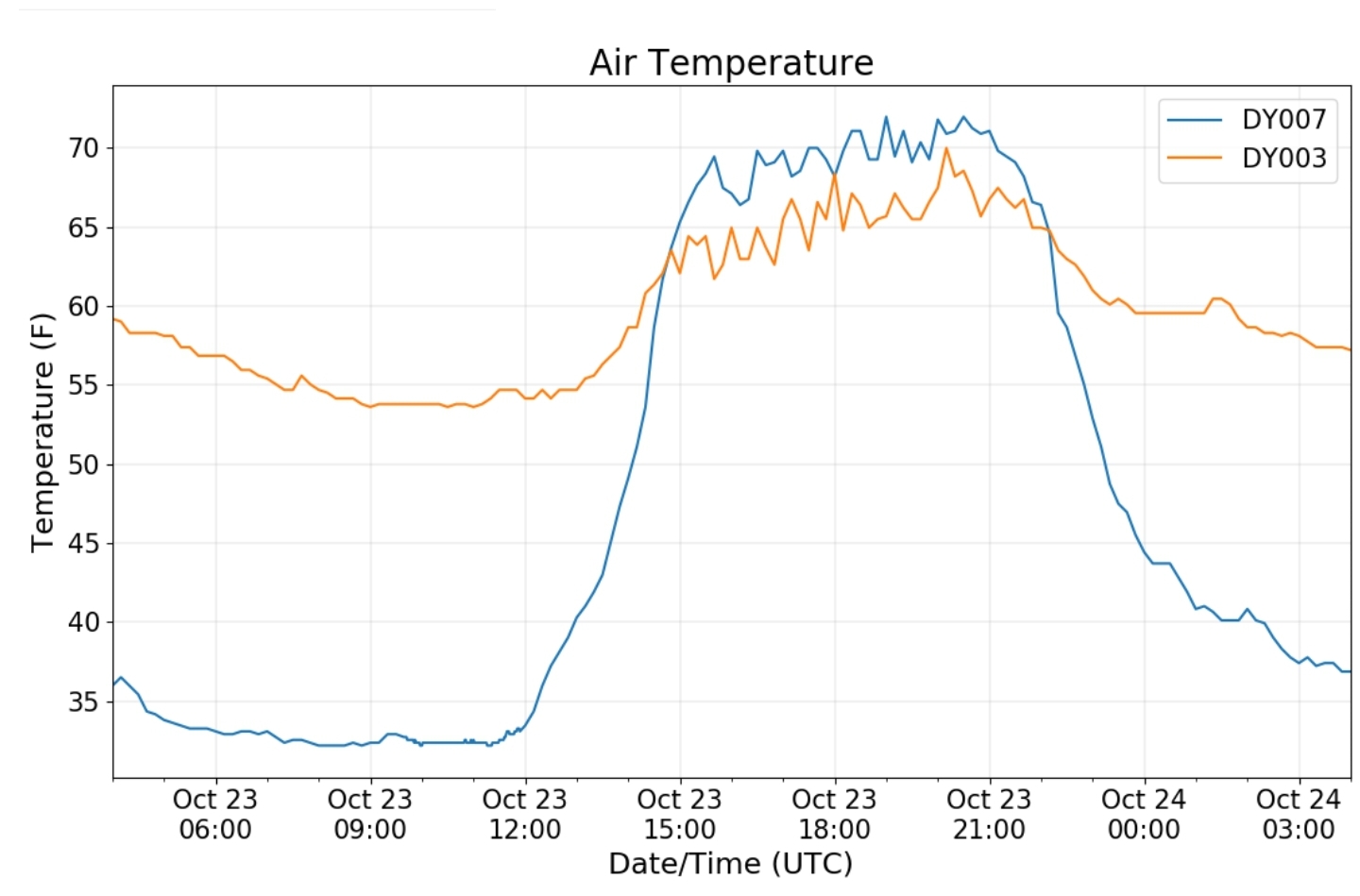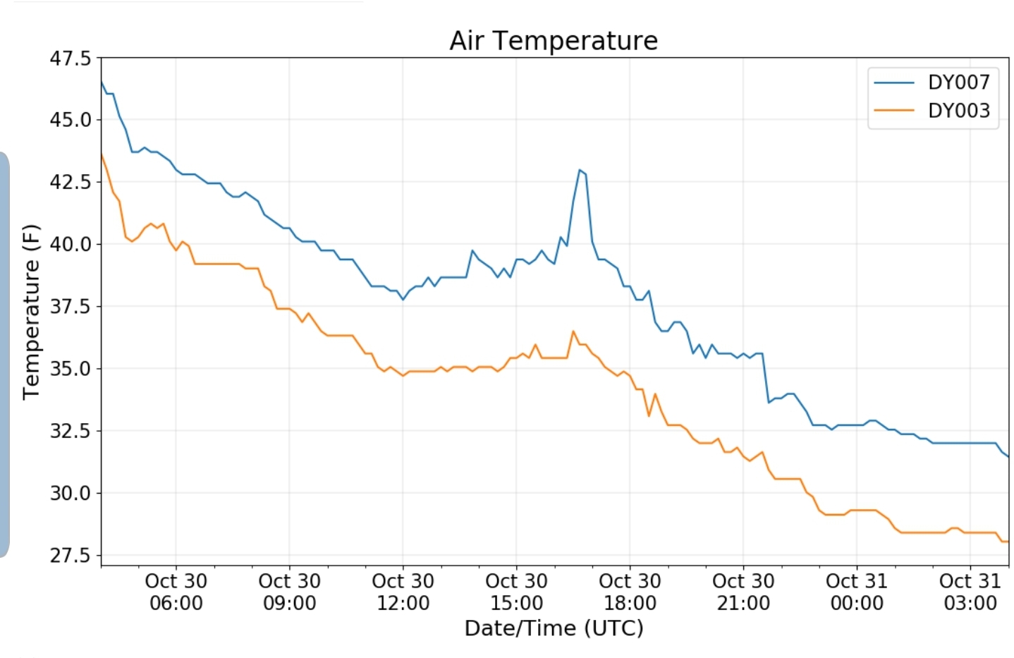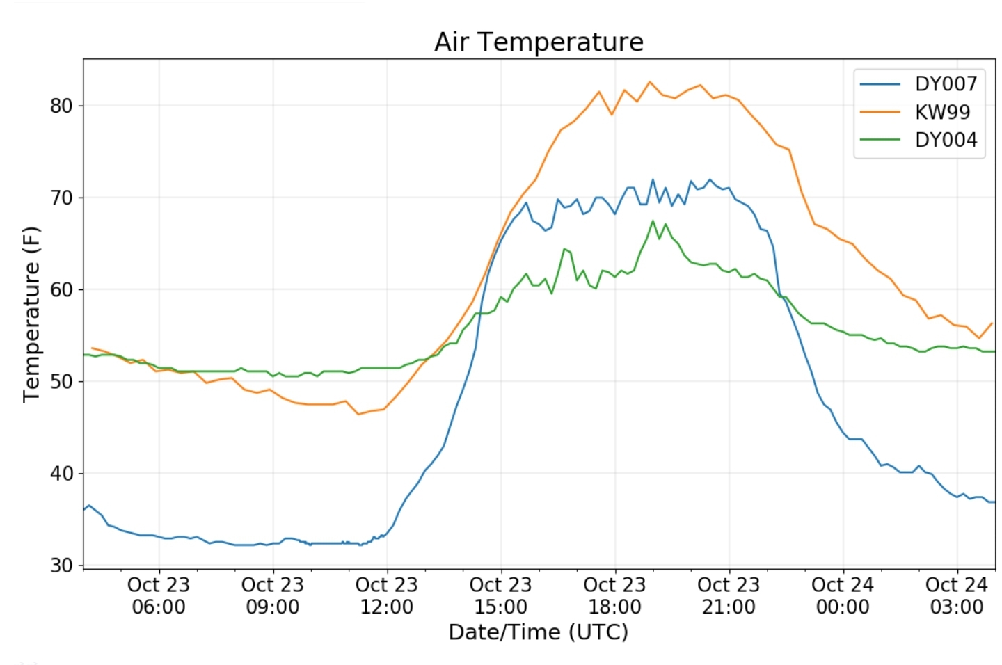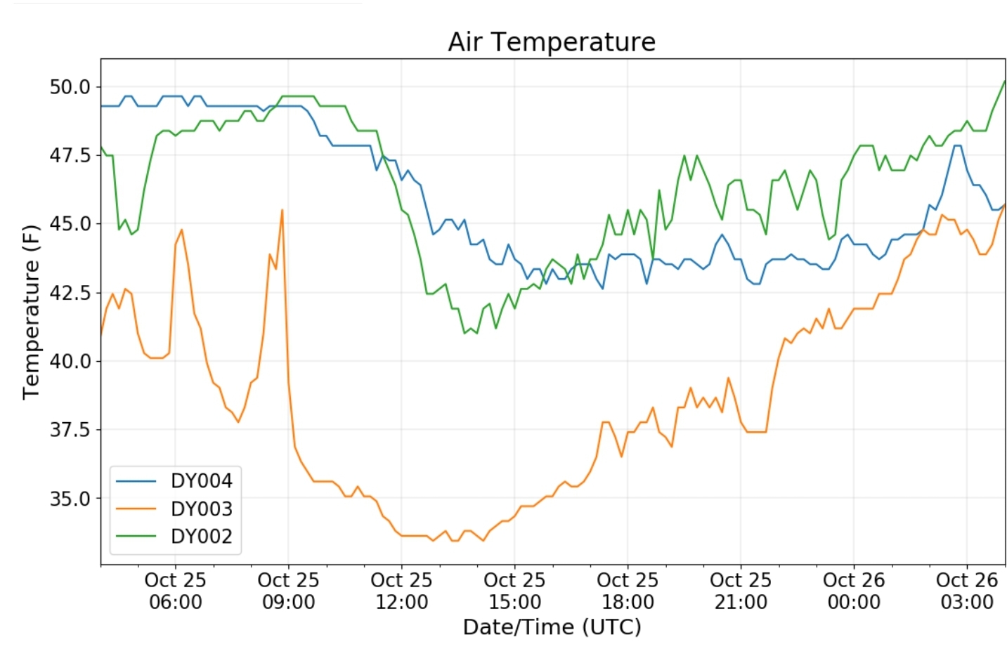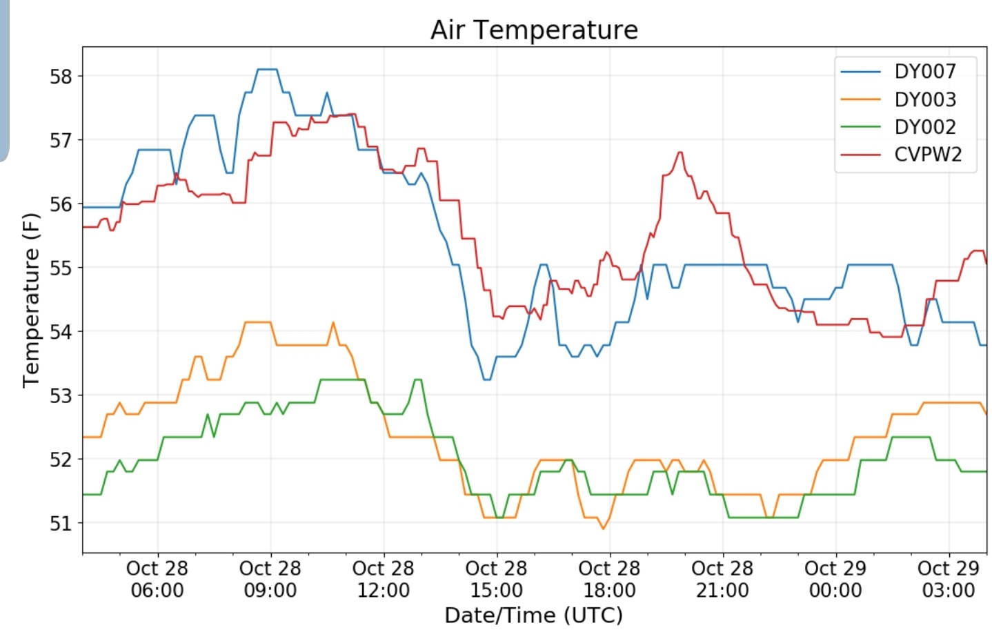 Dy007-Canaan Valley Refuge 3150′, Dy002-Cabin Mt at Bald Knob 4350′, Dy003-Cabin Mt/Sods 4035′, Dy004-Spruce Knob 4820′, Cvpw2-Climate Reference Network Canaan 3479′, KW99-Petersburg Grant County Airport 961′