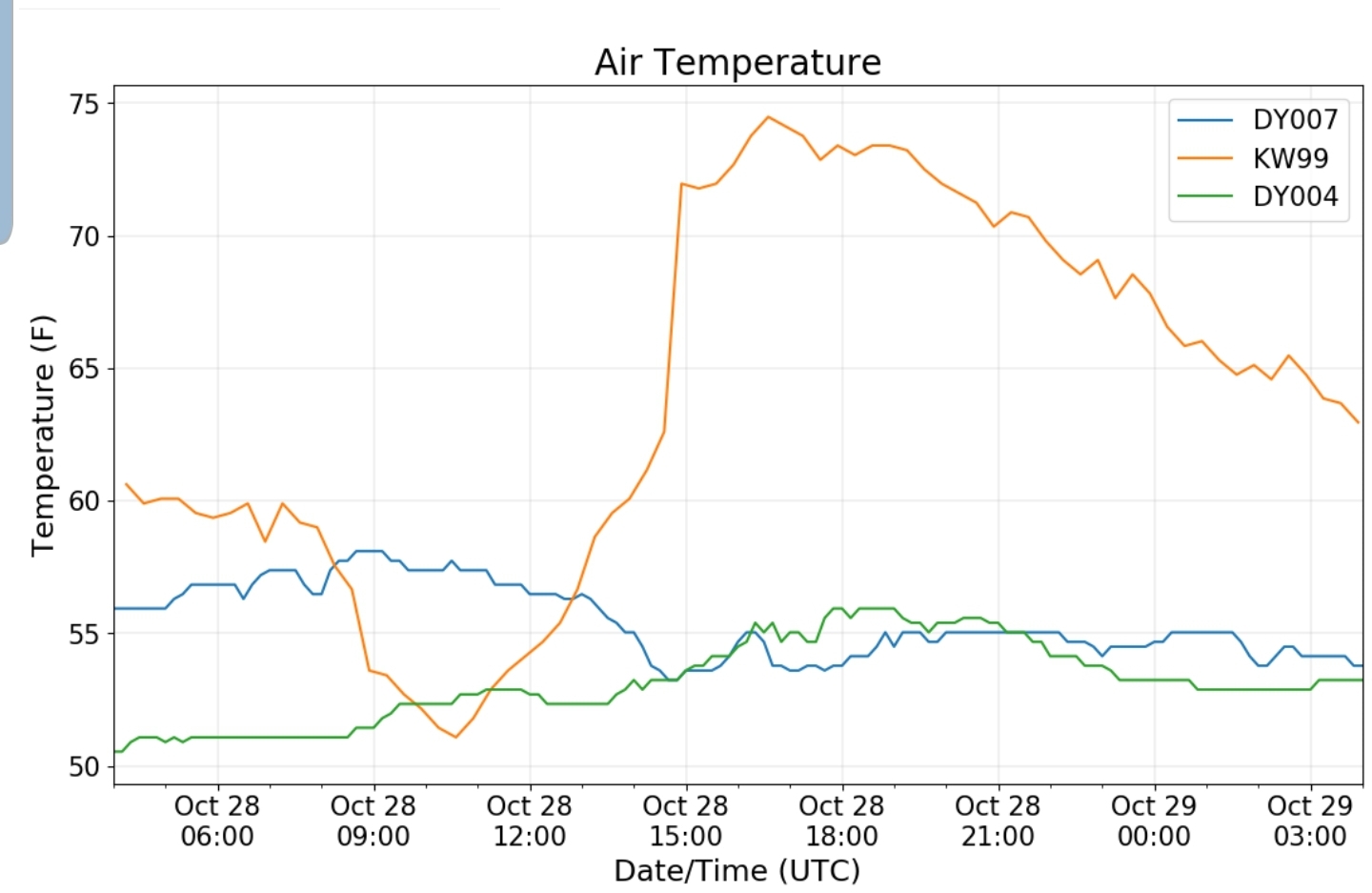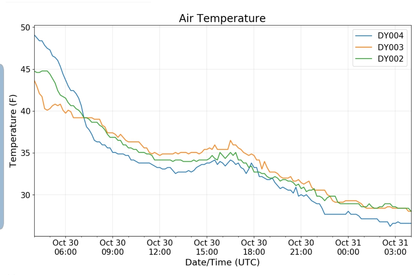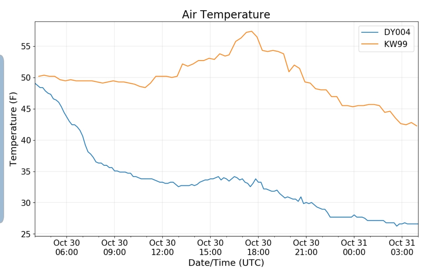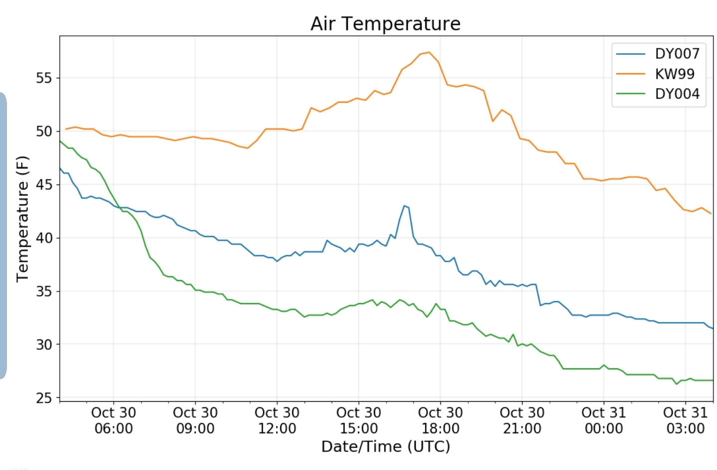 Dy007-Canaan Valley Refuge 3150′, Dy002-Cabin Mt at Bald Knob 4350′, Dy003-Cabin Mt/Sods 4035′, Dy004-Spruce Knob 4820′, Cvpw2-Climate Reference Network Canaan 3479′, KW99-Petersburg Grant County Airport 961′