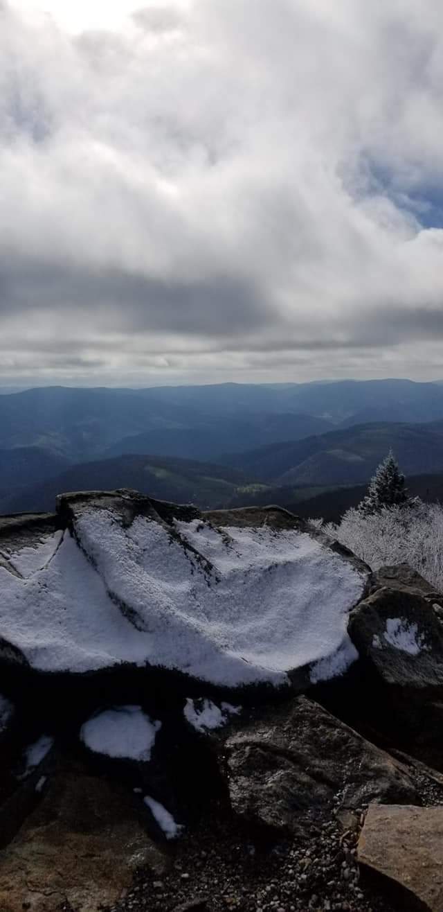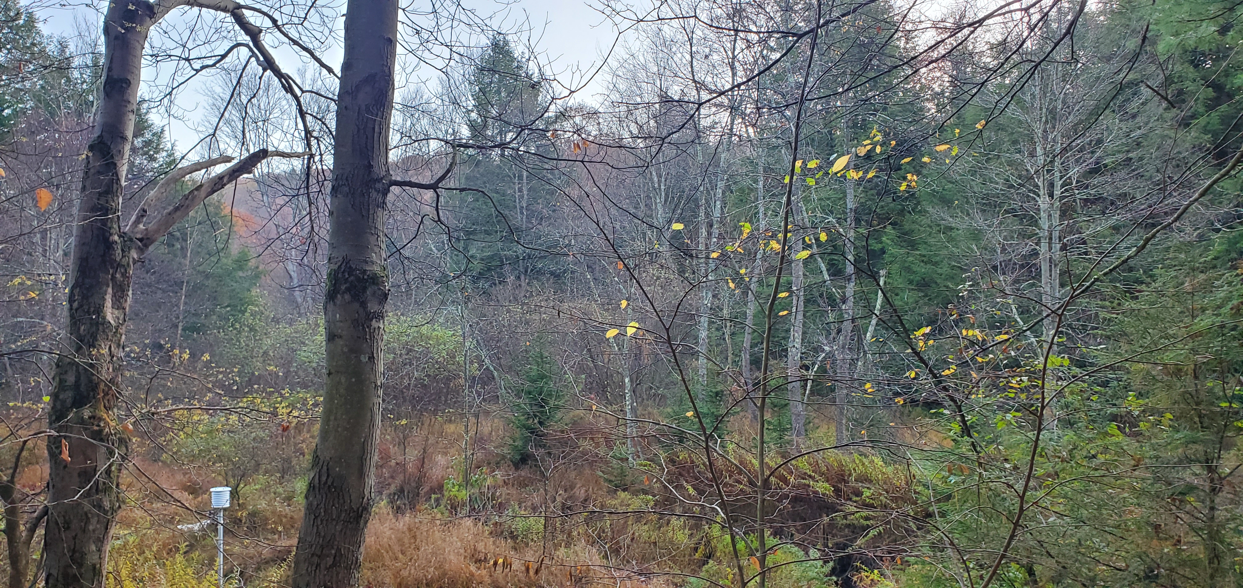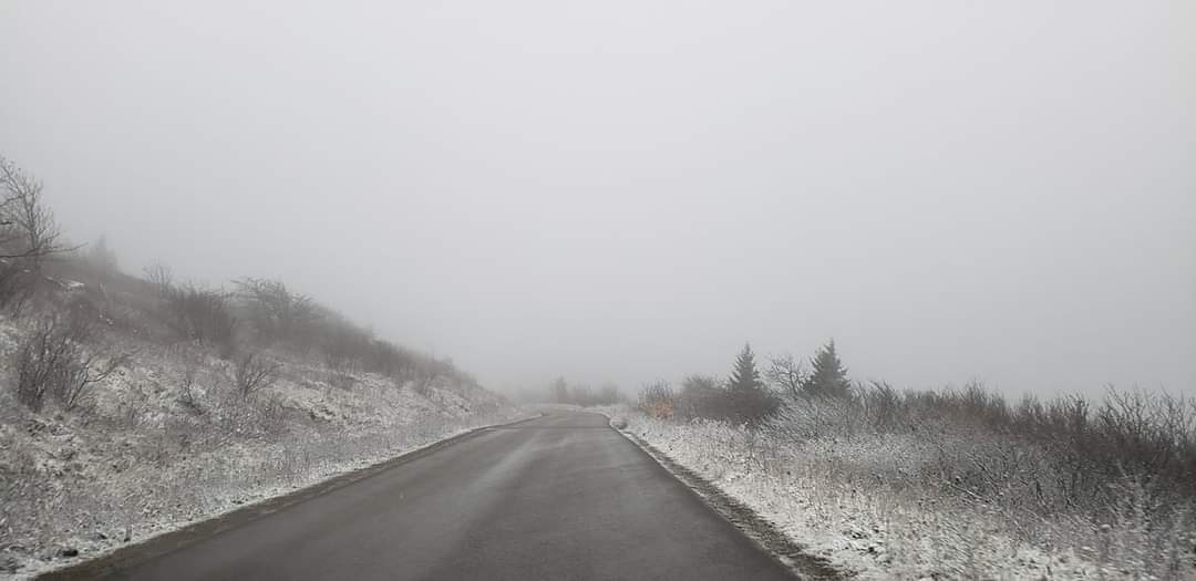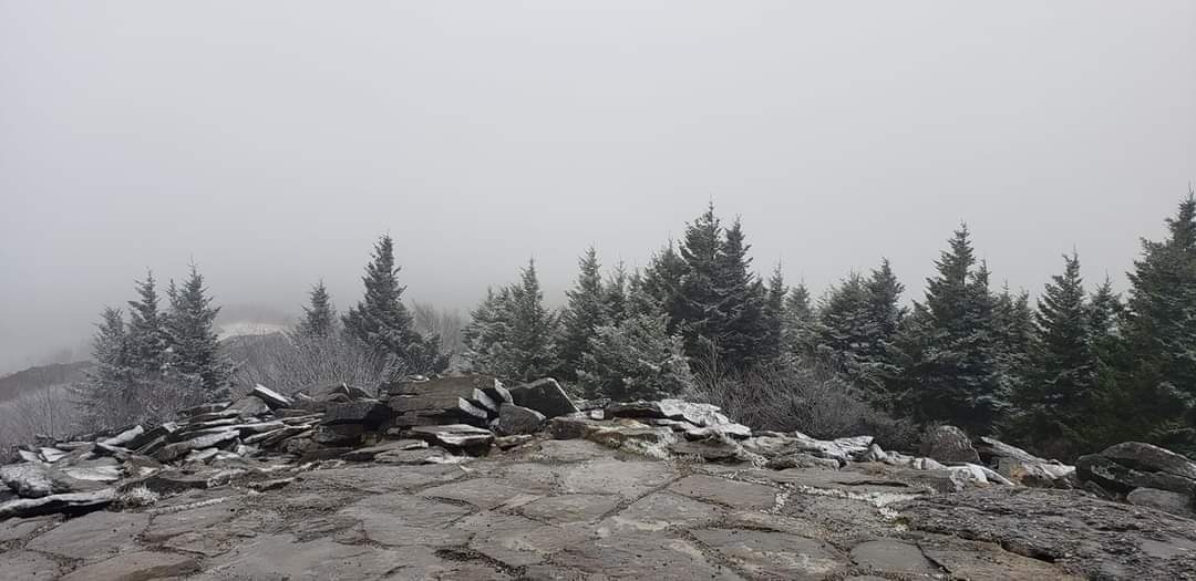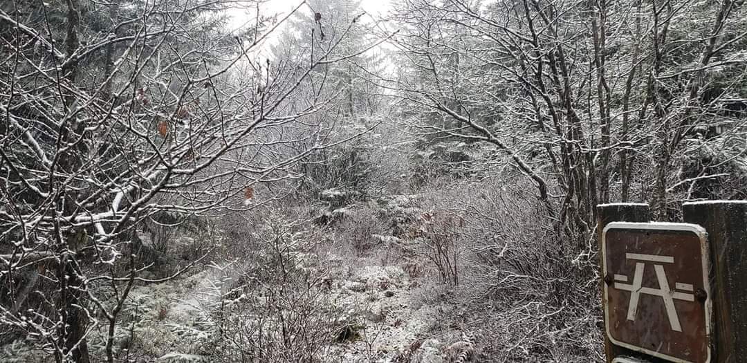 “Soaking rain of 1.82 inches past 48 hours was greatly needed to recharge streams and ponds. Slowly falling temperatures from the 50s yesterday” to the mid 30s this morning. First snowflakes mixed in with rain shortly after noon, changing to all snow by mid afternoon with several moderate to briefly heavy snow squalls late afternoon to early evening. Any whitening of the ground mostly melted between snow squalls”