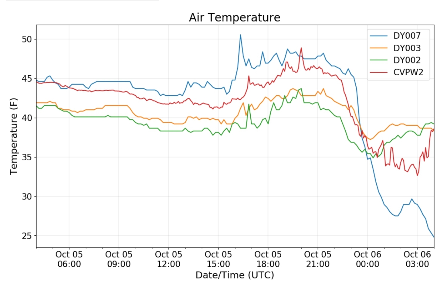 Dy007-Canaan Valley Refuge 3150′, Dy002-Cabin Mt at Bald Knob 4350, Dy003-Cabin Mt/Sods 4035′, Dy004-Spruce Knob 4820, Cvpw2-Climate Reference Network Canaan 3479′, Kw99 Petersburg Grant County Airport 961′
