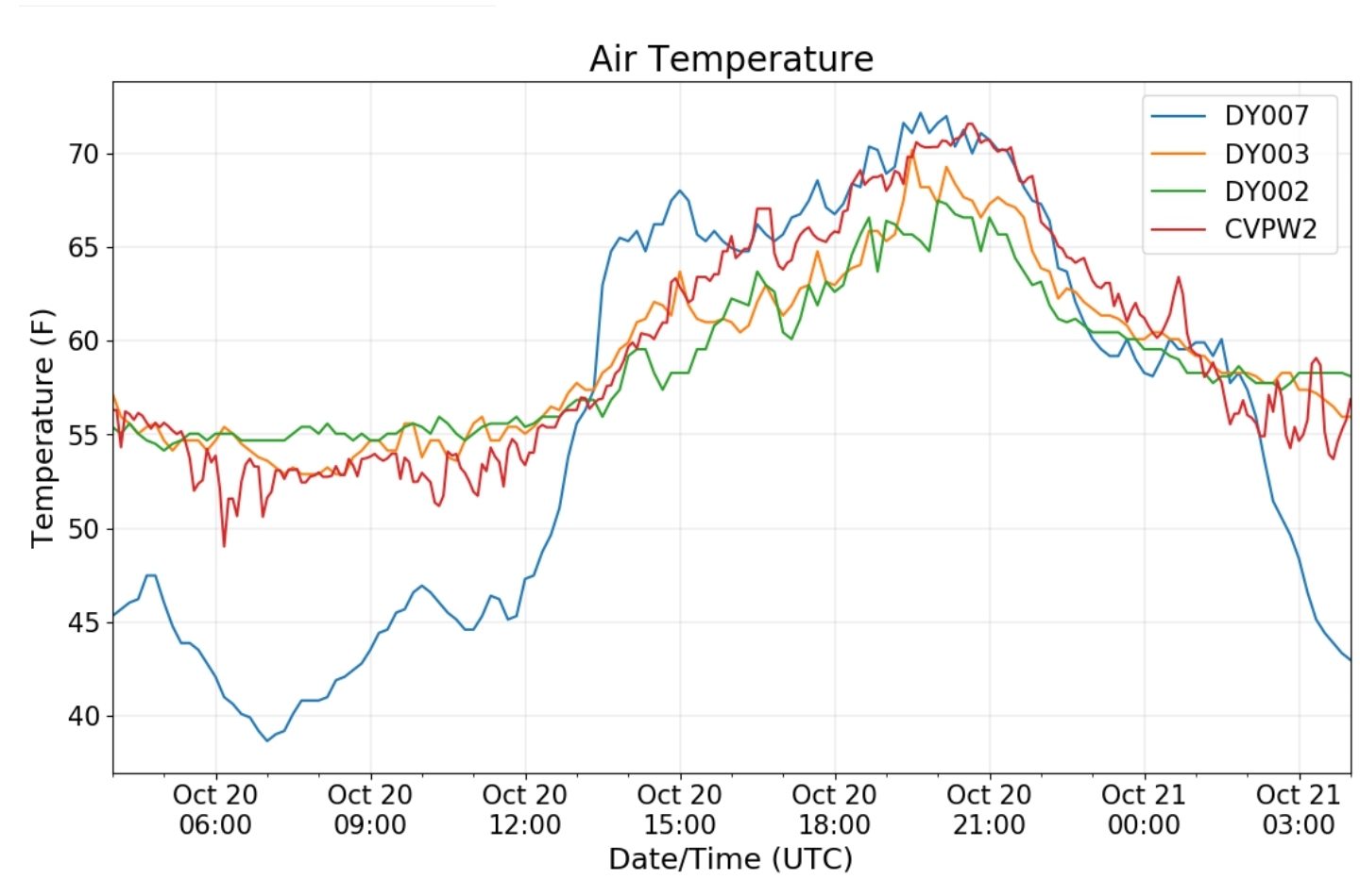 Dy007-Canaan Valley Refuge 3150′, Dy002-Cabin Mt at Bald Knob 4350′, Dy003-Cabin Mt/Sods 4035′,Dy004-Spruce Knob 4820′, Cvpw2-Climate Reference Network Canaan 3479′, KW99-PETERSBURG Grant County Airport 961′