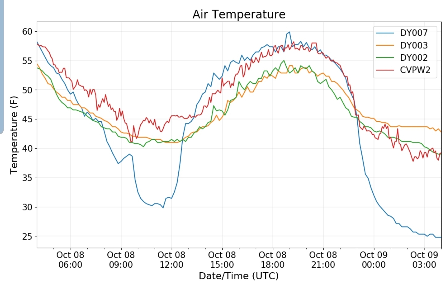 Dy007-Canaan Valley Refuge 3150′, Dy002-Cabin Mt at Bald Knob 4350′, Dy003-Cabin Mt/Sods 4035′, Dy004-Spruce Knob 4820′, Dy007-Canaan Valley Refuge 3150′, Cvpw2-Climate Reference Network Canaan 3479′, KW99-Petersburg Grant County Airport 961′