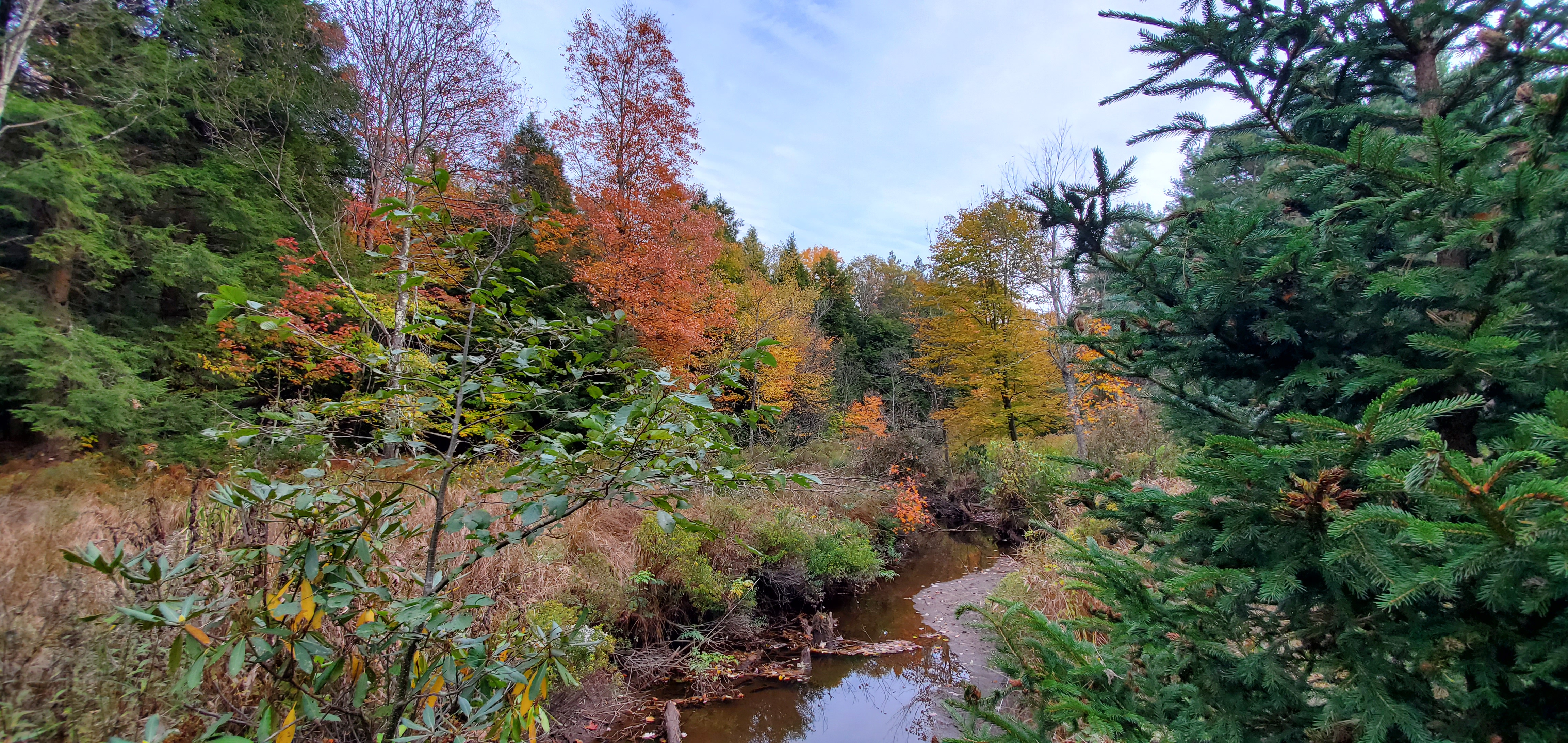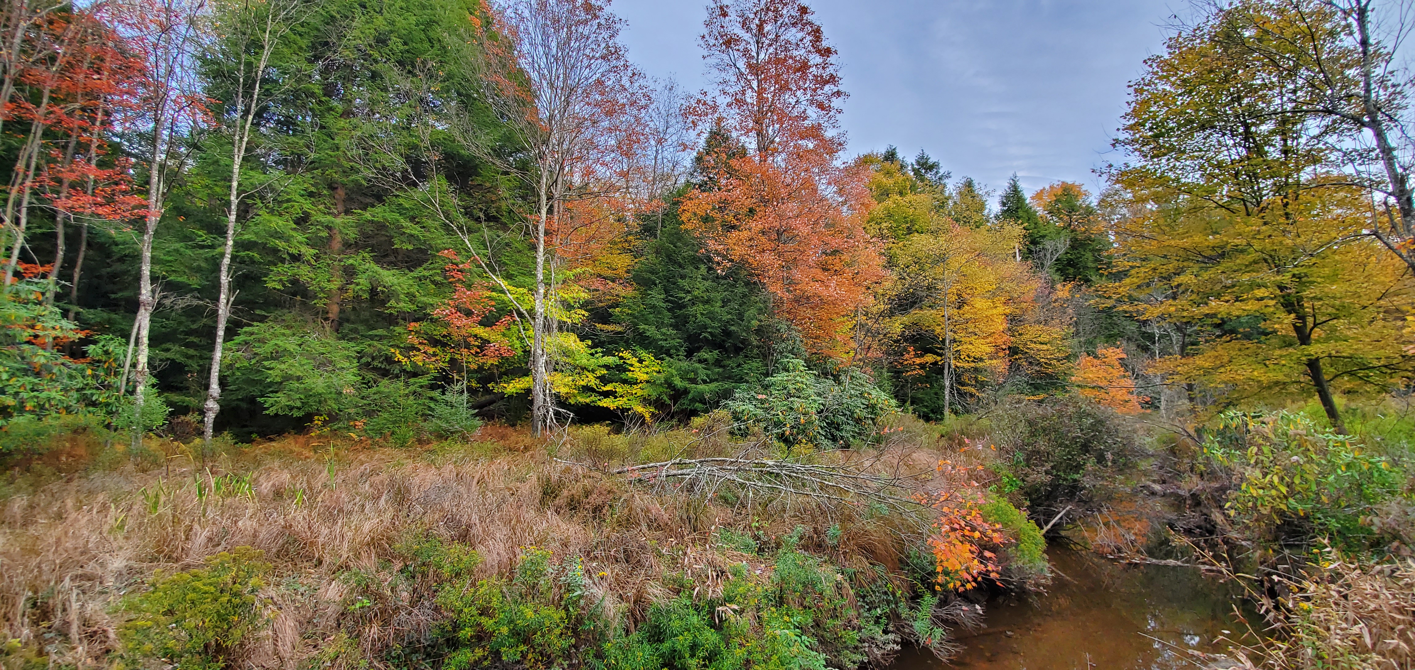David Carroll ” Autumn has already ended up there…all leaves on the heath were wind-blasted and gone. Hiked south toward Dolly Sods to find color in protected spots. ”
