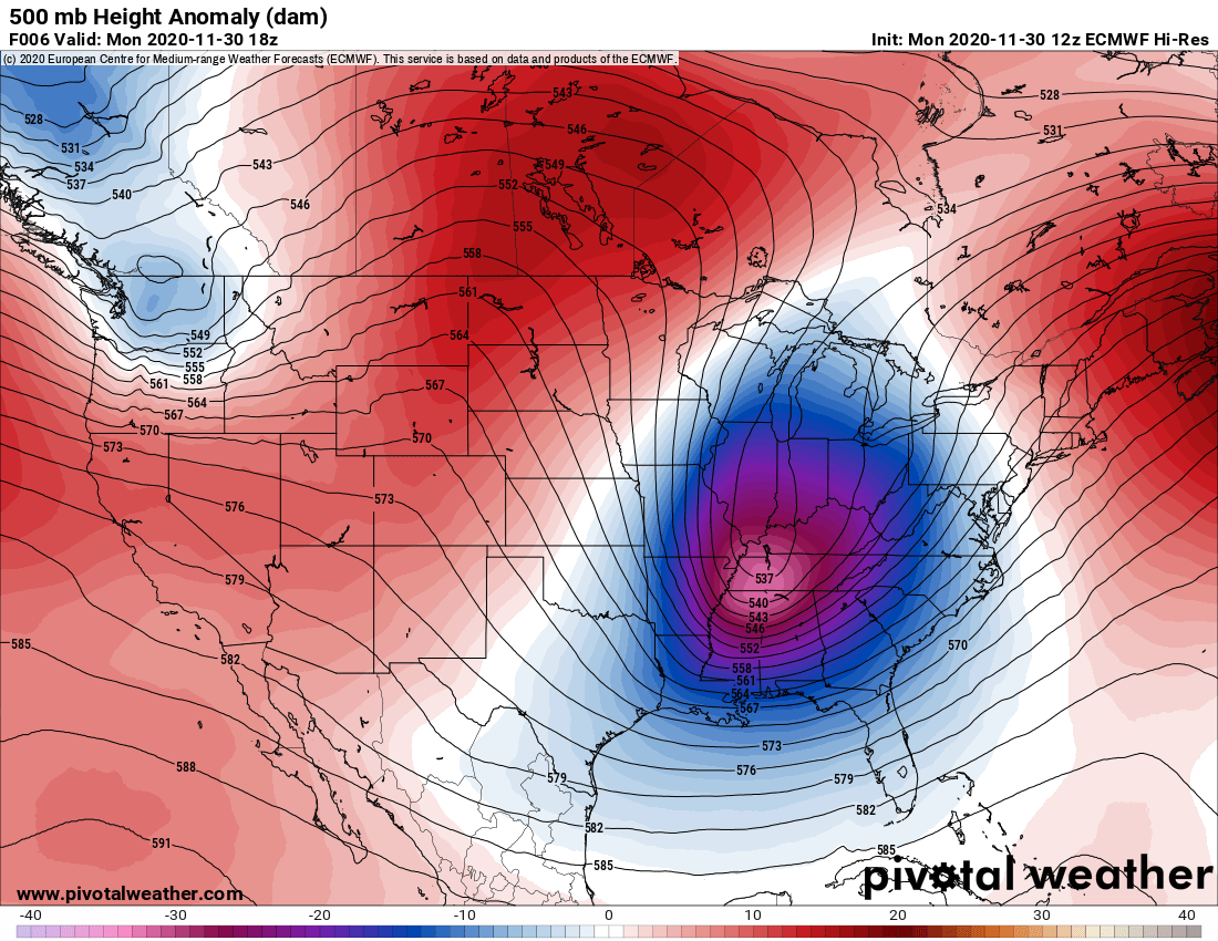 Surface features and 500mb height anomalies and flow