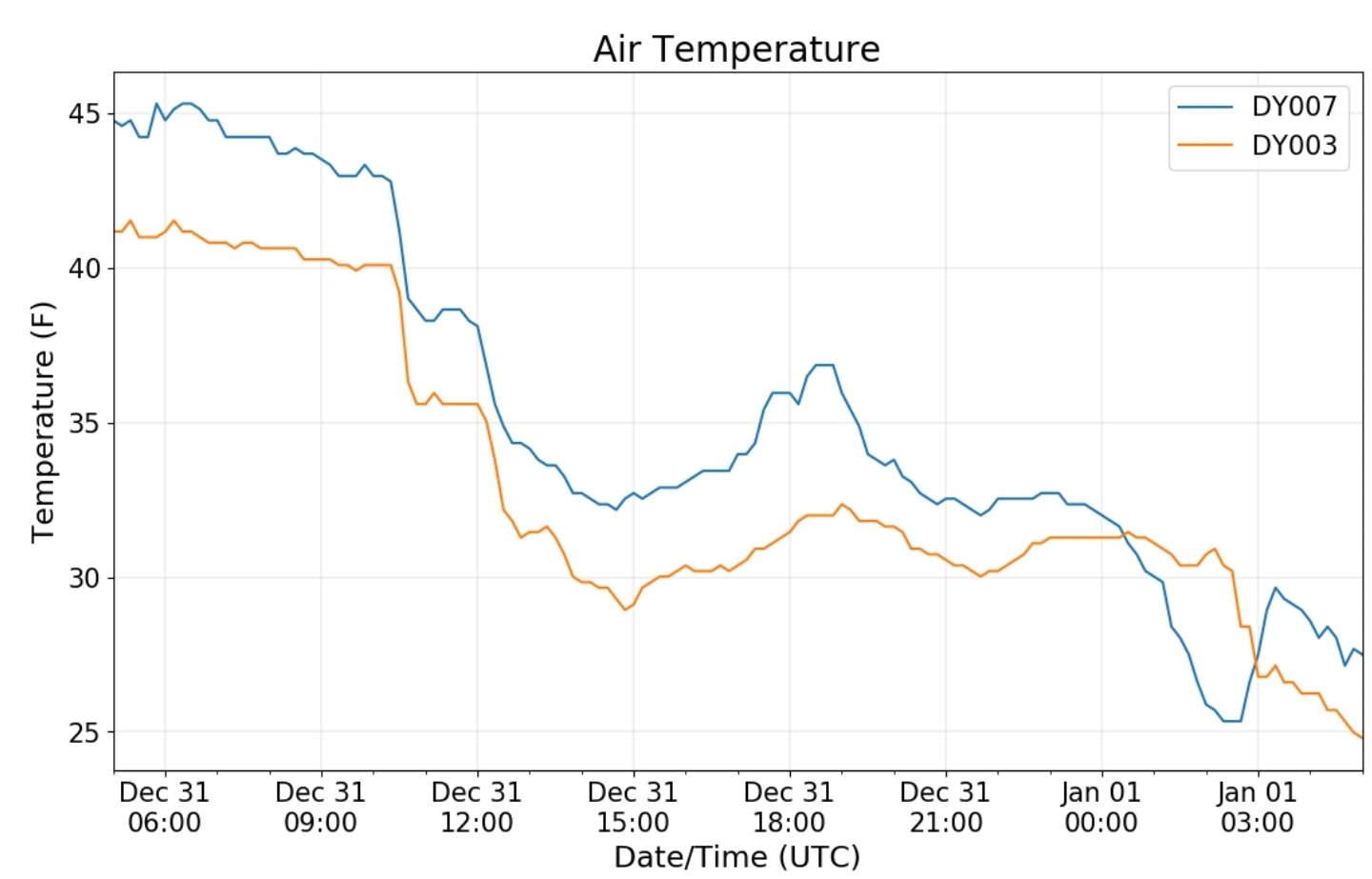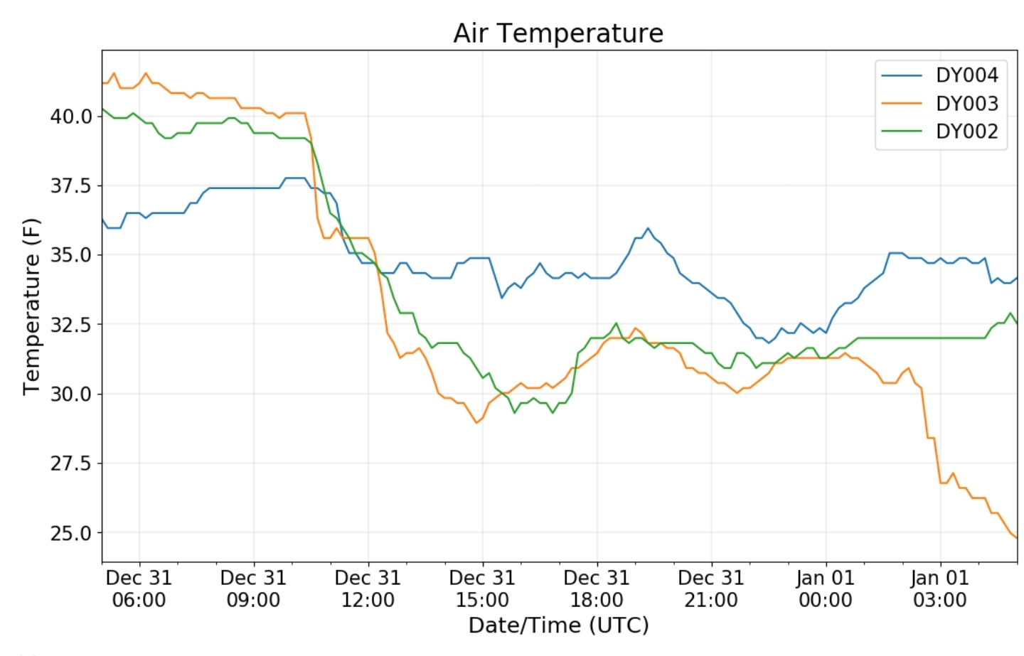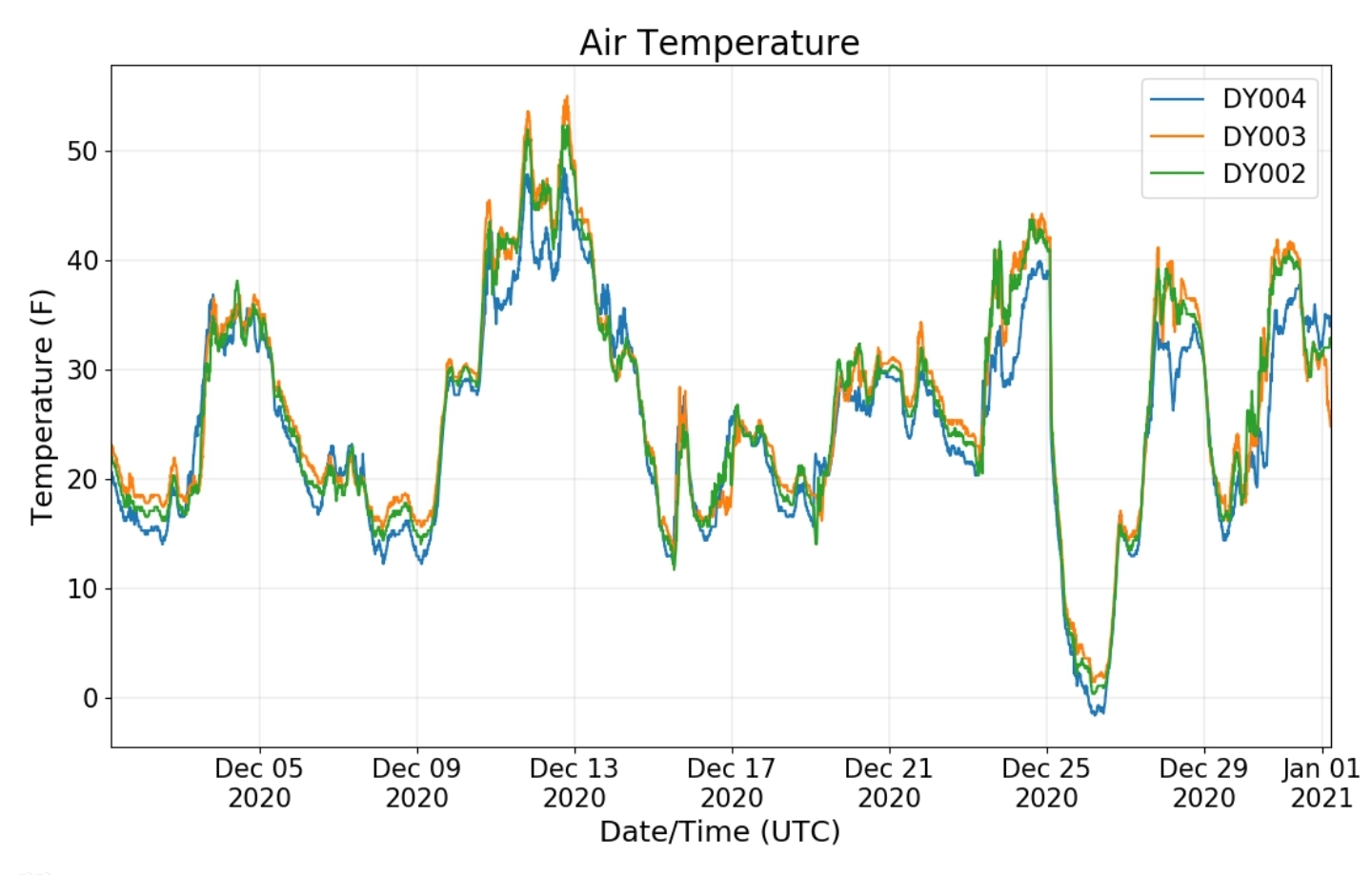 Dy007-Canaan Valley Refuge 3150′, Dy002-Cabin Mt at Bald Knob 4350′, Dy003-Cabin Mt/Sods 4035′, Dy004-Spruce Knob 4820′, Cvpw2-Climate Reference Network Canaan 3479′, KW99-Petersburg Grant County Airport 961′
