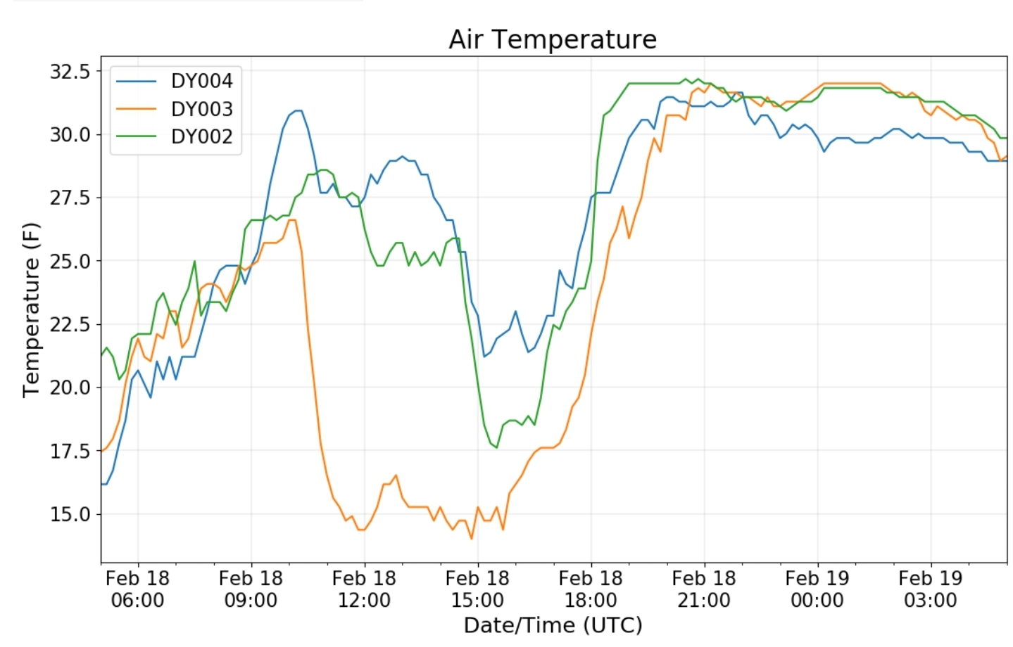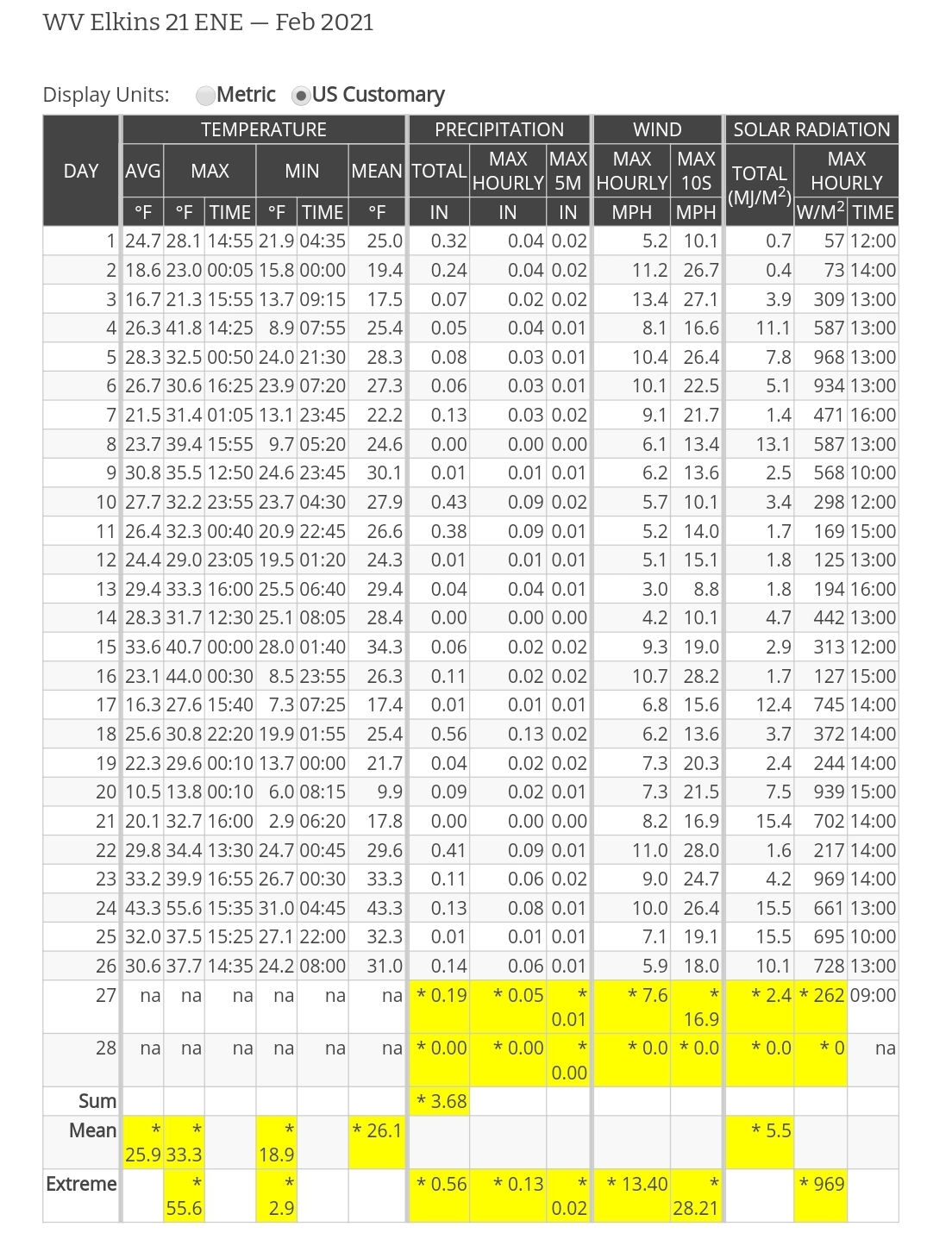 Dy007-Canaan Valley Refuge 3150′, Dy002-Cabin Mt at Bald Knob 4350′, Dy003-Cabin Mt/Sods 4035′, Dy004-Spruce Knob 4820′, Cvpw2-Climate Reference Network Canaan 3479′, Kw99-Petersburg County Airport 961′