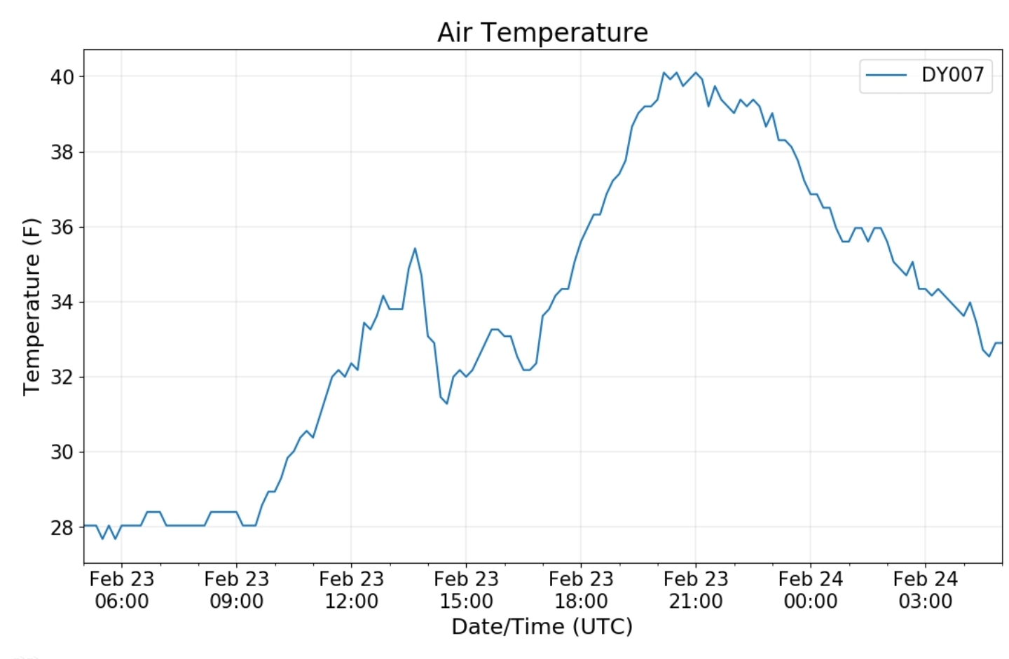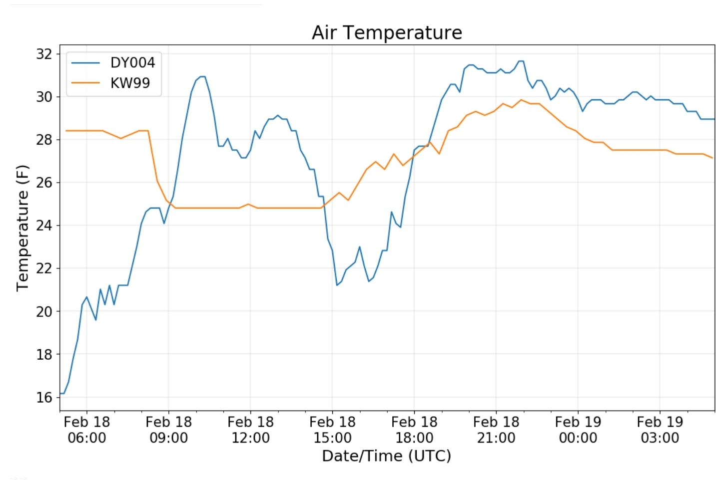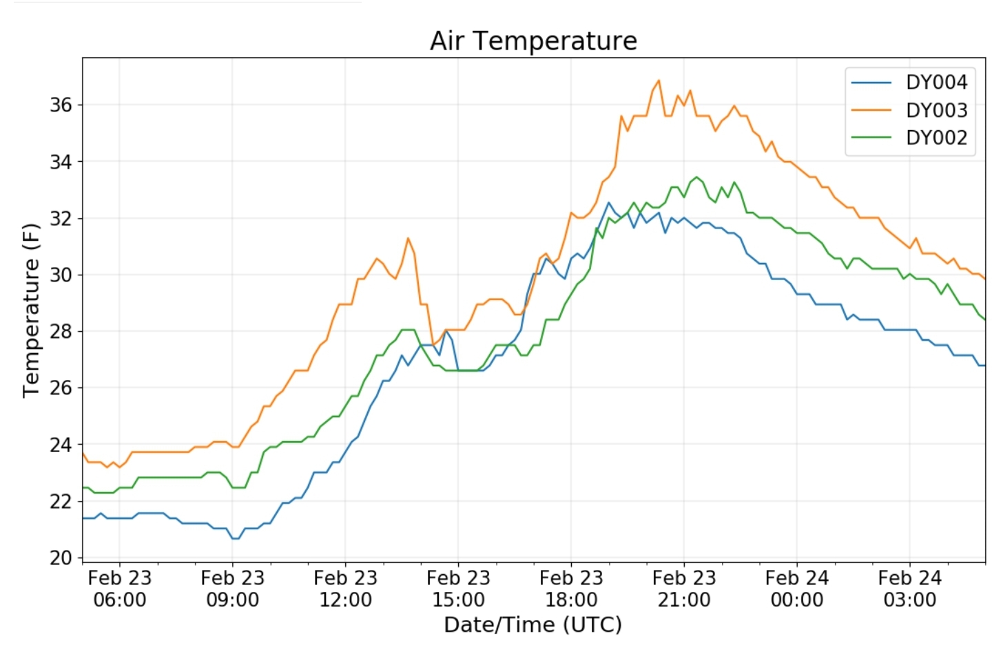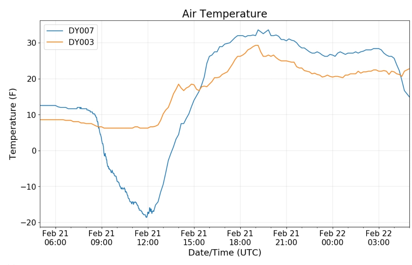 Dy007-Canaan Valley Refuge 3150′, Dy002-Cabin Mt at Bald Knob 4350′, Dy003-Cabin Mt/Sods 4035′, Dy004-Spruce Knob 4820′, Cvpw2-Climate Reference Network Canaan 3479′ , KW99-Petersburg Grant County Airport 961′
