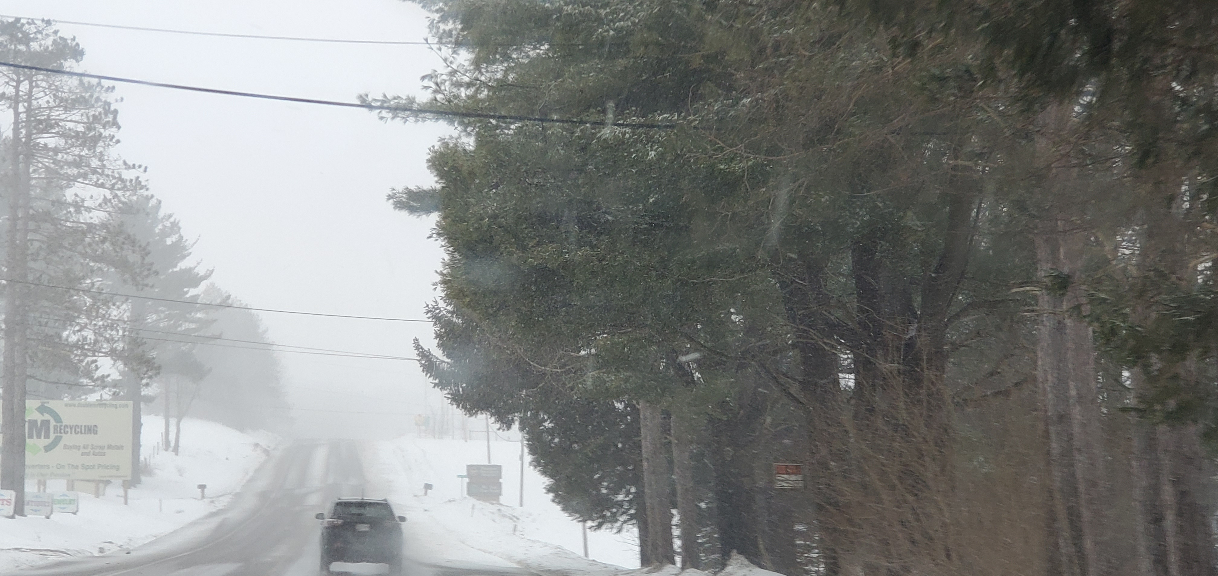 Snow early, then as it dissipated, some patchy freezing mist, and some fine light snow later.