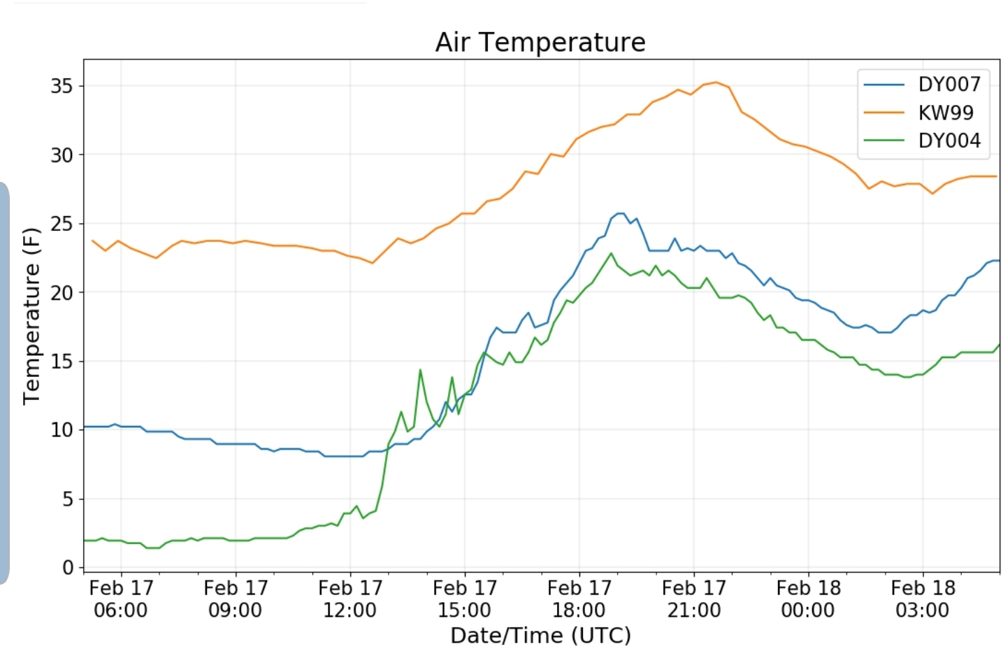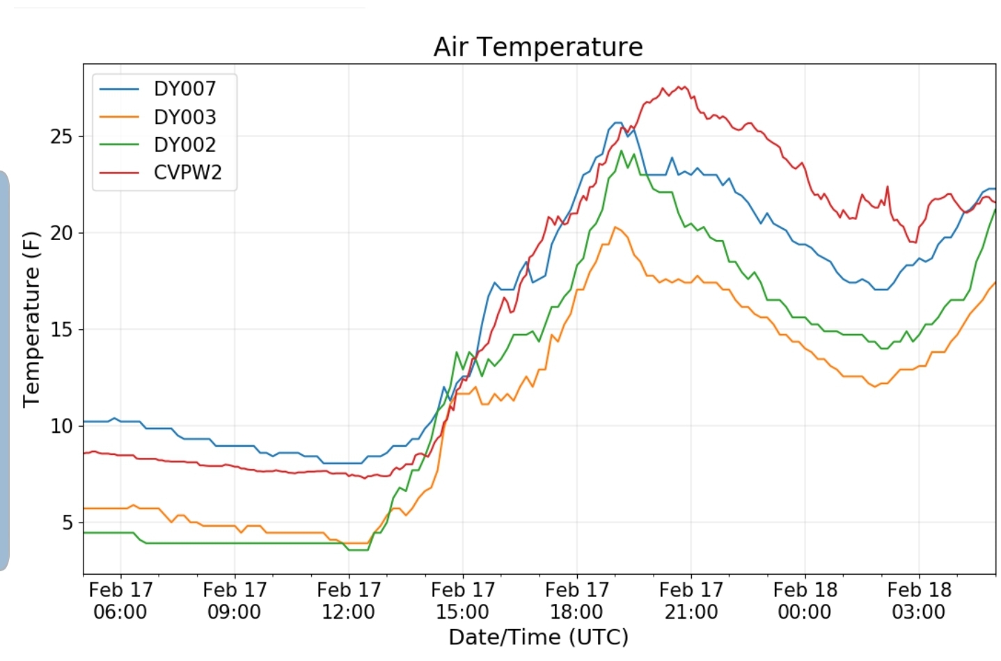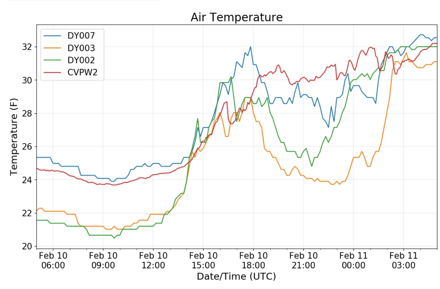 Dy007-Canaan Valley Refuge 3150′, Dy002-Cabin Mt at Bald Knob 4350′, Dy003-Cabin Mt/Sods 4035′, Dy004-Spruce Knob 4820′, Cvpw2-Climate Reference Network Canaan 3479′, KW99-Petersburg Grant County Airport 961′