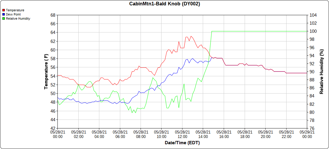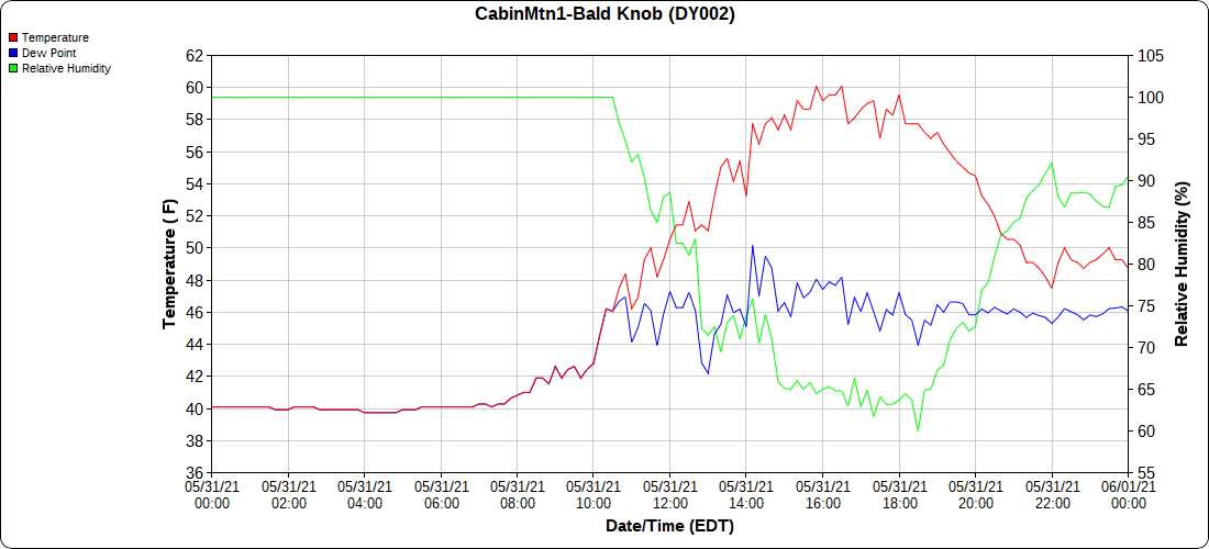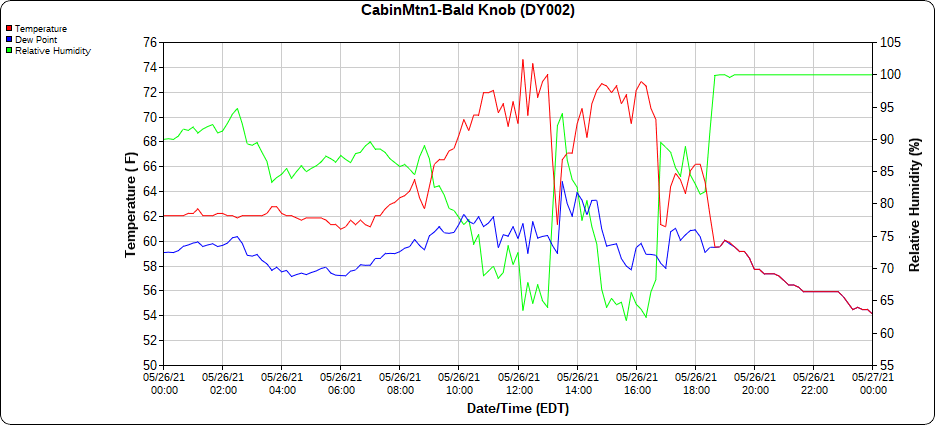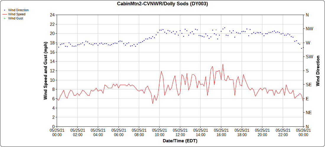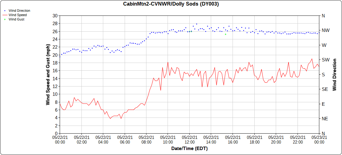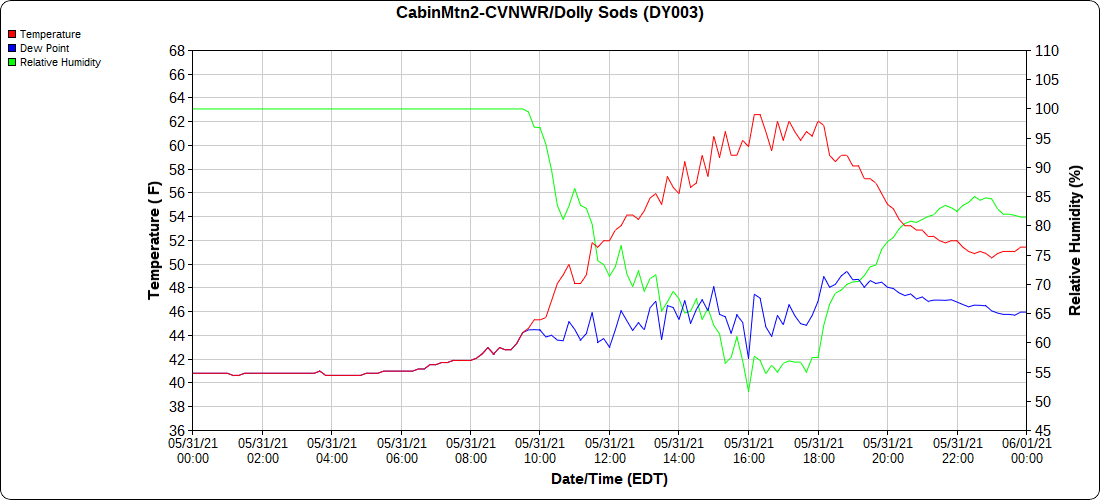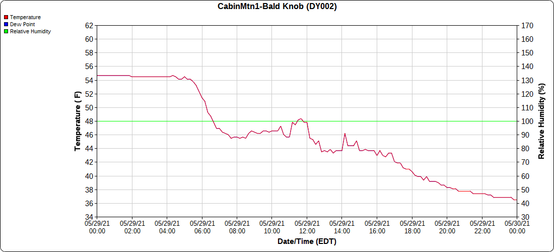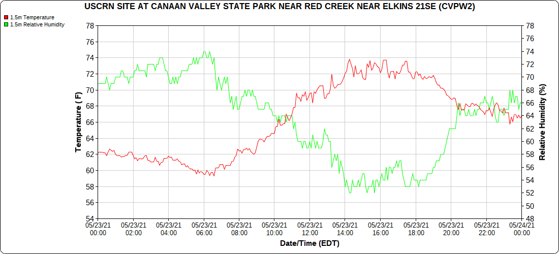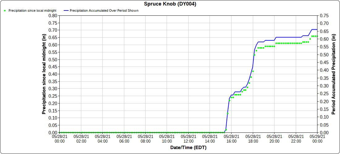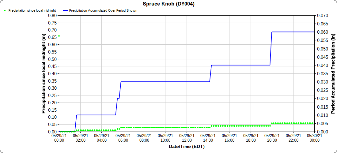 Dy007-Canaan Valley Refuge 3150′, Dy002-Cabin Mt at Bald Knob 4350′, Dy003-4035′, Dy004-Spruce Knob 4820′, Cvpw2-Climate Reference Network Canaan 3479′, KW99-Petersburg Grant County Airport 962′