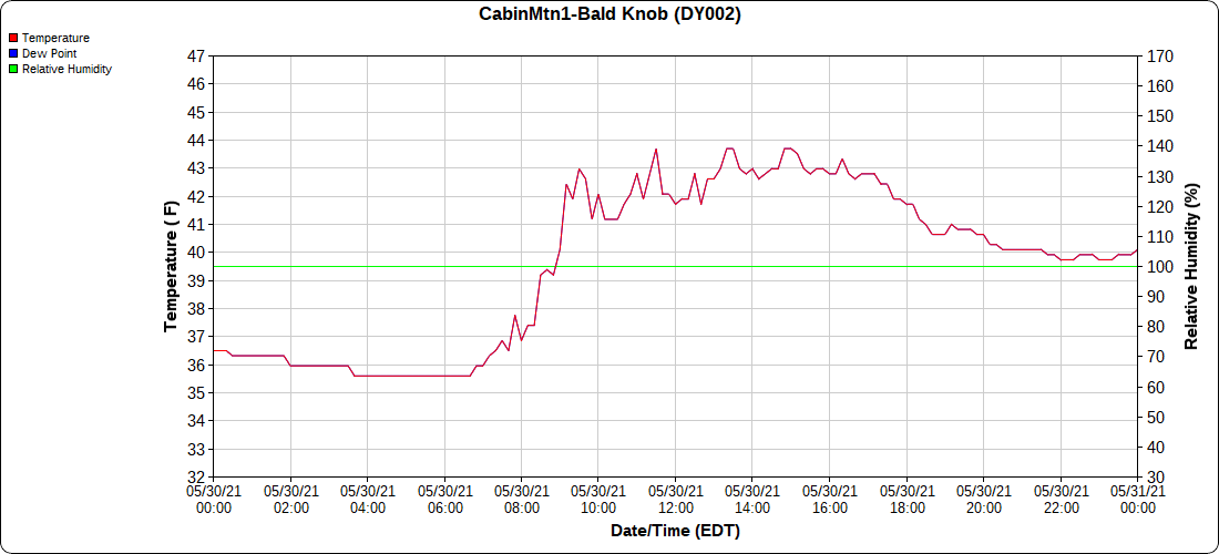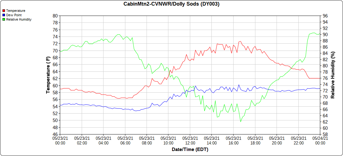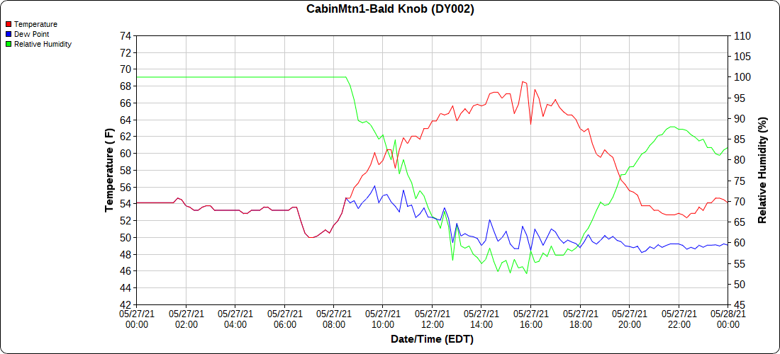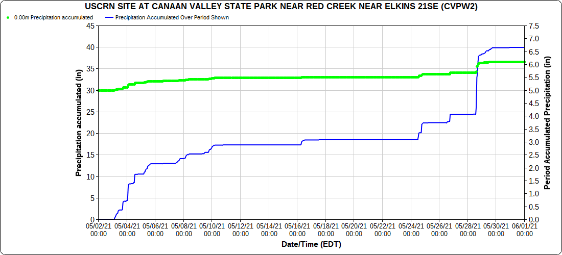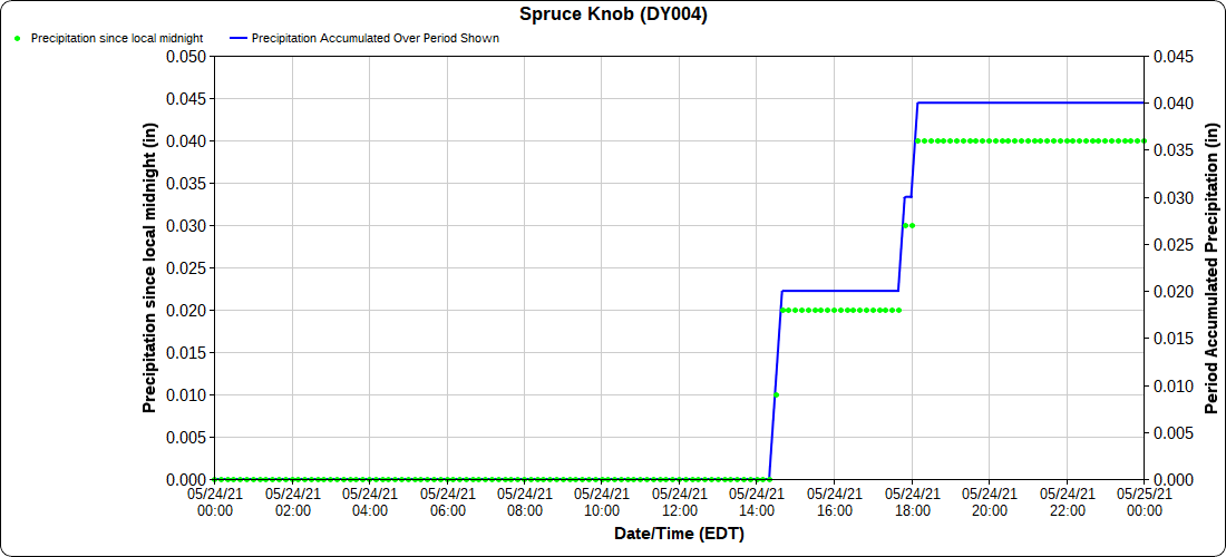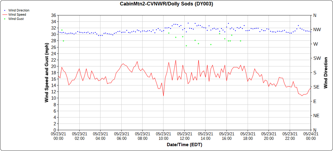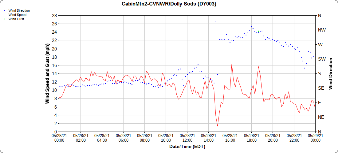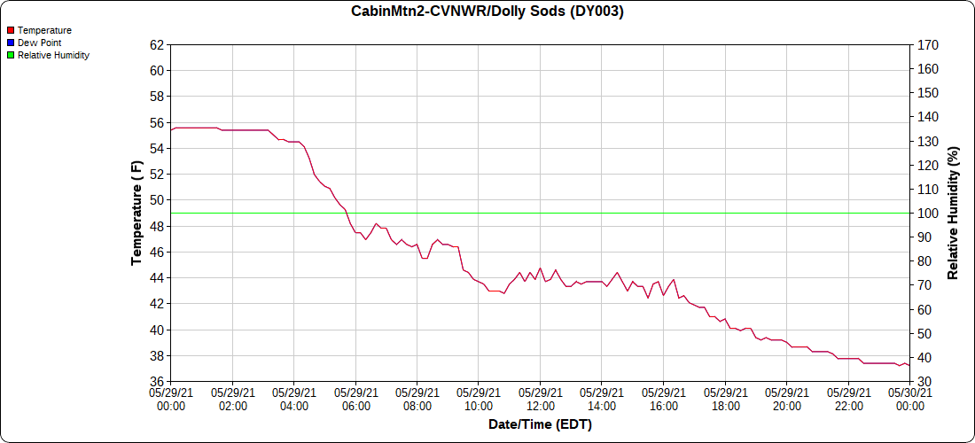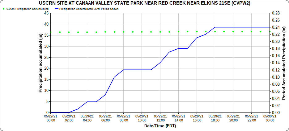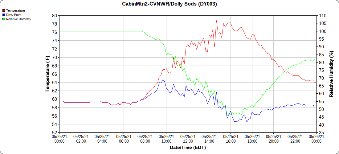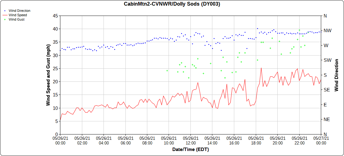 Dy007-Canaan Valley Refuge 3150′, Dy002-Cabin Mt at Bald Knob 4350′, Dy003-4035′, Dy004-Spruce Knob 4820′, Cvpw2-Climate Reference Network Canaan 3479′, KW99-Petersburg Grant County Airport 962′
