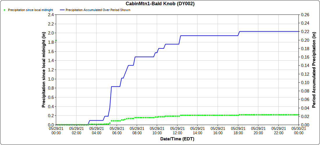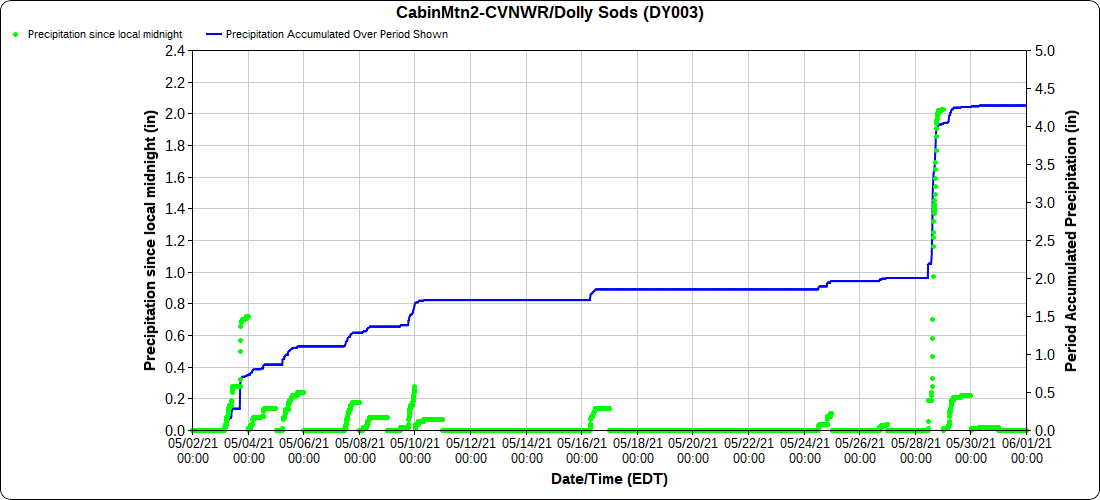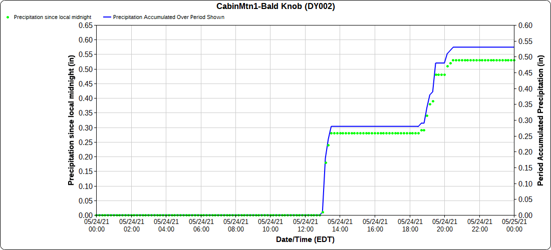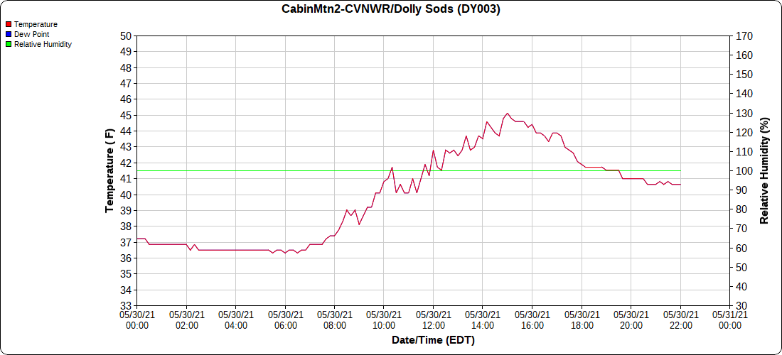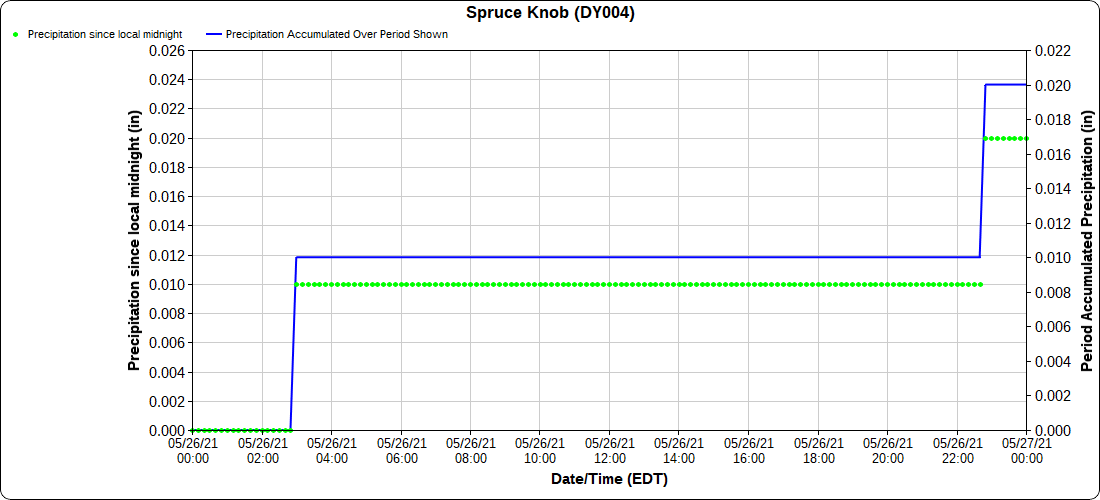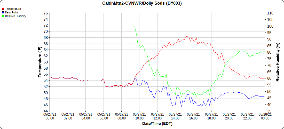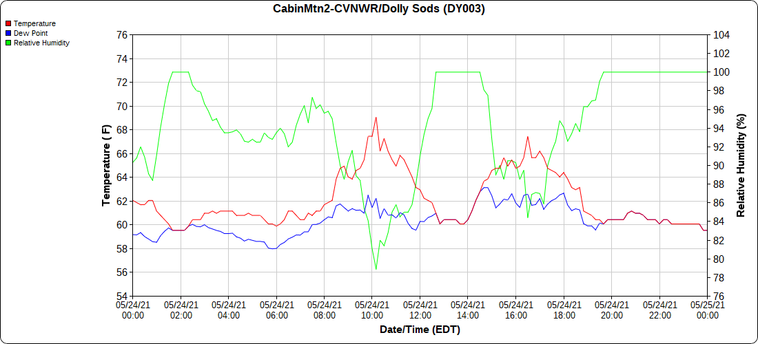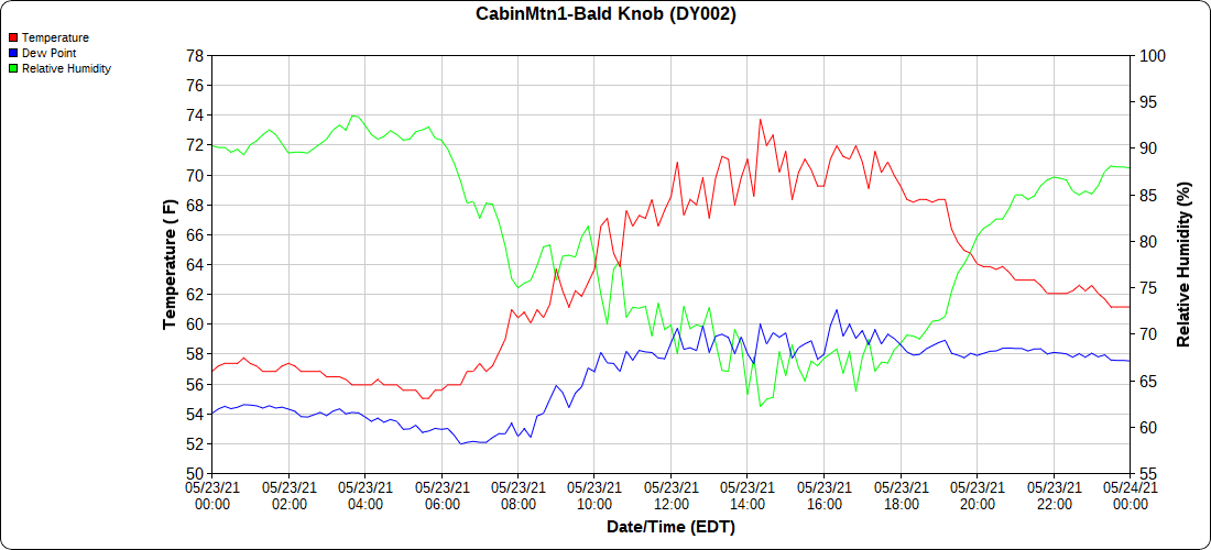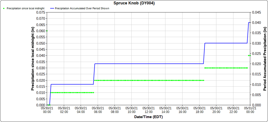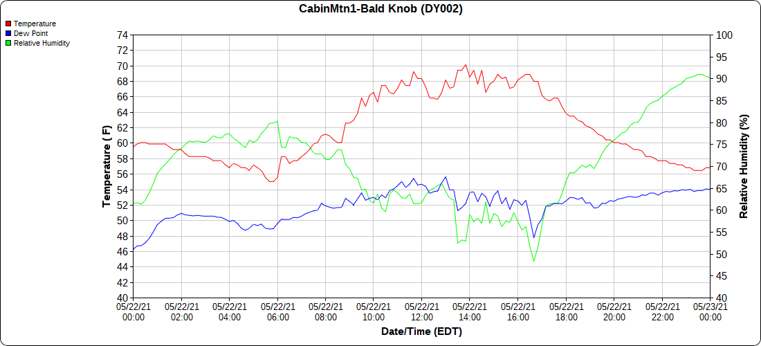 Dy007-Canaan Valley Refuge 3150′, Dy002-Cabin Mt at Bald Knob 4350′, Dy003-4035′, Dy004-Spruce Knob 4820′, Cvpw2-Climate Reference Network Canaan 3479′, KW99-Petersburg Grant County Airport 962′
