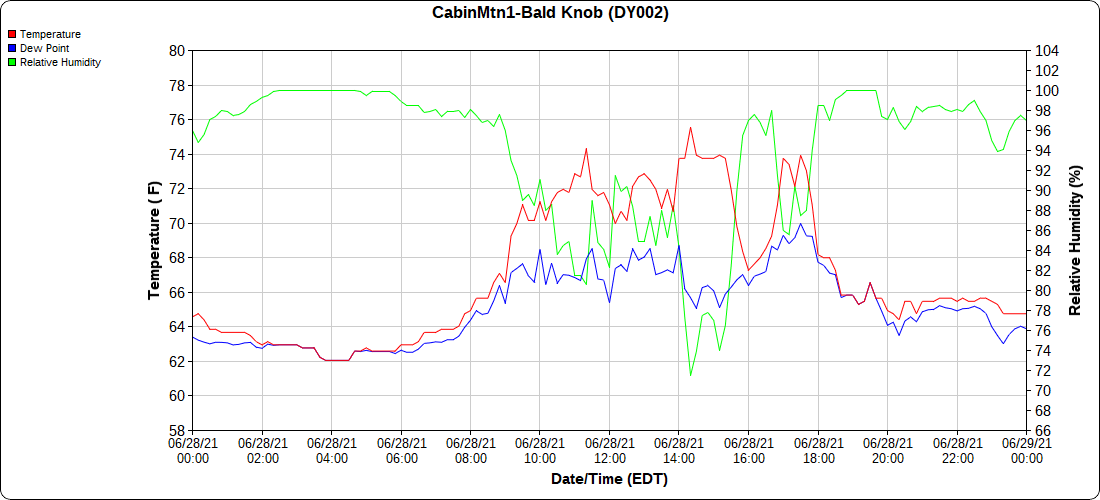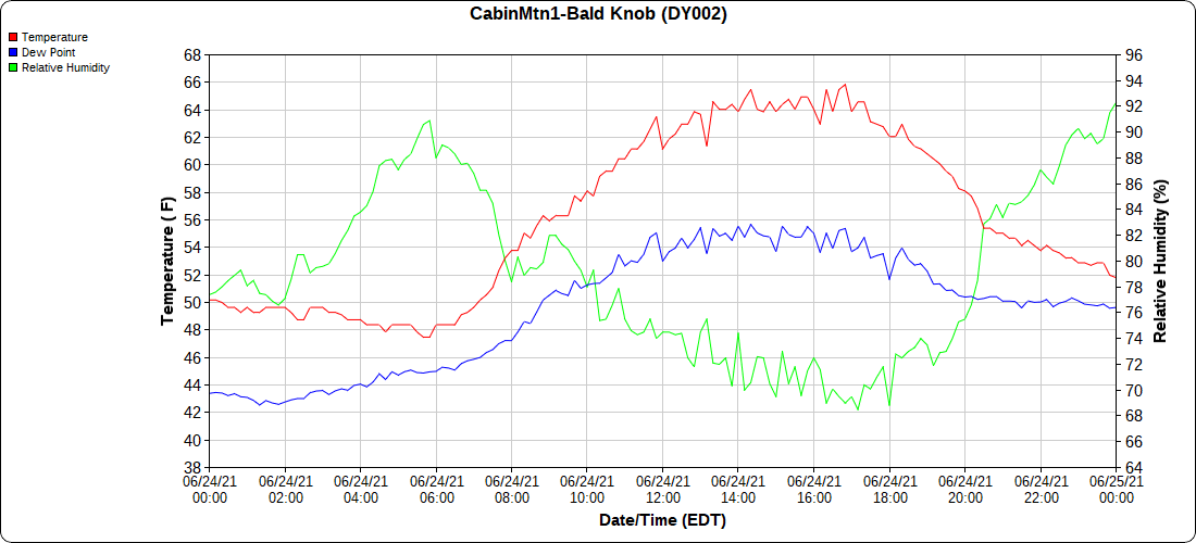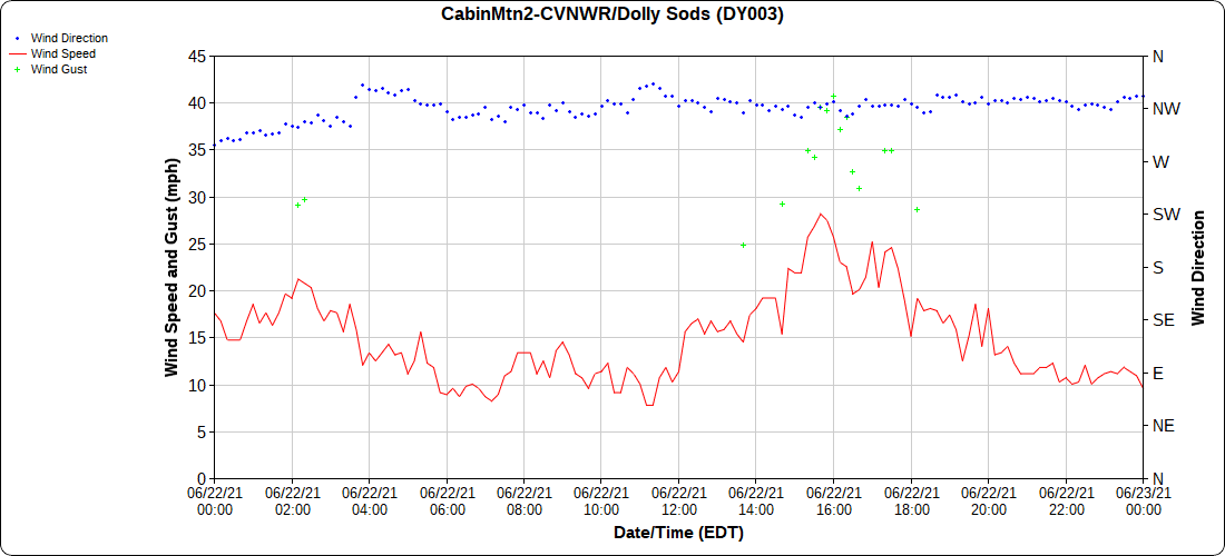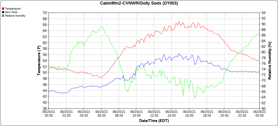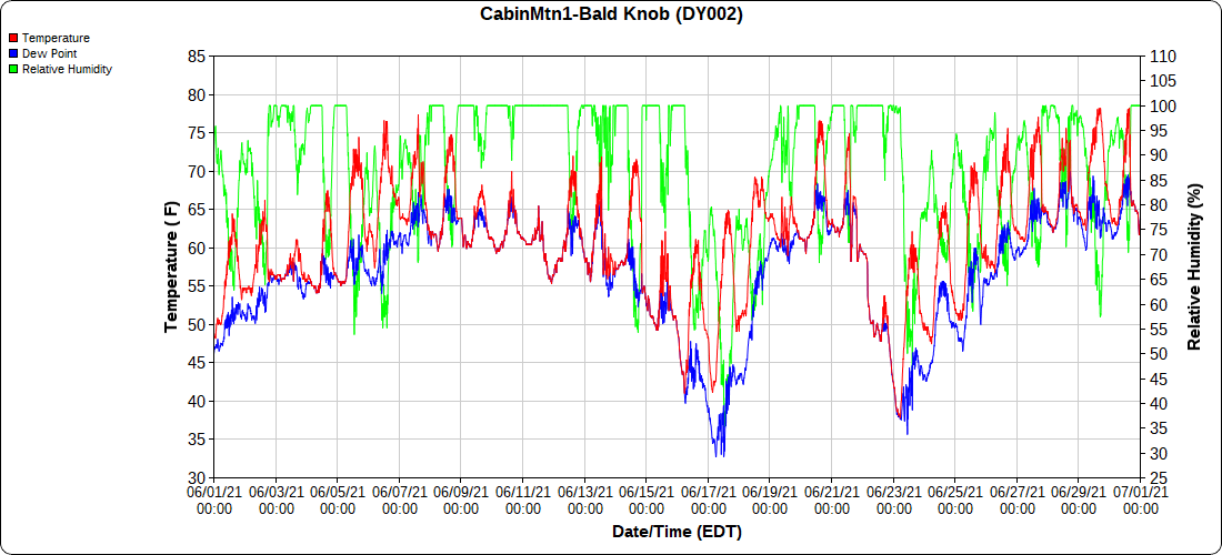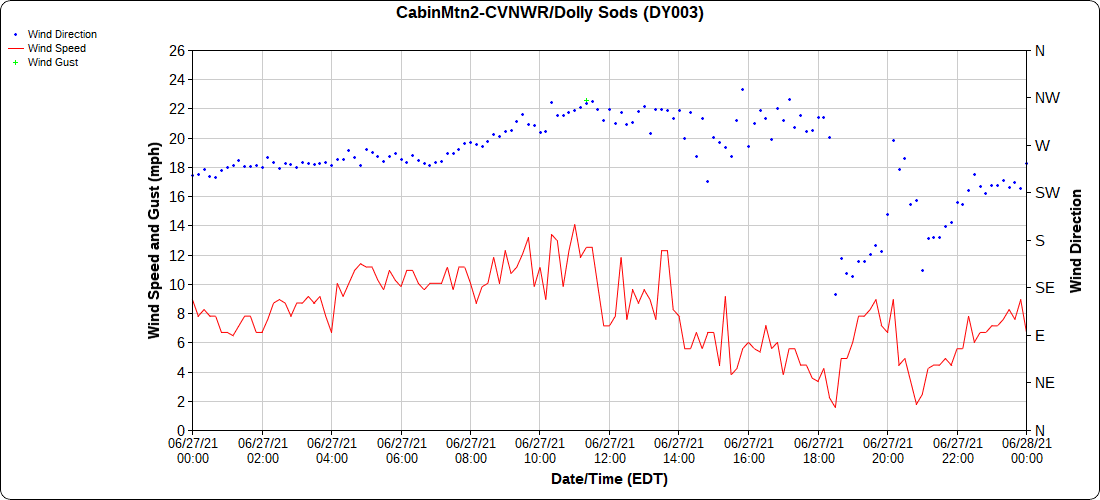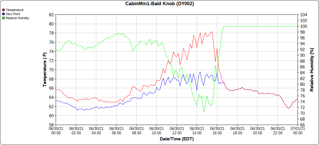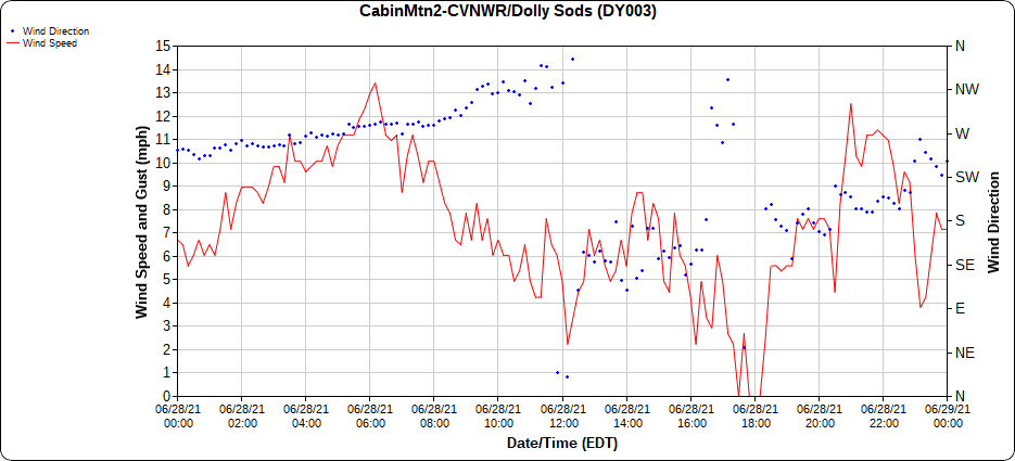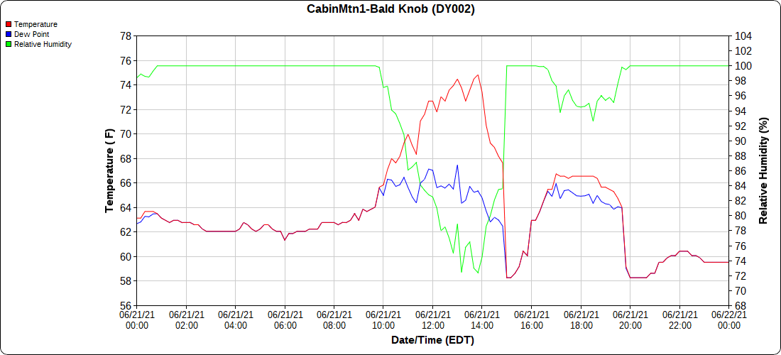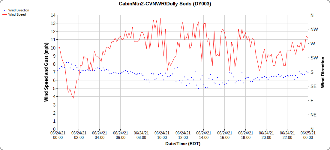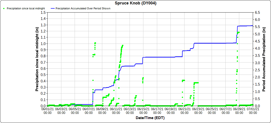 Dy007-Canaan Valley Refuge 3150′, Dy002-Cabin Mt at Bald Knob 4350′, Dy003-Cabin Mt-Western Sods 4035′, Dy004-Spruce Knob 4820′, Cvpw2-Climate Reference Network Canaan 3479′, KW99-Petersburg Grant County Airport 961′