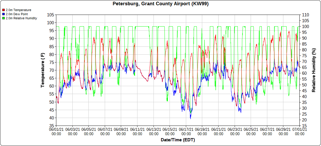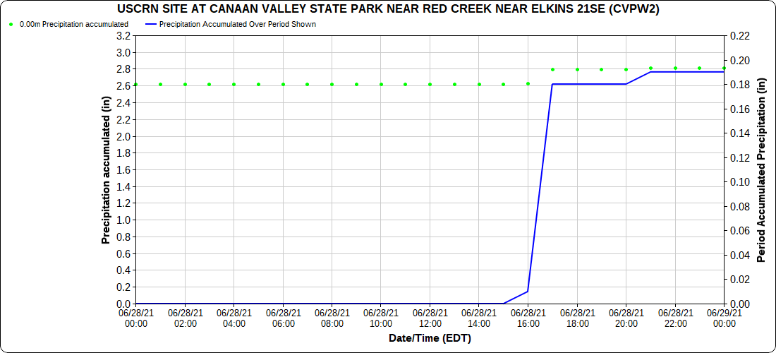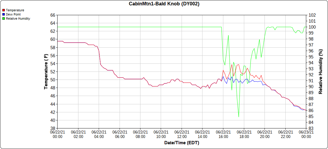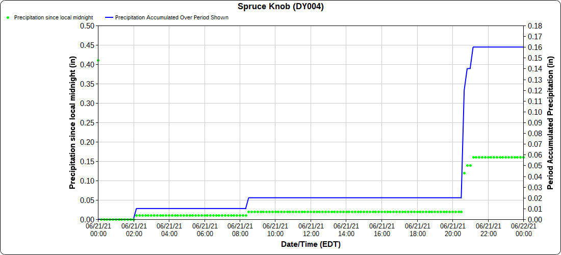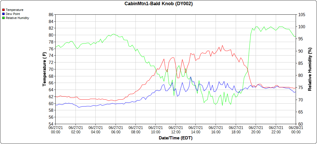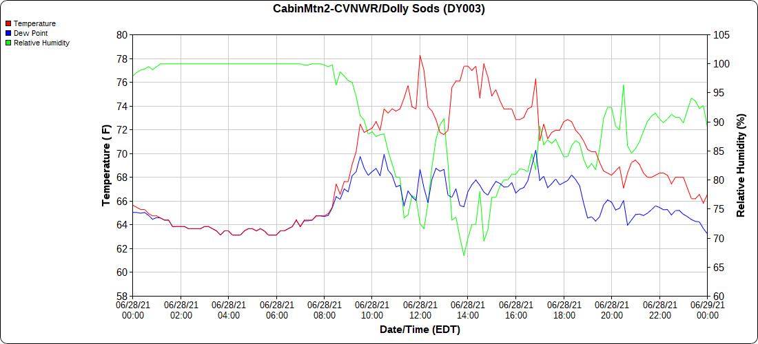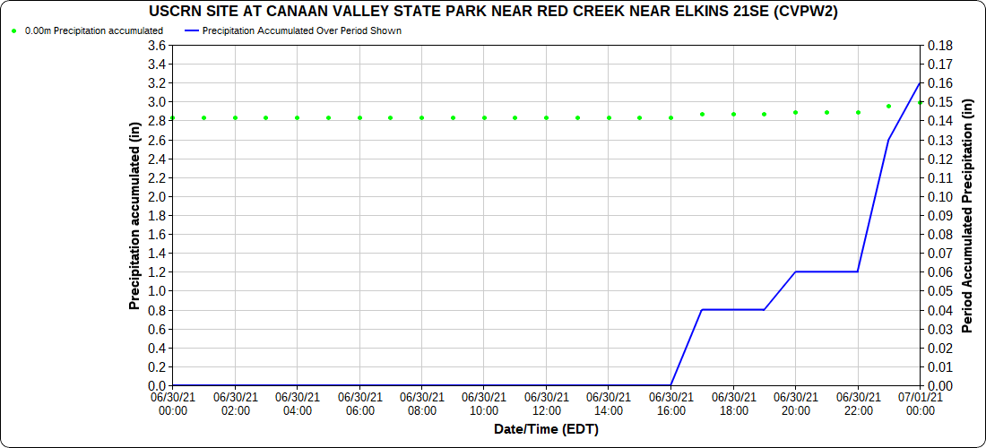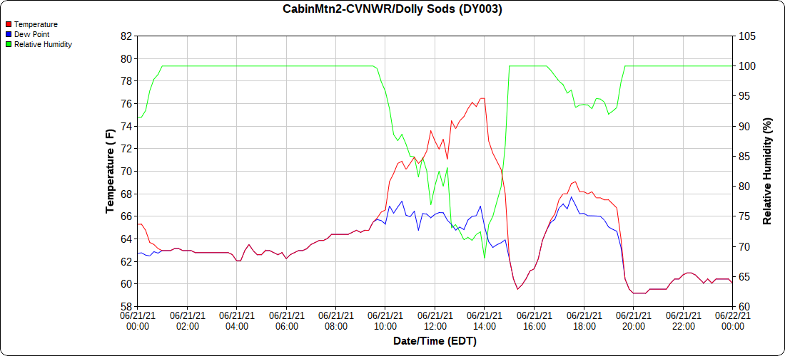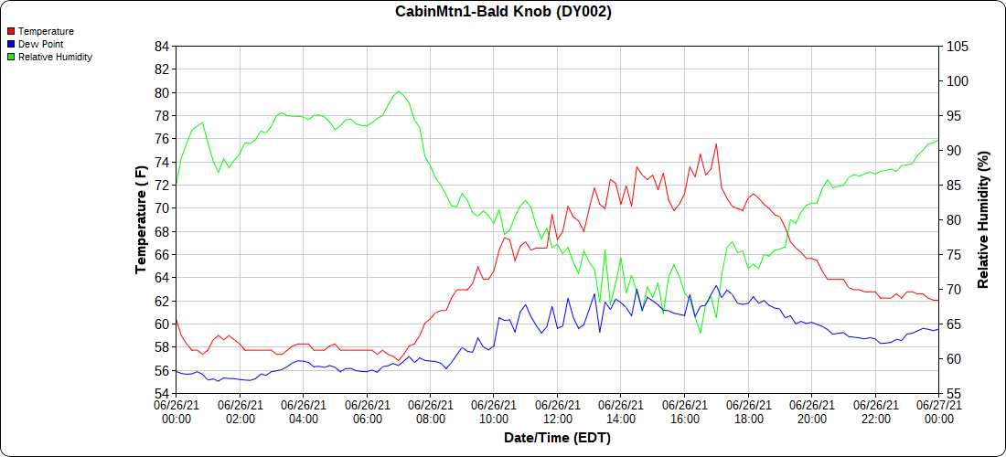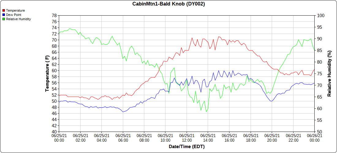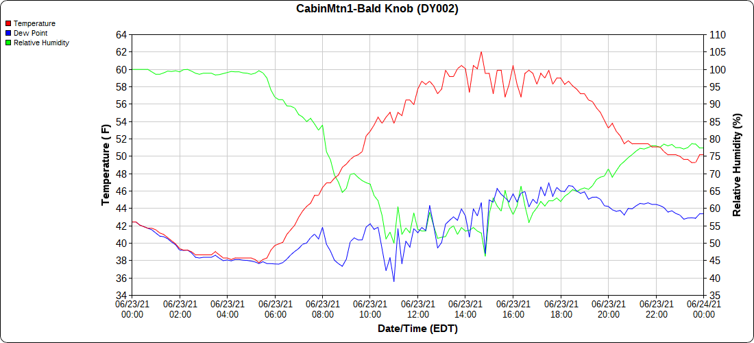 Dy007-Canaan Valley Refuge 3150′, Dy002-Cabin Mt at Bald Knob 4350′, Dy003-Cabin Mt-Western Sods 4035′, Dy004-Spruce Knob 4820′, Cvpw2-Climate Reference Network Canaan 3479′, KW99-Petersburg Grant County Airport 961′