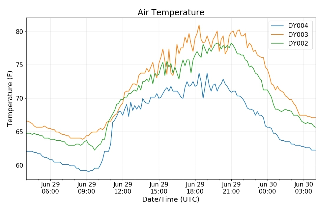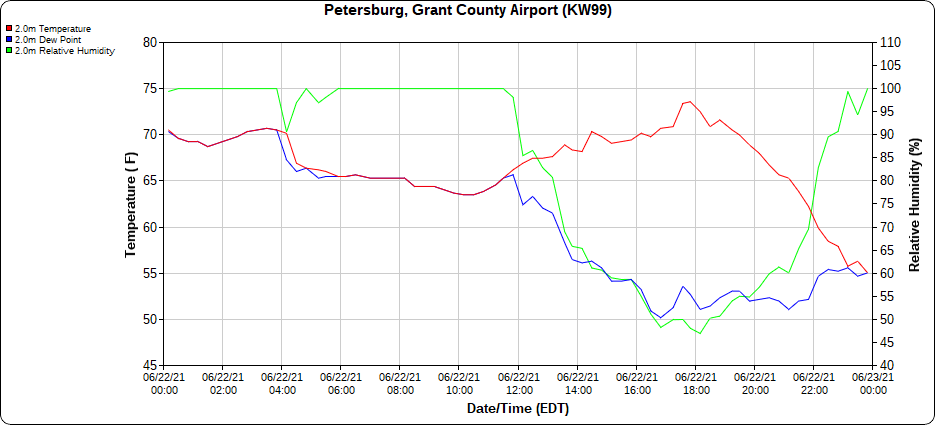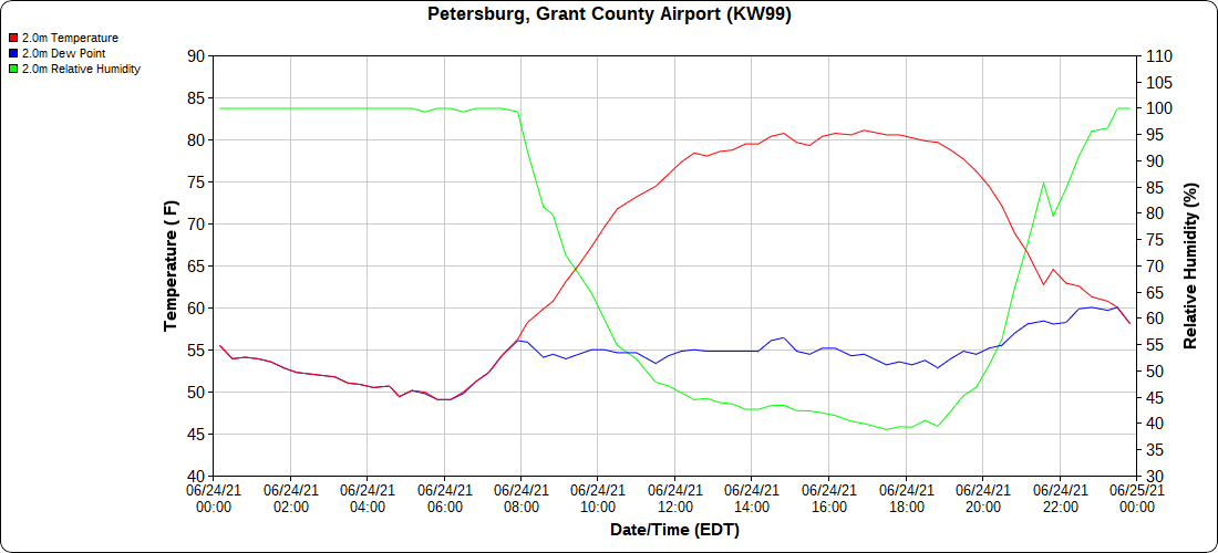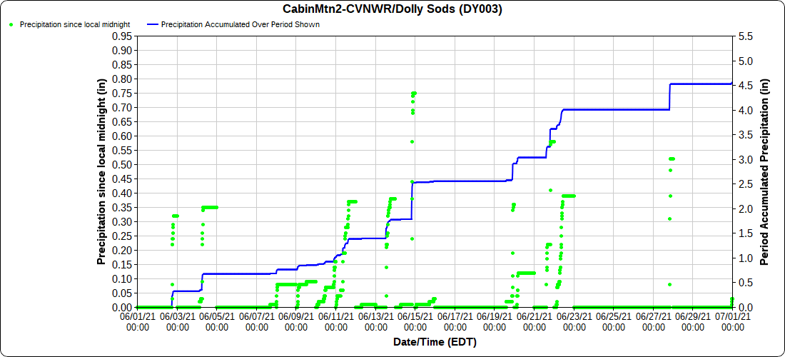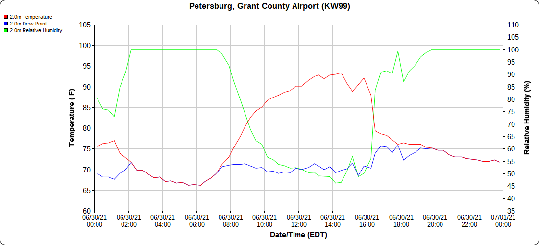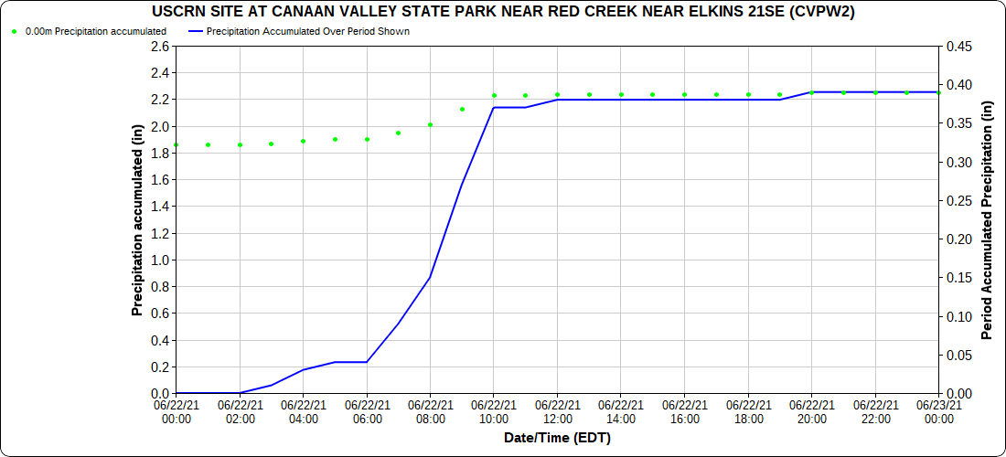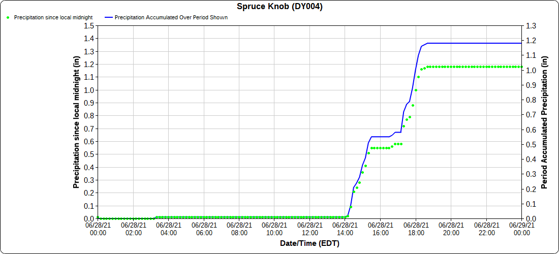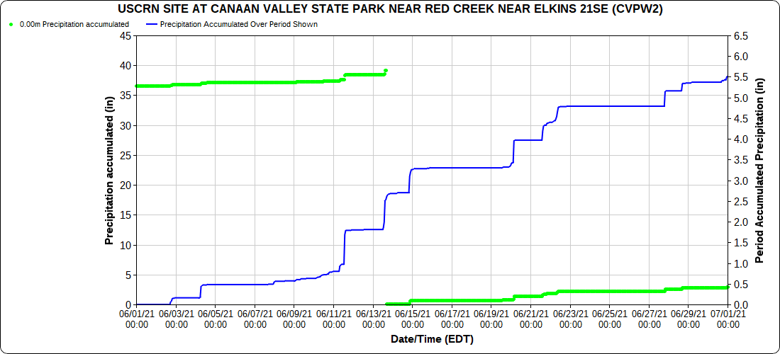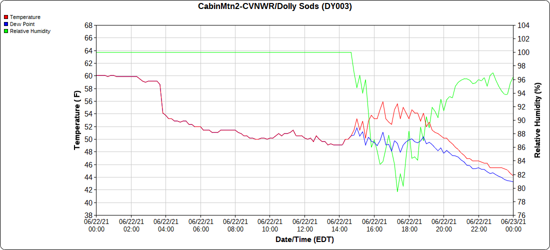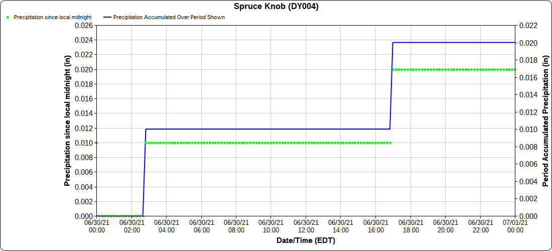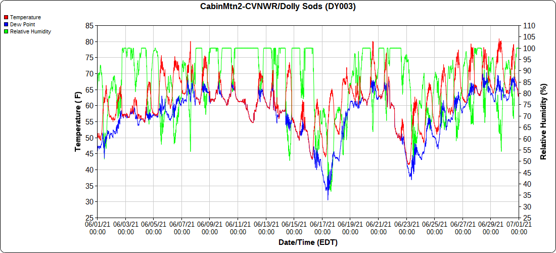 Dy007-Canaan Valley Refuge 3150′, Dy002-Cabin Mt at Bald Knob 4350′, Dy003-Cabin Mt-Western Sods 4035′, Dy004-Spruce Knob 4820′, Cvpw2-Climate Reference Network Canaan 3479′, KW99-Petersburg Grant County Airport 961′