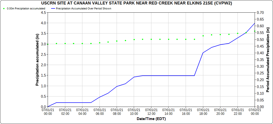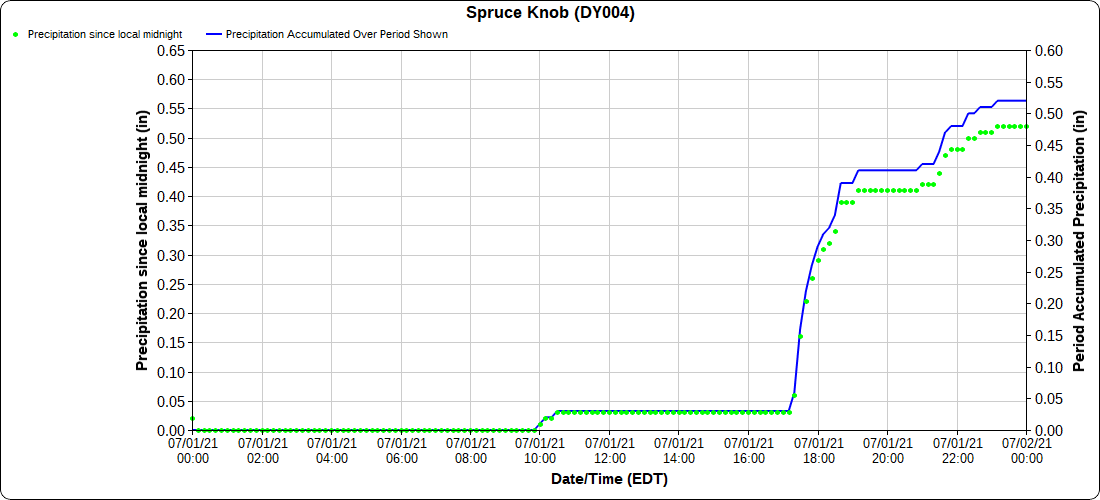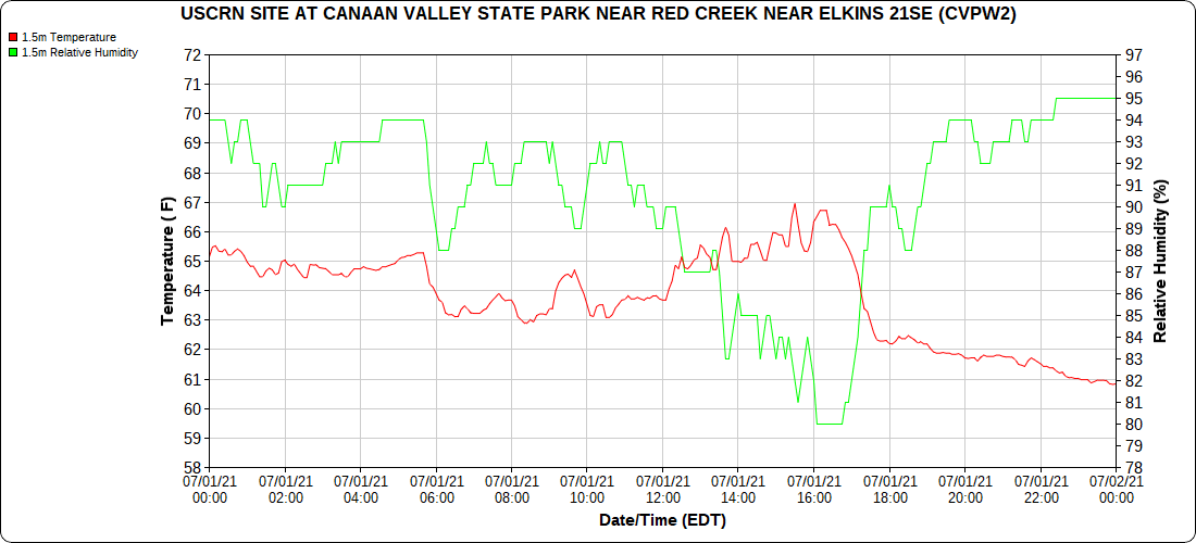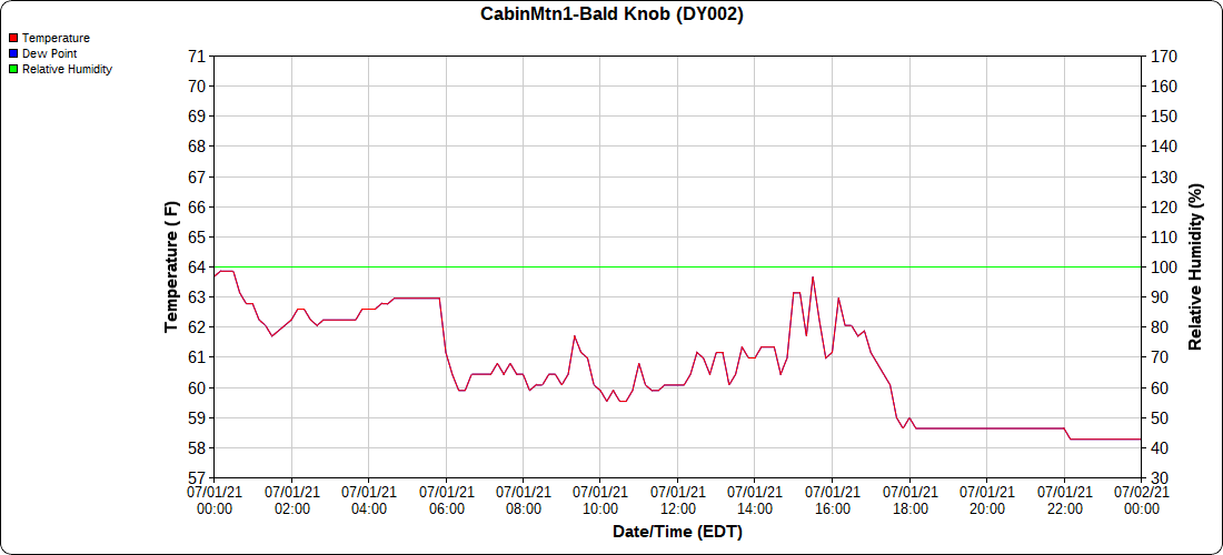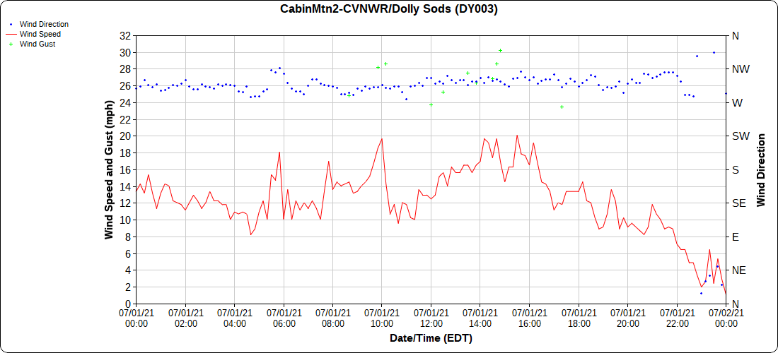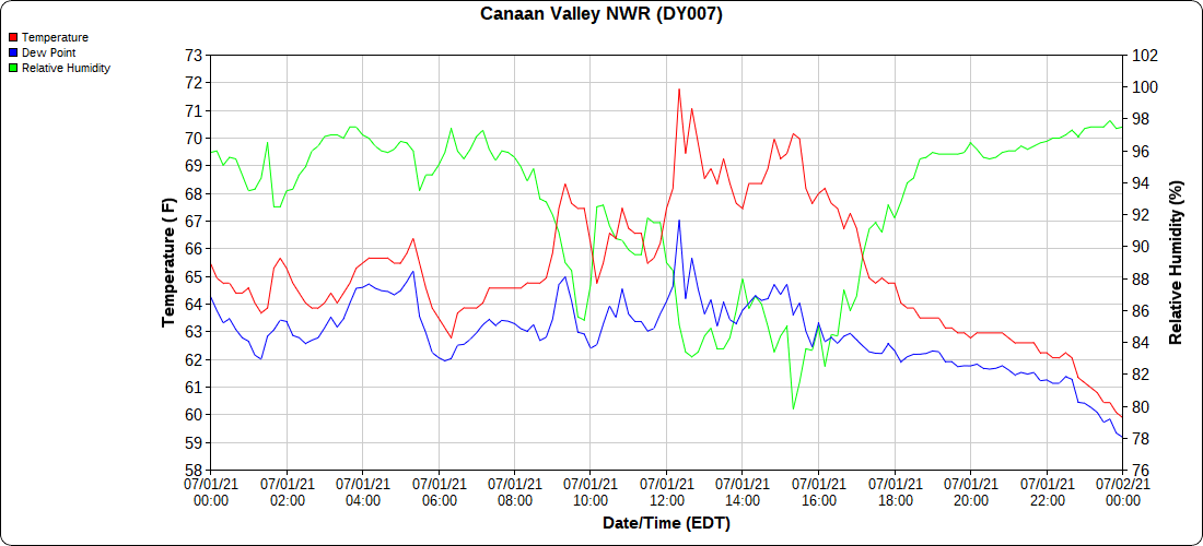 Dy007-Canaan Valley Refuge 3150′, Dy002-Cabin Mt at Bald Knob 4350′, Dy003-Cabin Mt-Western Sods 4035′,,Dy004-Spruce Knob 4820′, Cvpw2-Climate Reference Network Canaan 3479′, KW99-Petersburg Grant County Airport 961′