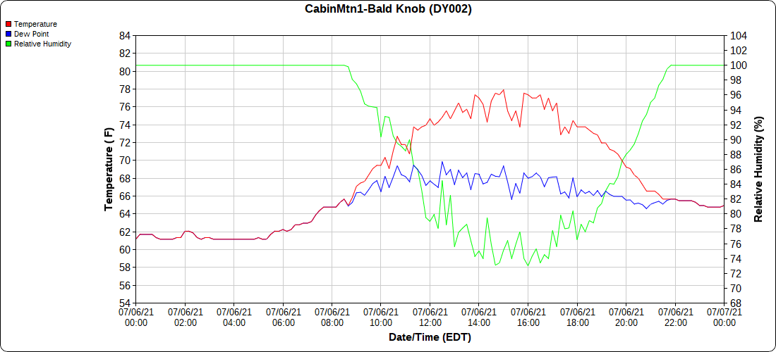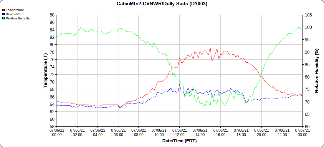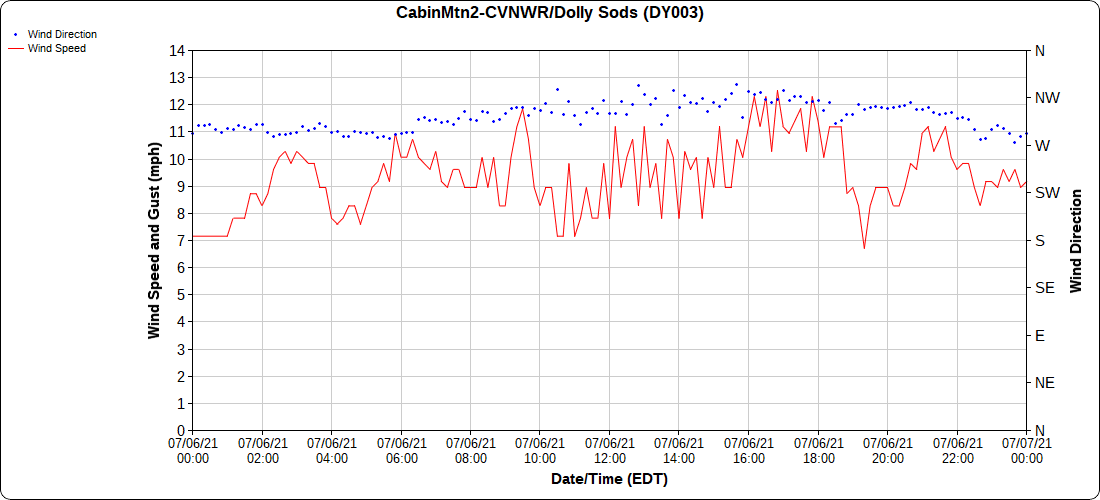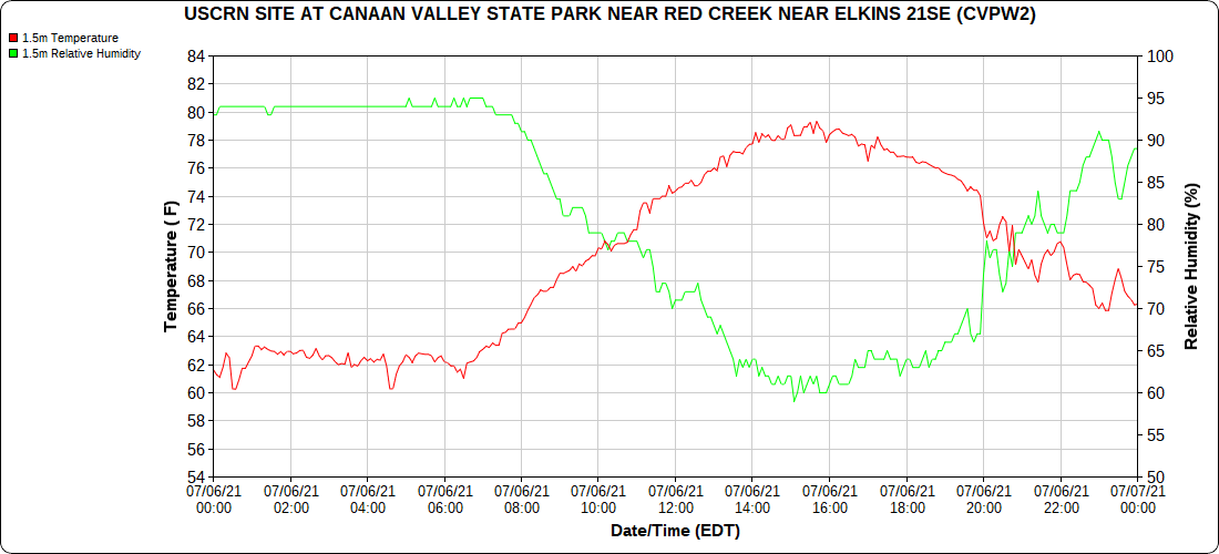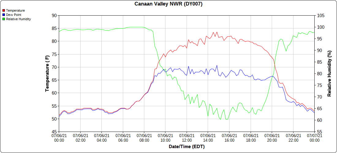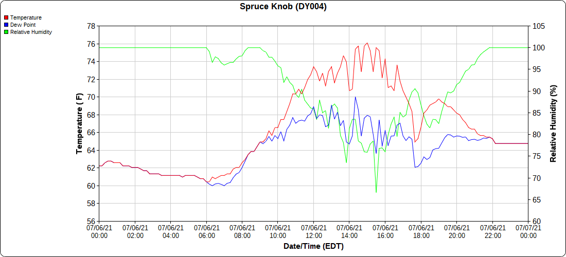 Dy007-Canaan Valley Refuge 3150′, Dy002-Cabin Mt at Bald Knob 4350′, Dy003-Cabin Mt-Western Sods 4035′, Dy004-Spruce Knob 4820′, Cvpw2-Climate Reference Network Canaan 3479′, KW99-Petersburg Grant County Airport 961′