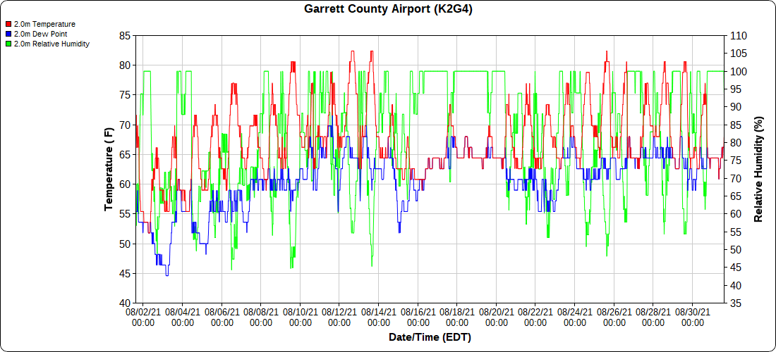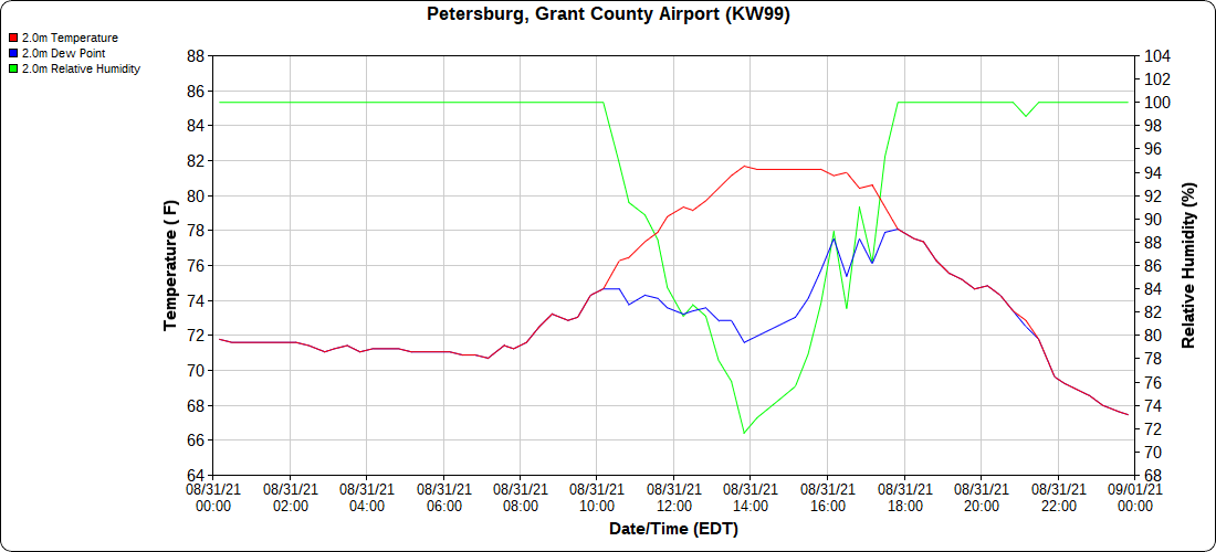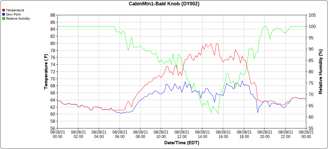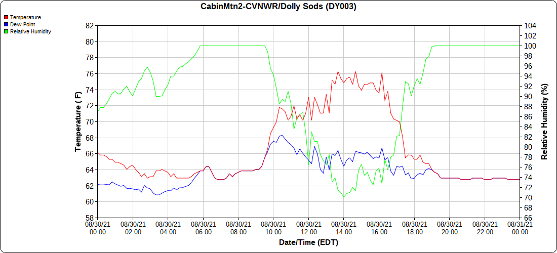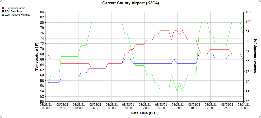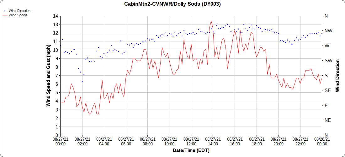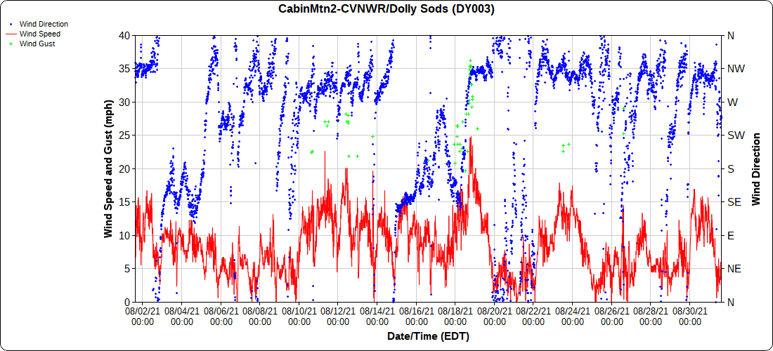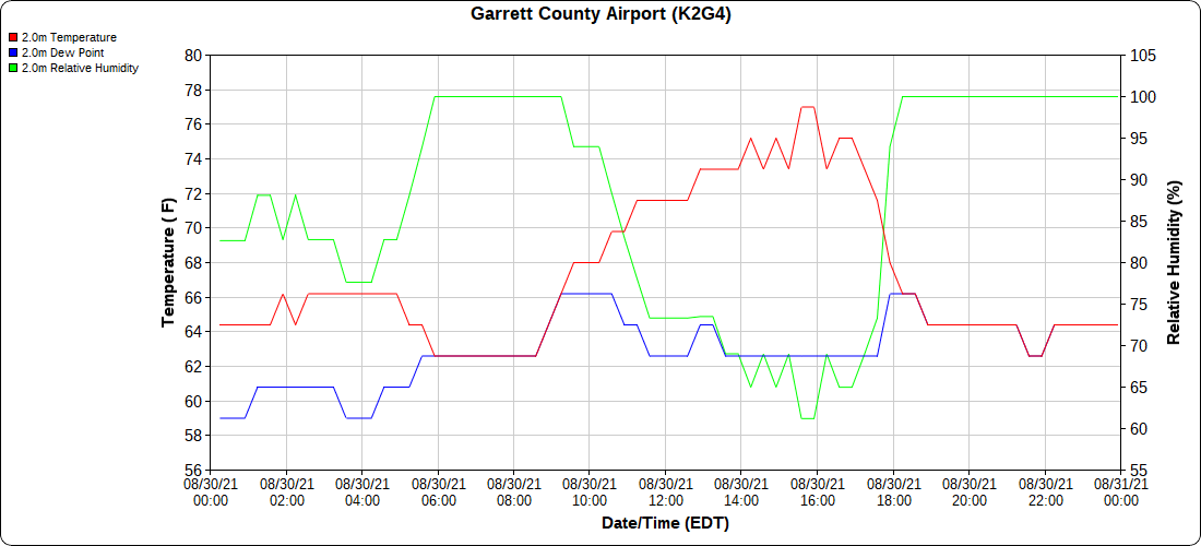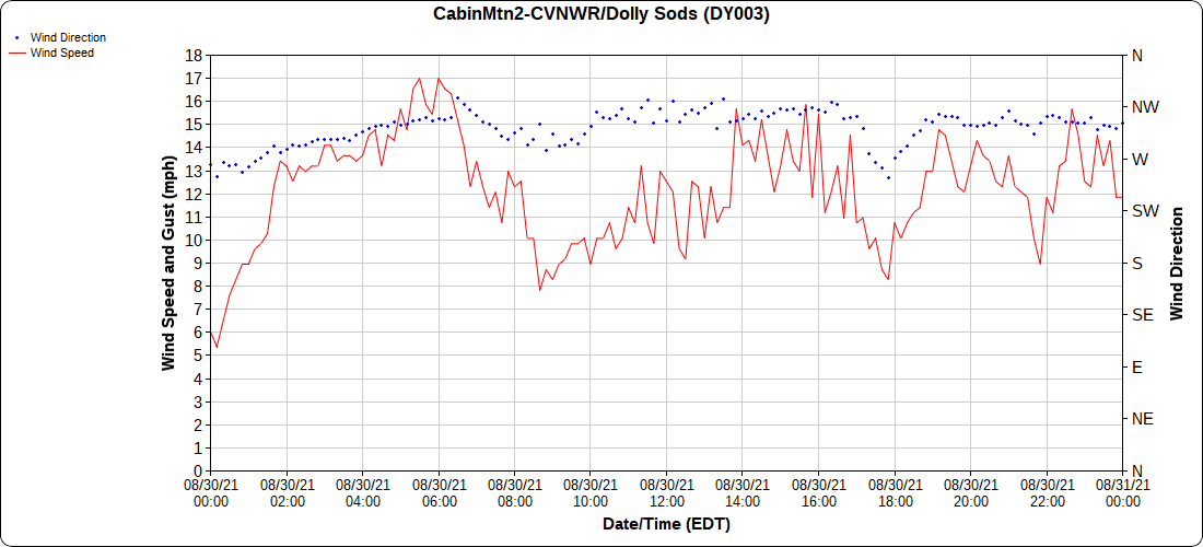 Dy007-Canaan Valley Refuge 3150′, Dy002-Cabin Mt at Bald Knob 4350′, Dy003-Cabin Mt-Western Sods 4035′, Dy004-Spruce Knob 4820′, Cvpw2-Climate Reference Network Canaan 3479′, KW99-Petersburg Grant County Airport 961′, K2G4 Garrett County Airport 2933′, KCBE Cumberland Airport 774′