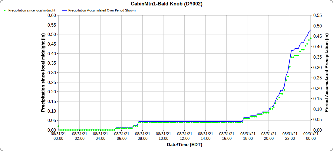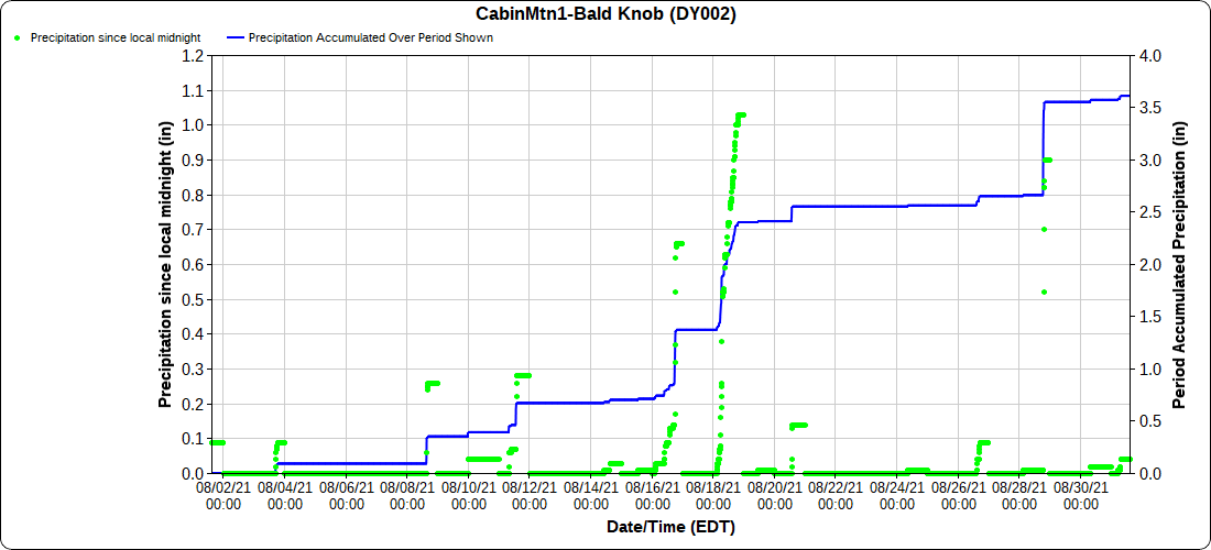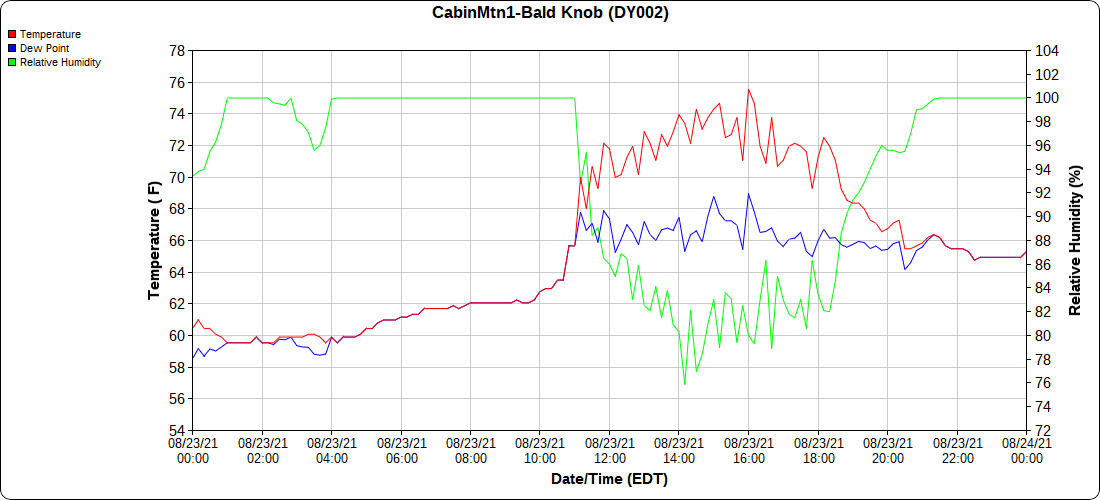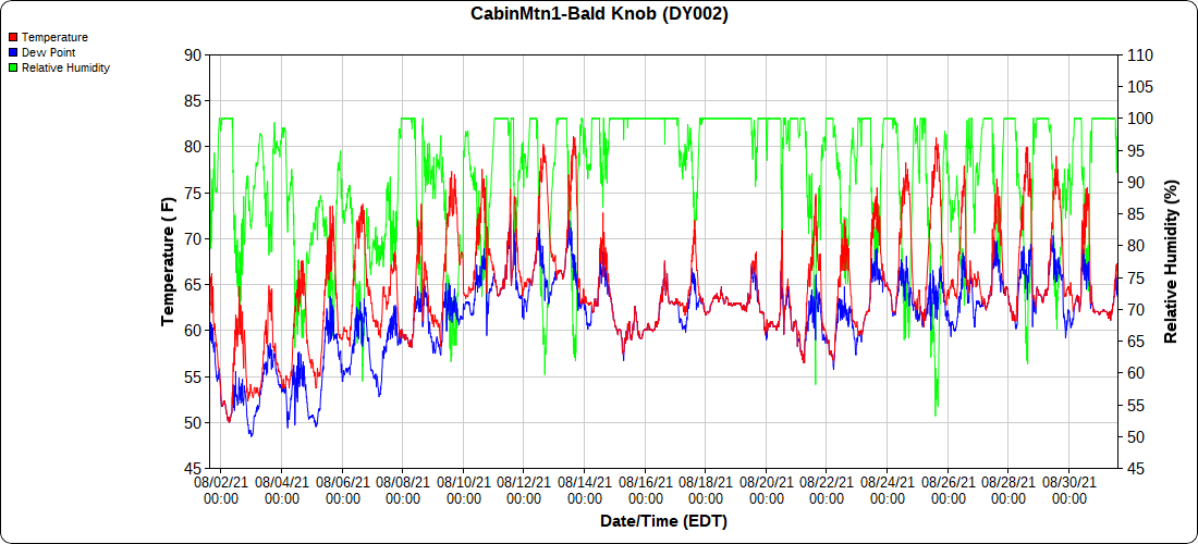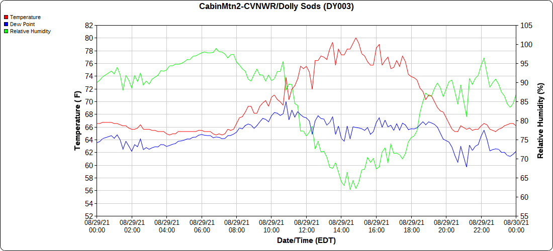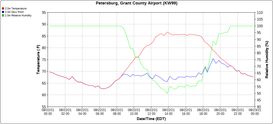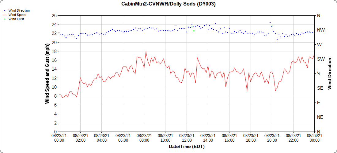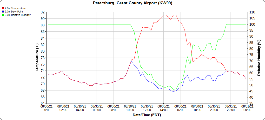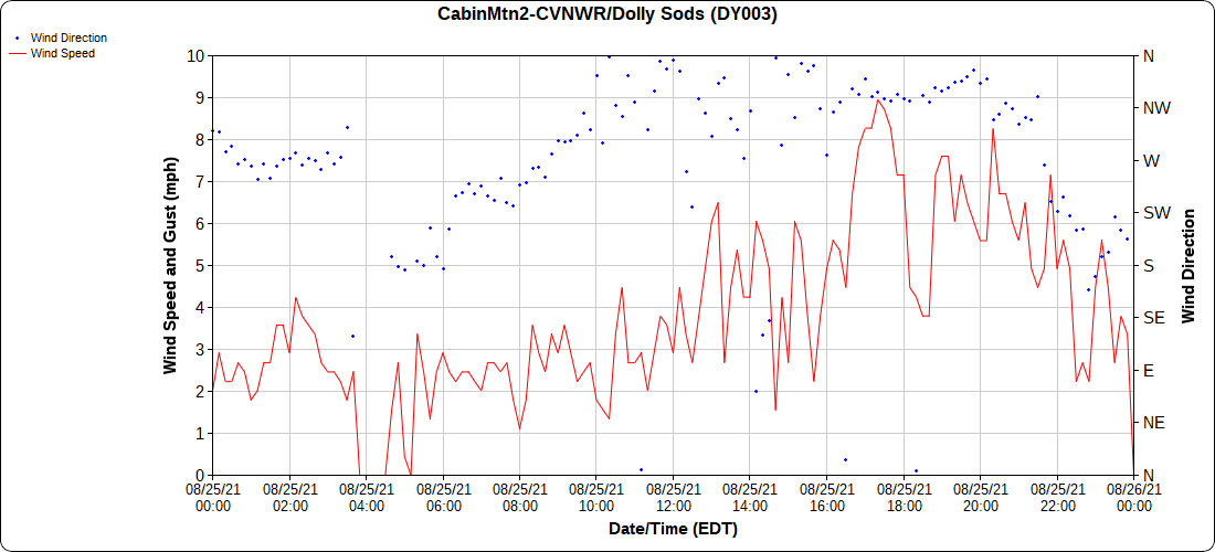 Dy007-Canaan Valley Refuge 3150′, Dy002-Cabin Mt at Bald Knob 4350′, Dy003-Cabin Mt-Western Sods 4035′, Dy004-Spruce Knob 4820′, Cvpw2-Climate Reference Network Canaan 3479′, KW99-Petersburg Grant County Airport 961′, K2G4 Garrett County Airport 2933′, KCBE Cumberland Airport 774′