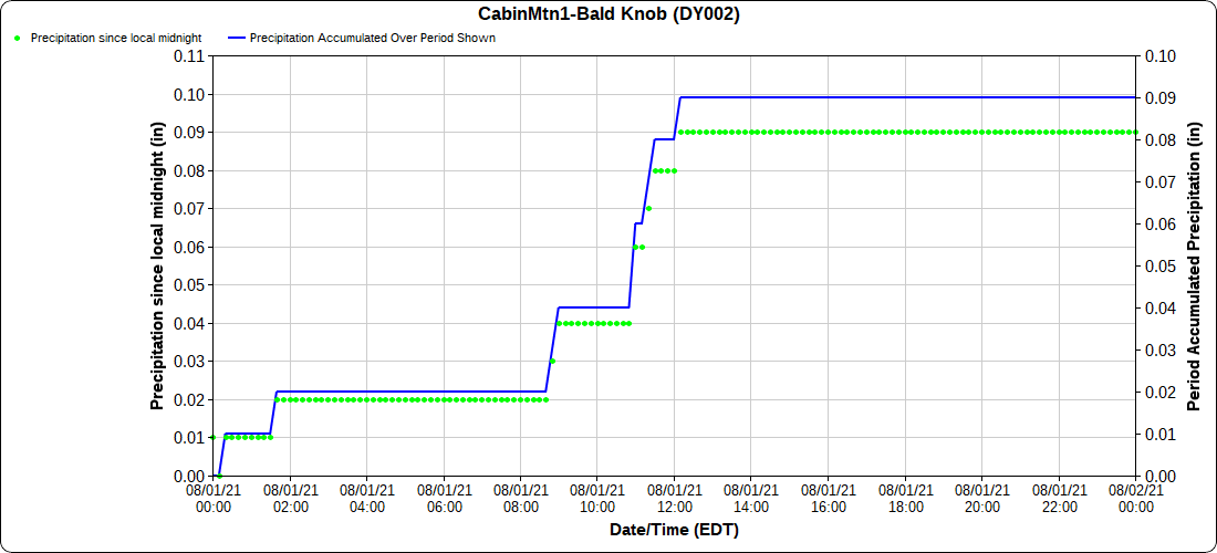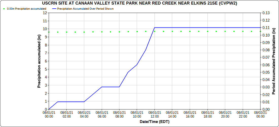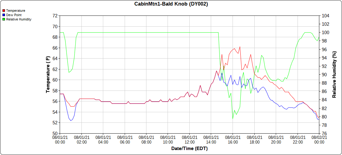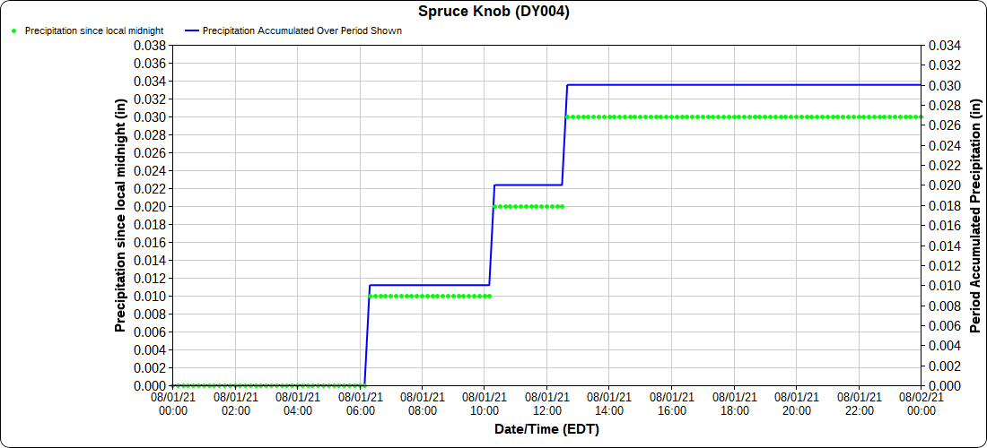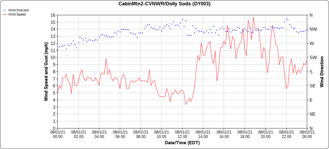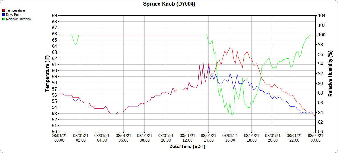 Dy007-Canaan Valley Refuge 3150′, Dy002-Cabin Mt at Bald Knob 4350′, Dy003-Cabin Mt-Western Sods 4035′, Dy004-Spruce Knob 4820′, Cvpw2-Climate Reference Network Canaan 3479′, KW99-Petersburg Grant County Airport 961′