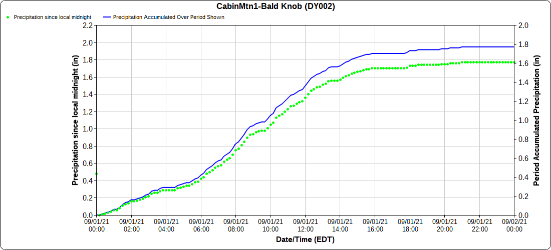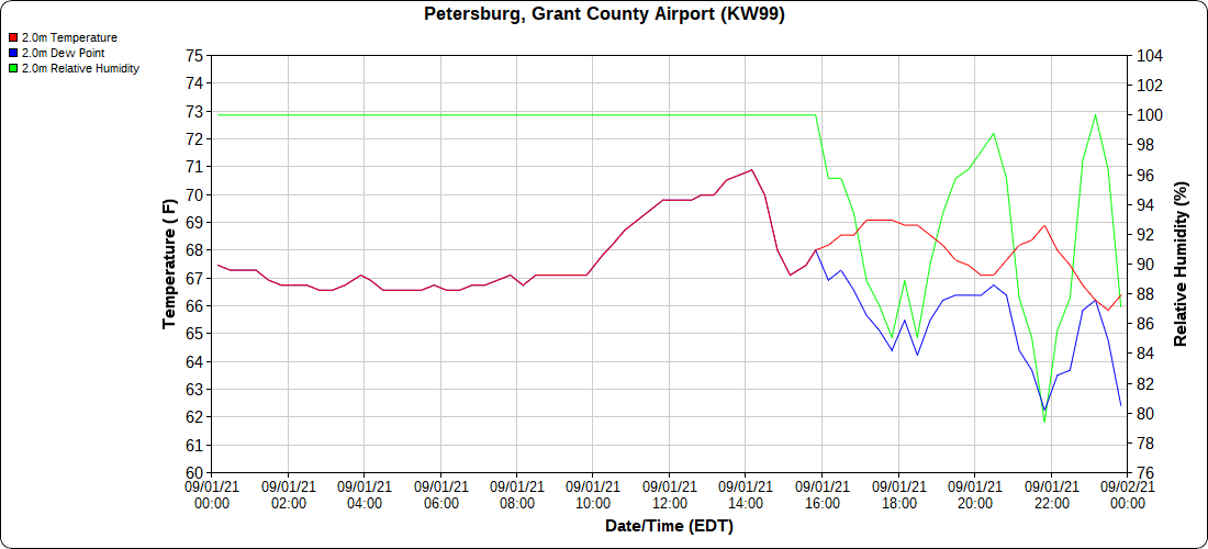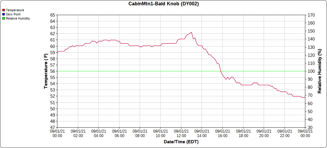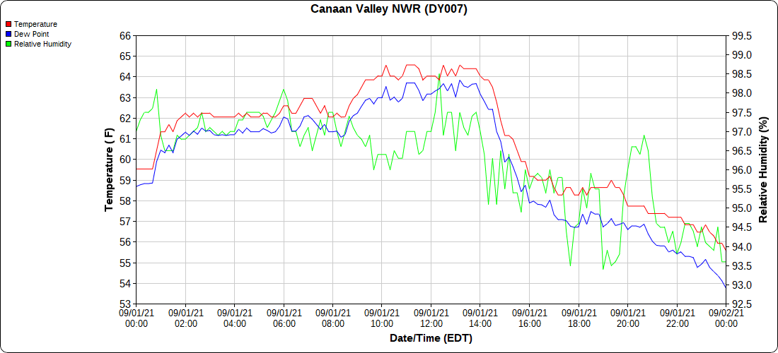Dy007-Canaan Valley Refuge 3150′, Dy002-Cabin Mt at Bald Knob 4350′, Dy003-Cabin Mt-Western Sods 4035′, Dy004-Spruce Knob 4820′, Cvpw2-Climate Reference Network Canaan 3479′, KW99-Petersburg Grant County Airport 961′, K2G4 Garrett County Airport 2933′, KCBE Cumberland Airport 774′