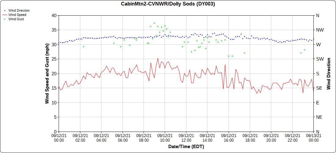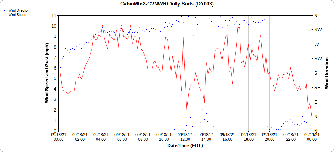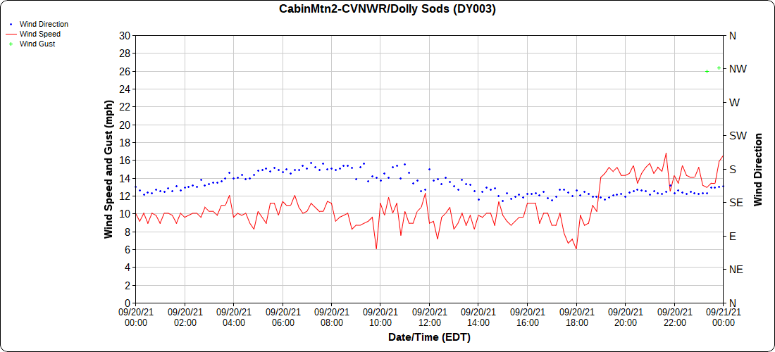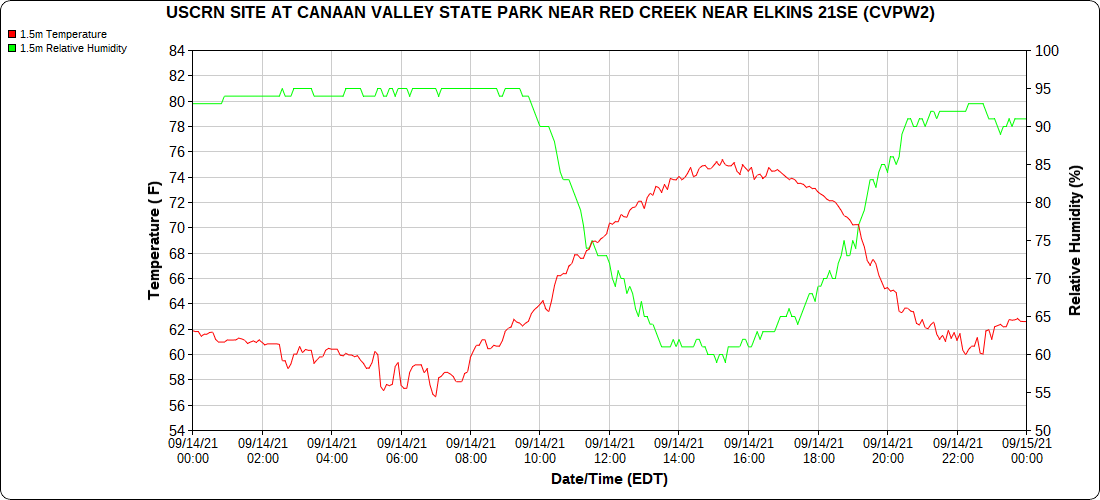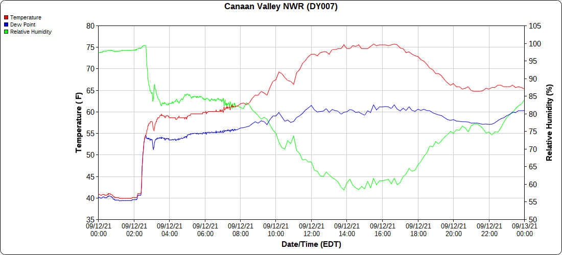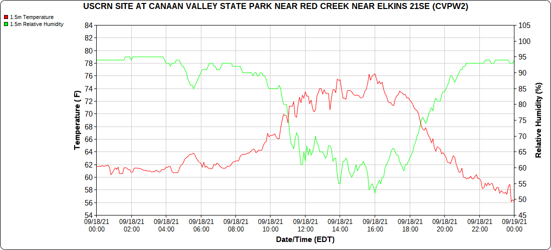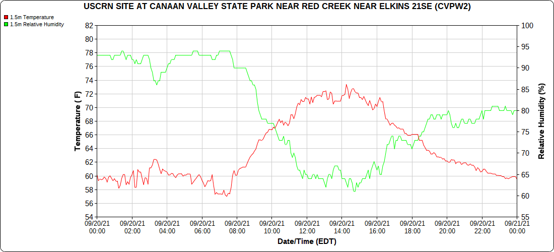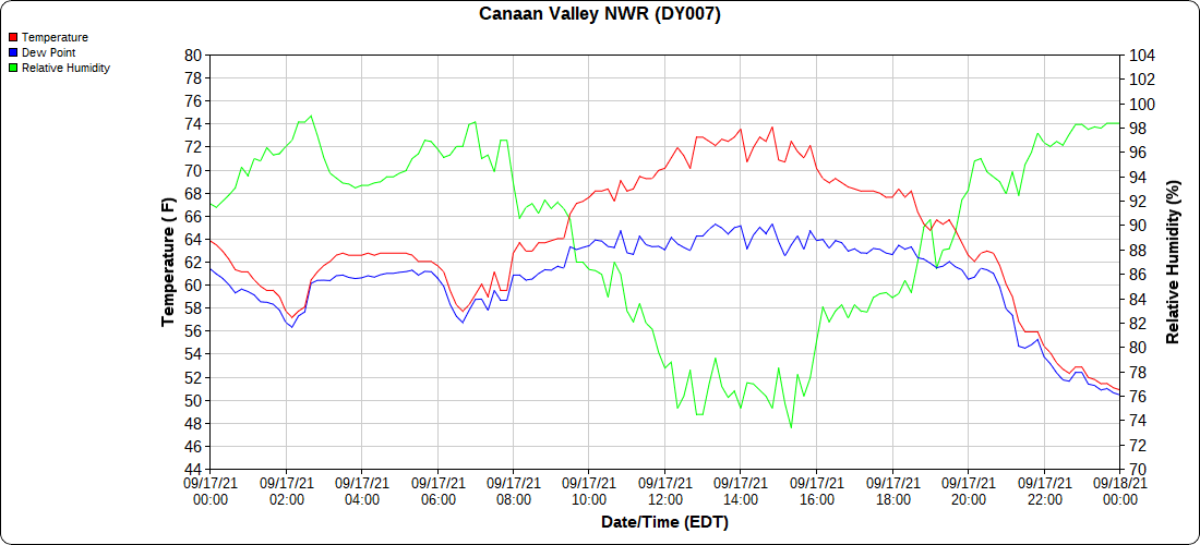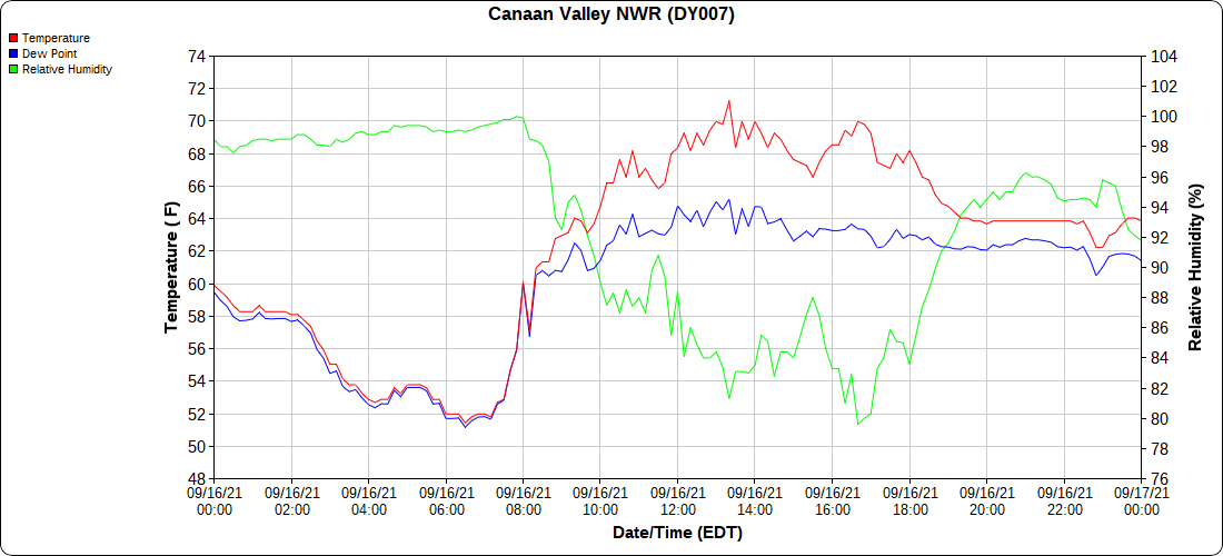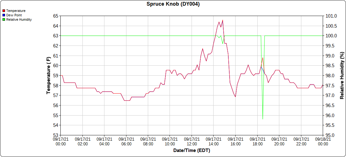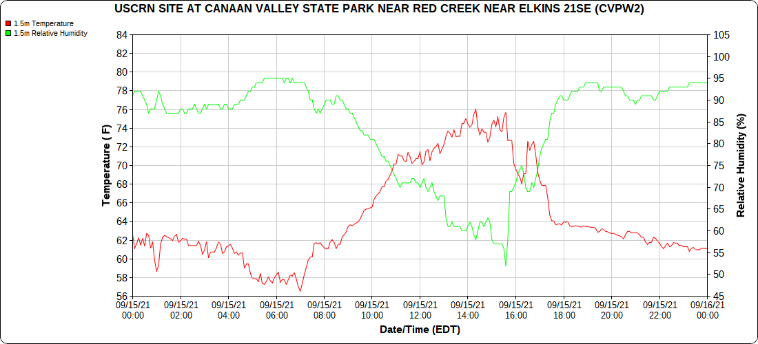 Dy007-Canaan Valley Refuge 3150′, Dy002-Cabin Mt at Bald Knob 4350′, Dy003-Cabin Mt-Western Sods 4035′, Dy004-Spruce Knob 4820′, Cvpw2-Climate Reference Network Canaan 3479′, KW99-Petersburg Grant County Airport 961′, K2G4 Garrett County Airport 2933′, KCBE Cumberland Airport 774′