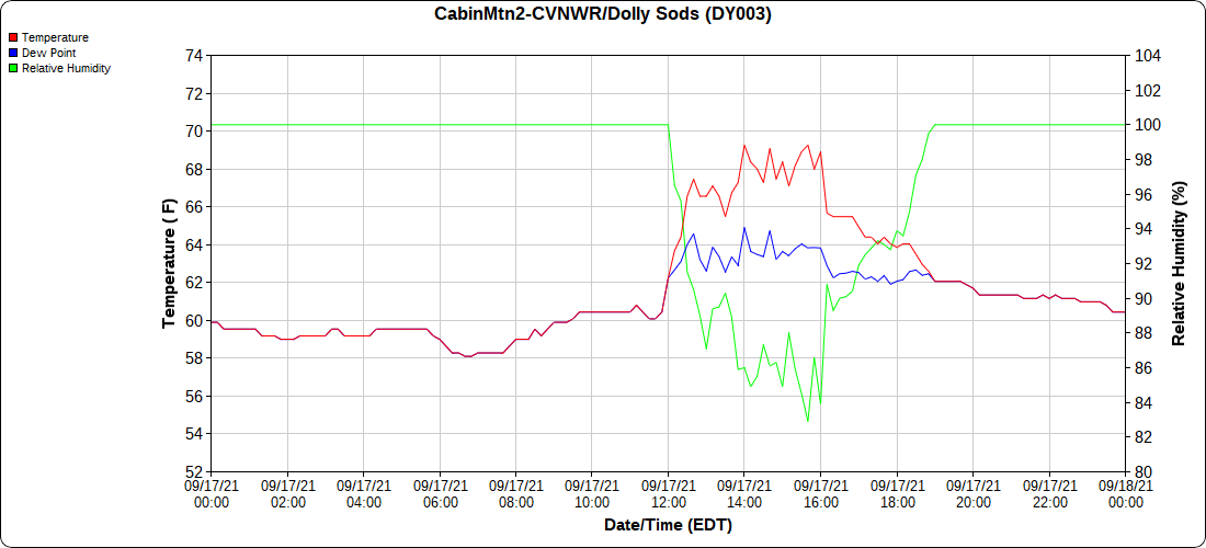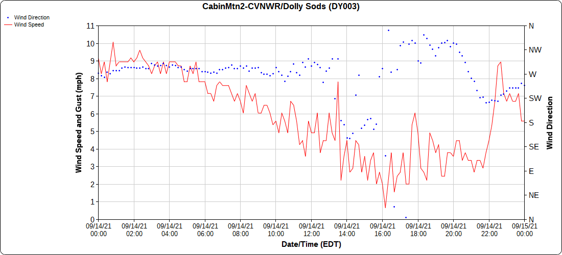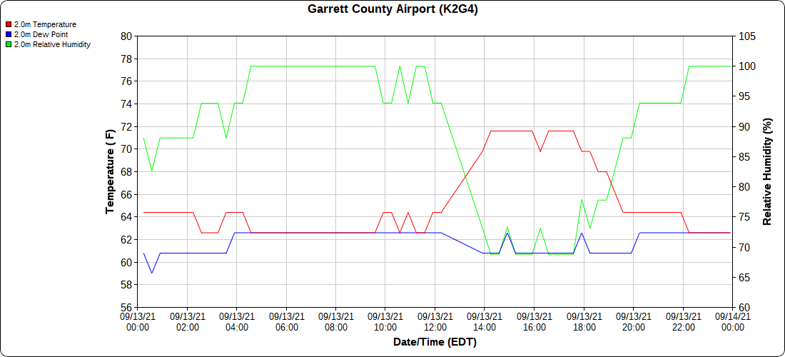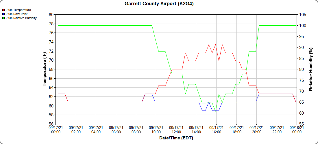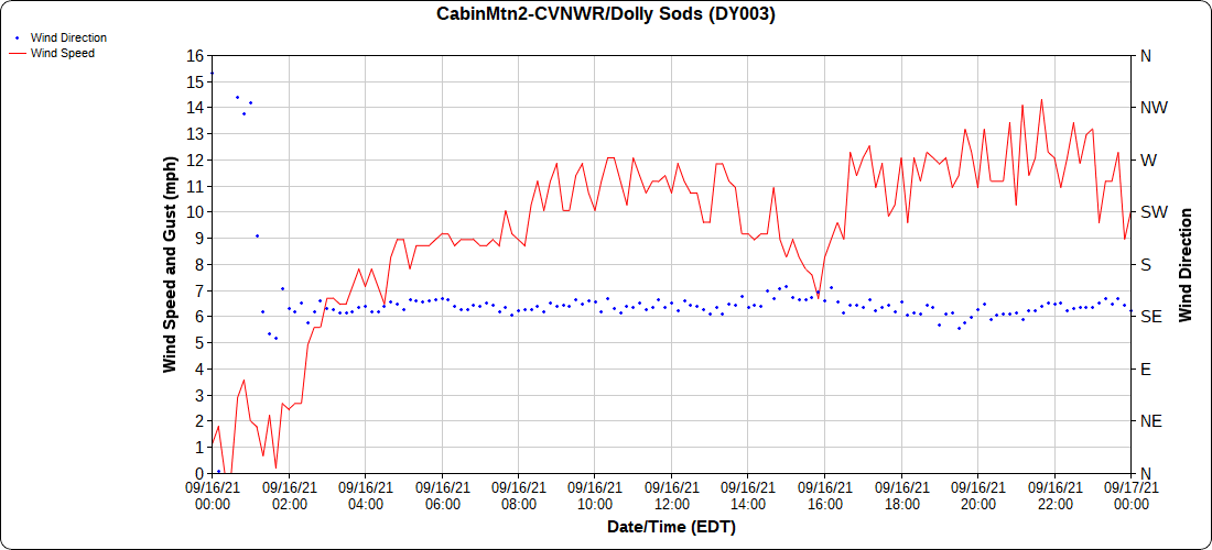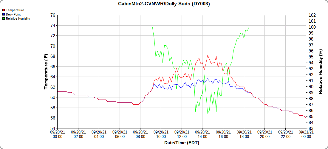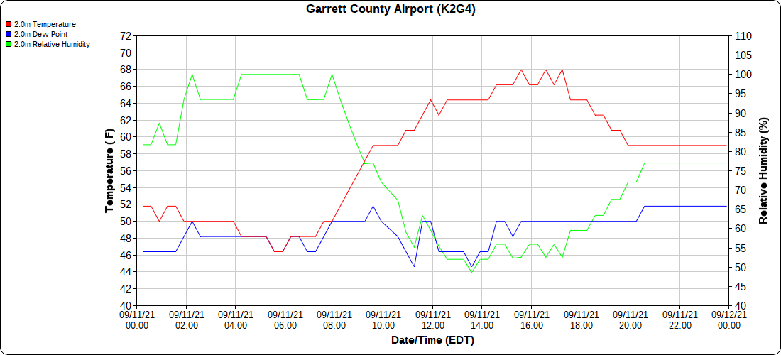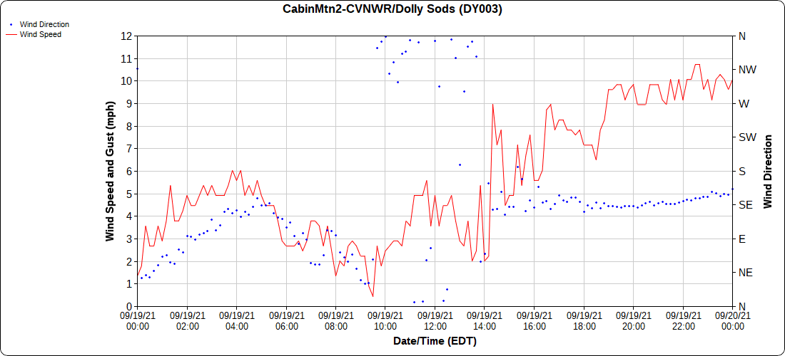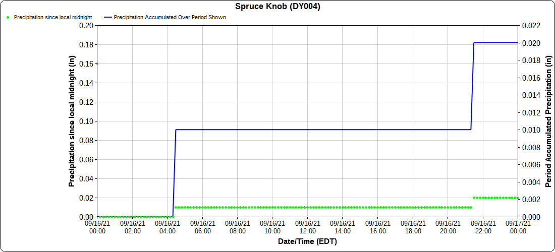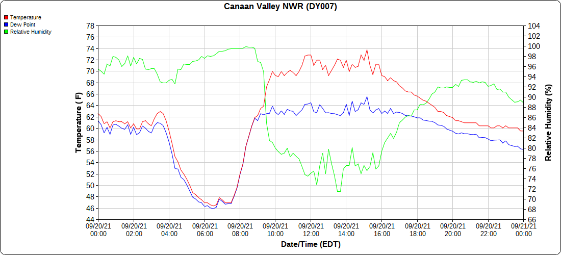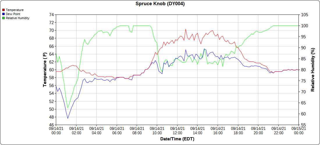 Dy007-Canaan Valley Refuge 3150′, Dy002-Cabin Mt at Bald Knob 4350′, Dy003-Cabin Mt-Western Sods 4035′, Dy004-Spruce Knob 4820′, Cvpw2-Climate Reference Network Canaan 3479′, KW99-Petersburg Grant County Airport 961′, K2G4 Garrett County Airport 2933′, KCBE Cumberland Airport 774′