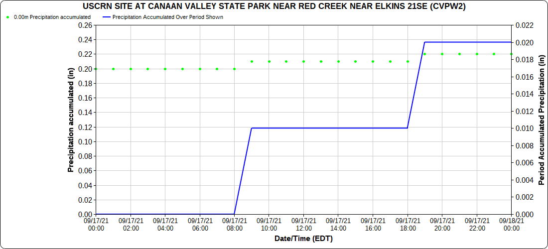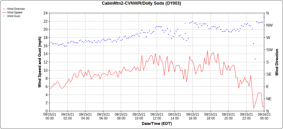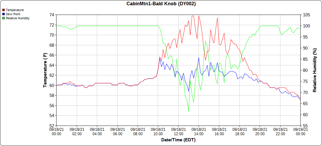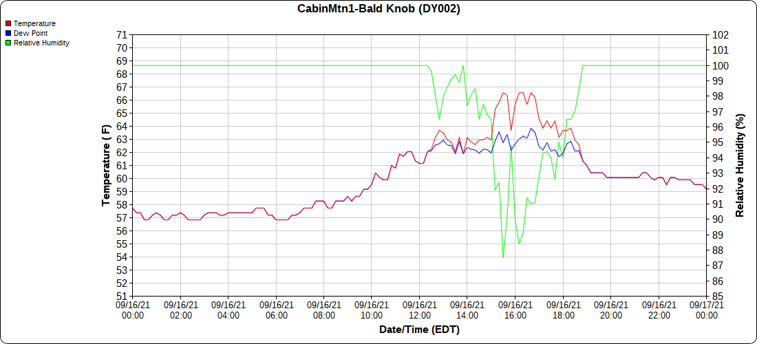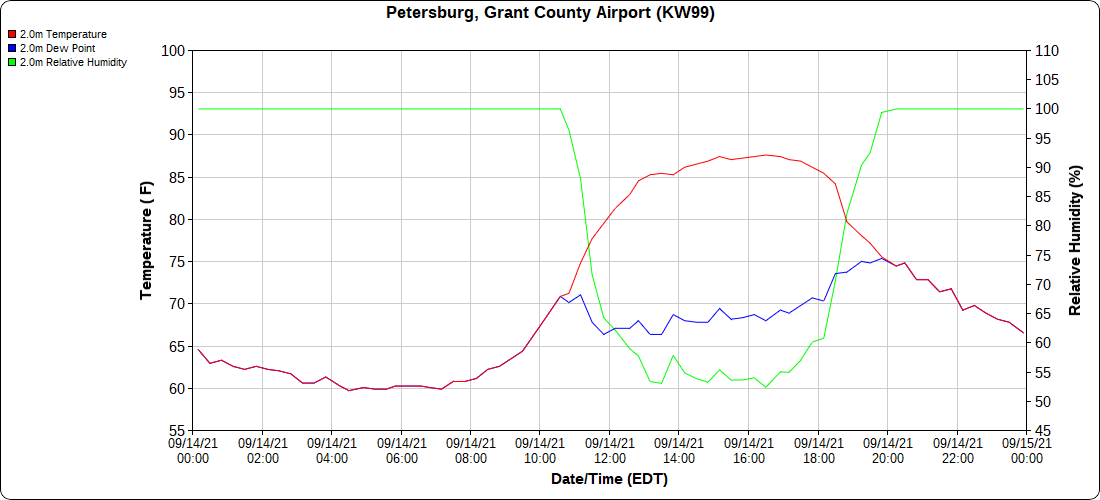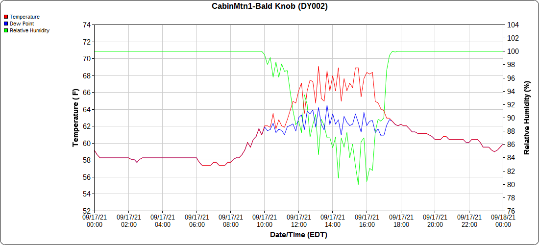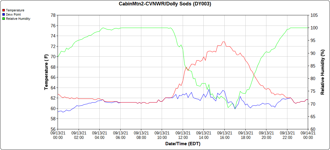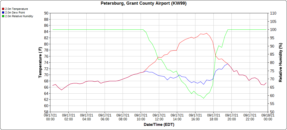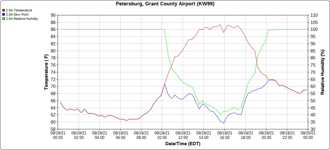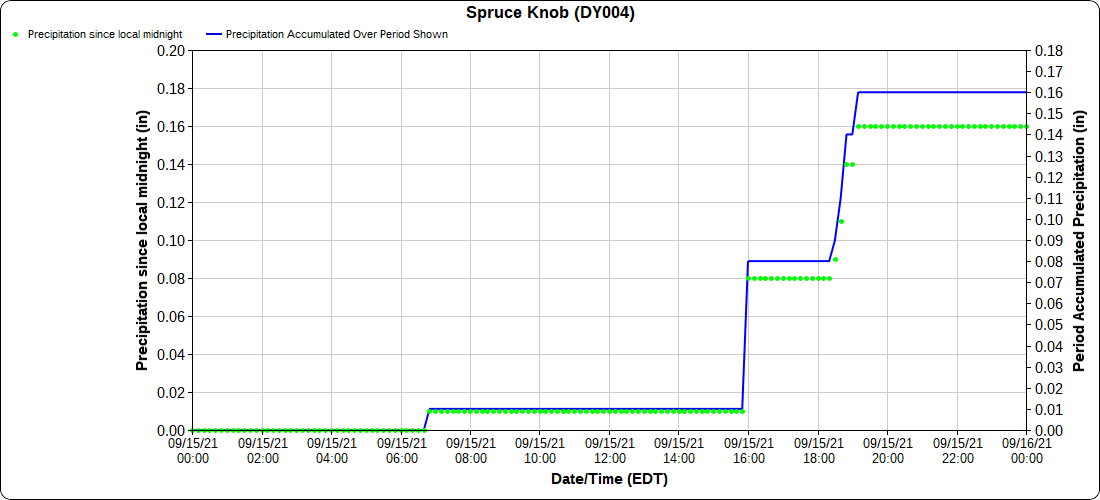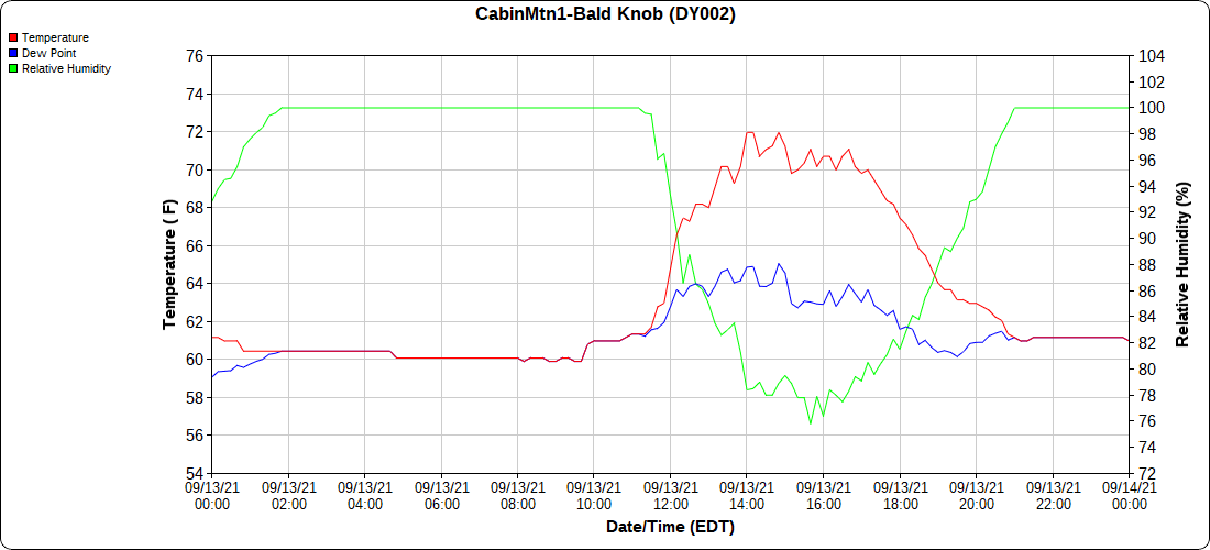 Dy007-Canaan Valley Refuge 3150′, Dy002-Cabin Mt at Bald Knob 4350′, Dy003-Cabin Mt-Western Sods 4035′, Dy004-Spruce Knob 4820′, Cvpw2-Climate Reference Network Canaan 3479′, KW99-Petersburg Grant County Airport 961′, K2G4 Garrett County Airport 2933′, KCBE Cumberland Airport 774′