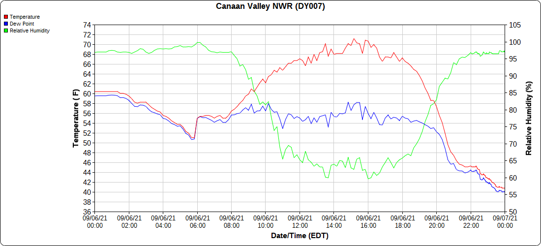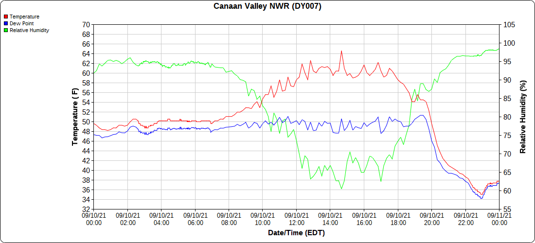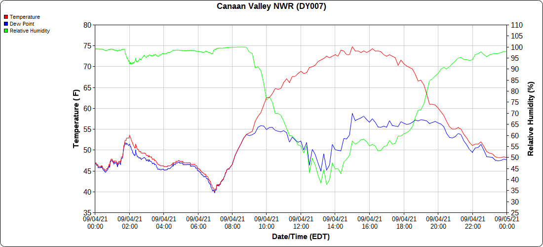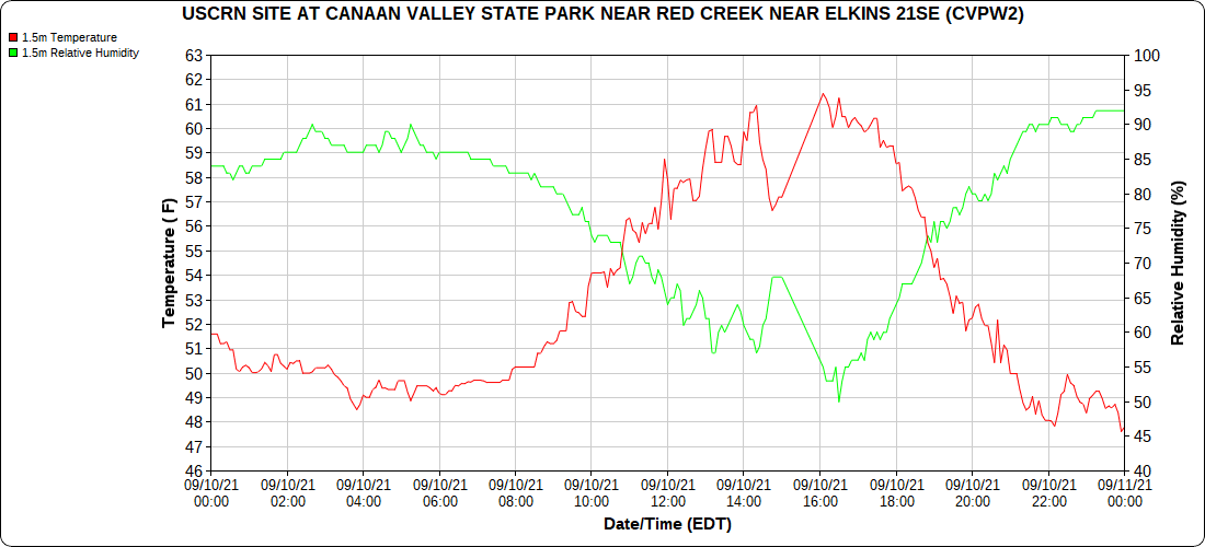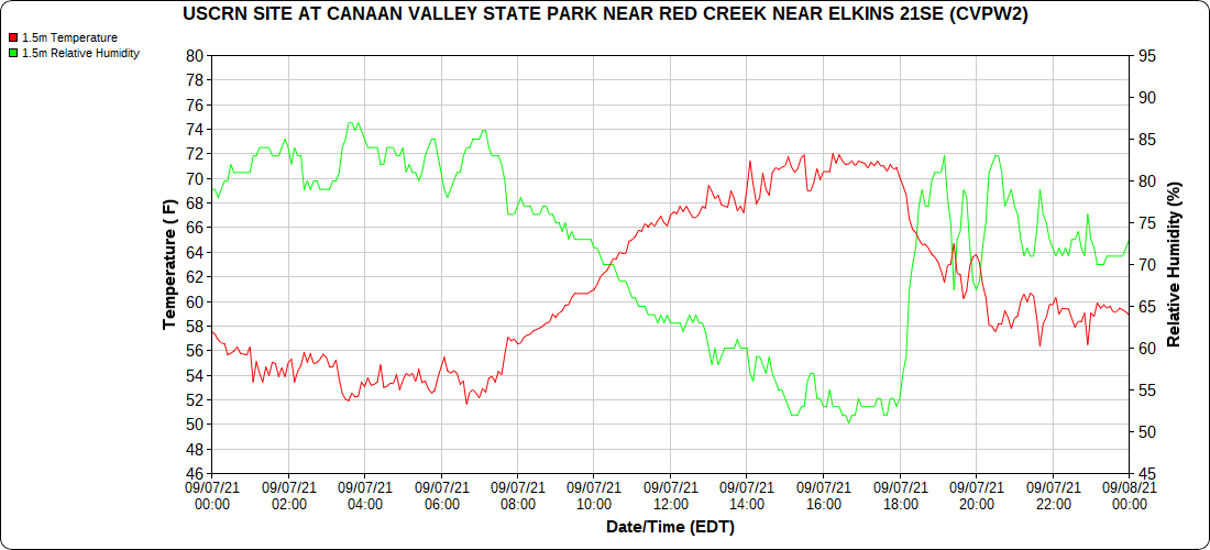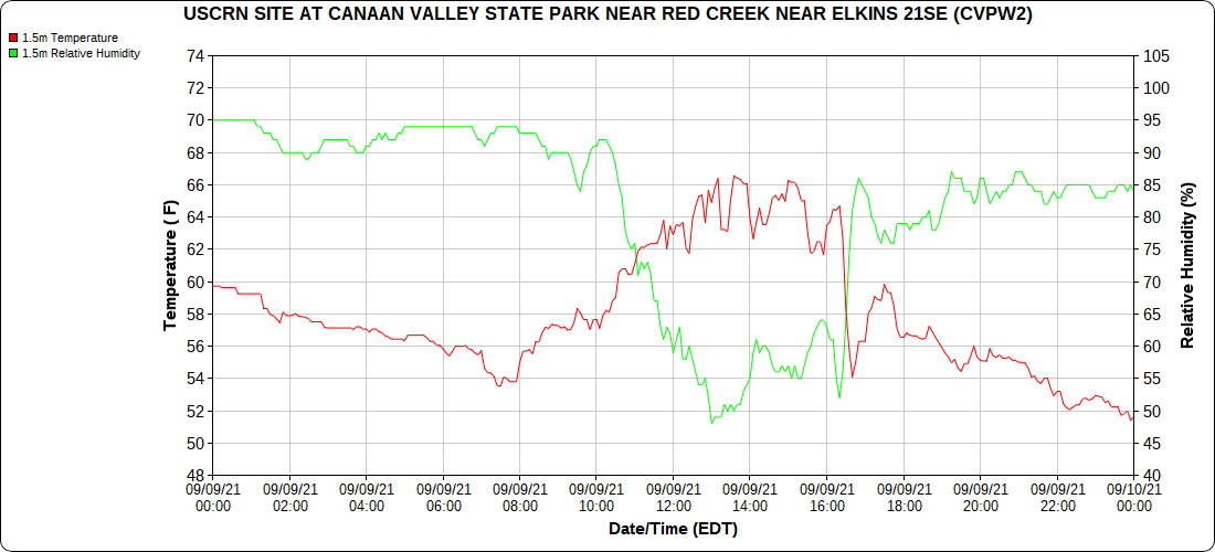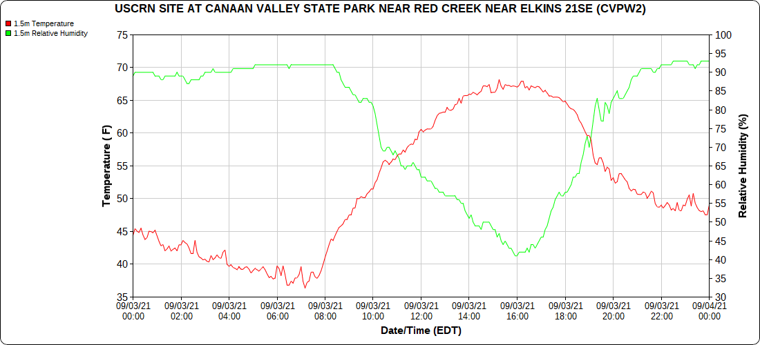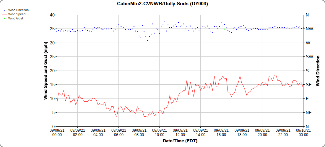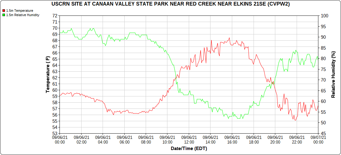 Dy007-Canaan Valley Refuge 3150′, Dy002-Cabin Mt at Bald Knob 4350′, Dy003-Cabin Mt-Western Sods 4035′, Dy004-Spruce Knob 4820′, Cvpw2-Climate Reference Network Canaan 3479′, KW99-Petersburg Grant County Airport 961′, K2G4 Garrett County Airport 2933′, KCBE Cumberland Airport 774′