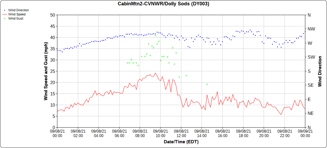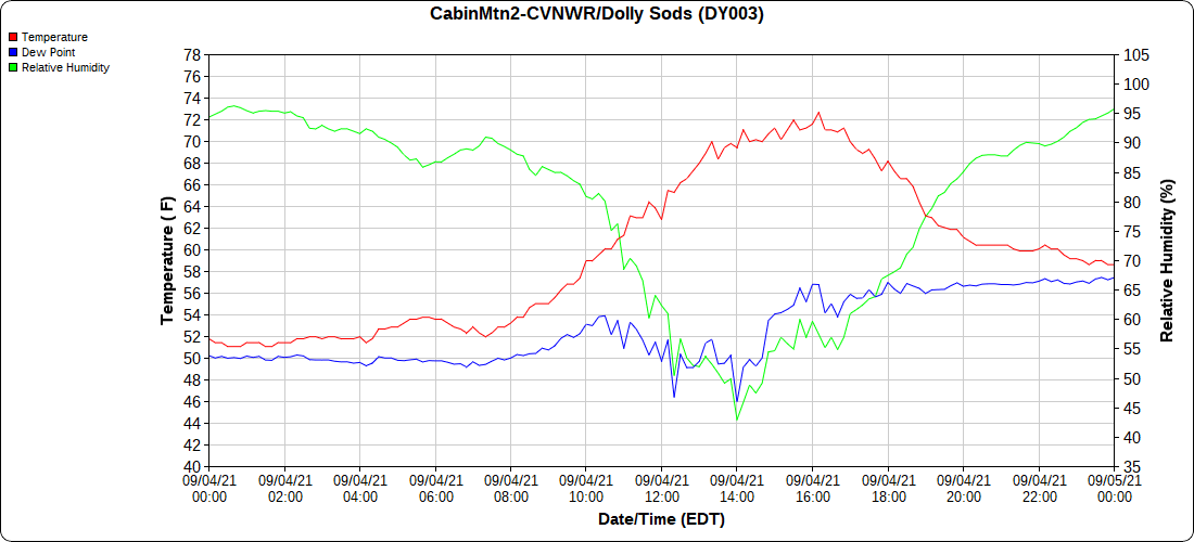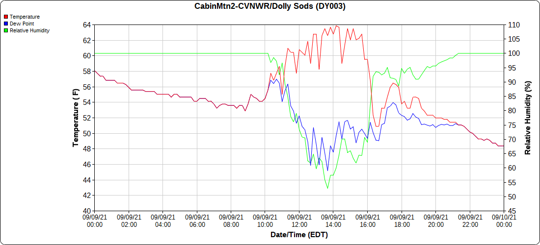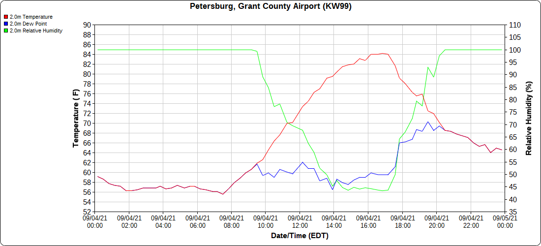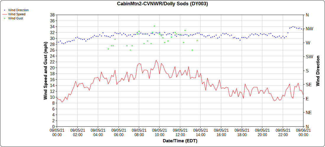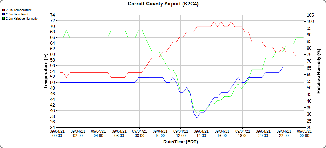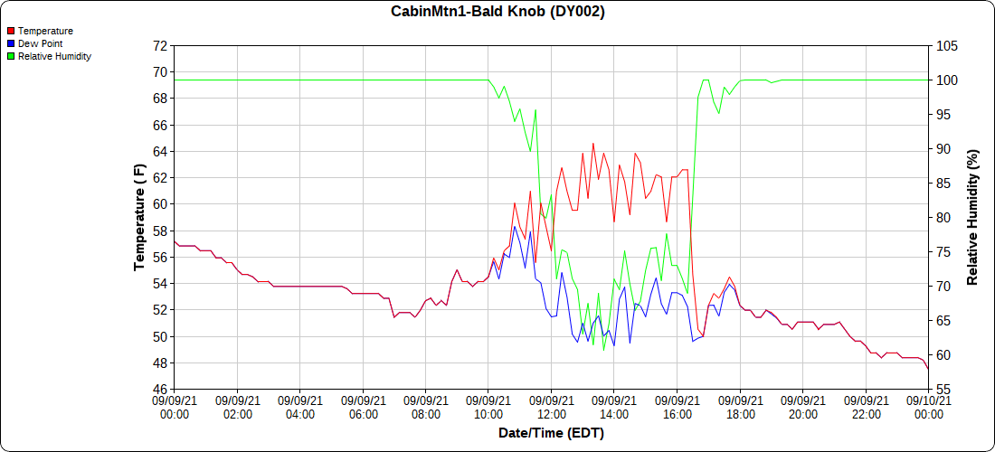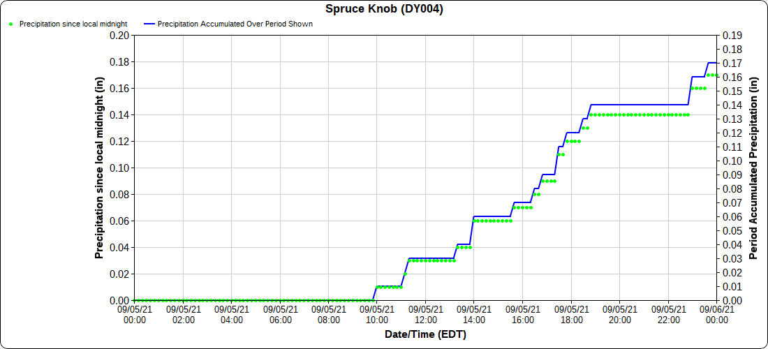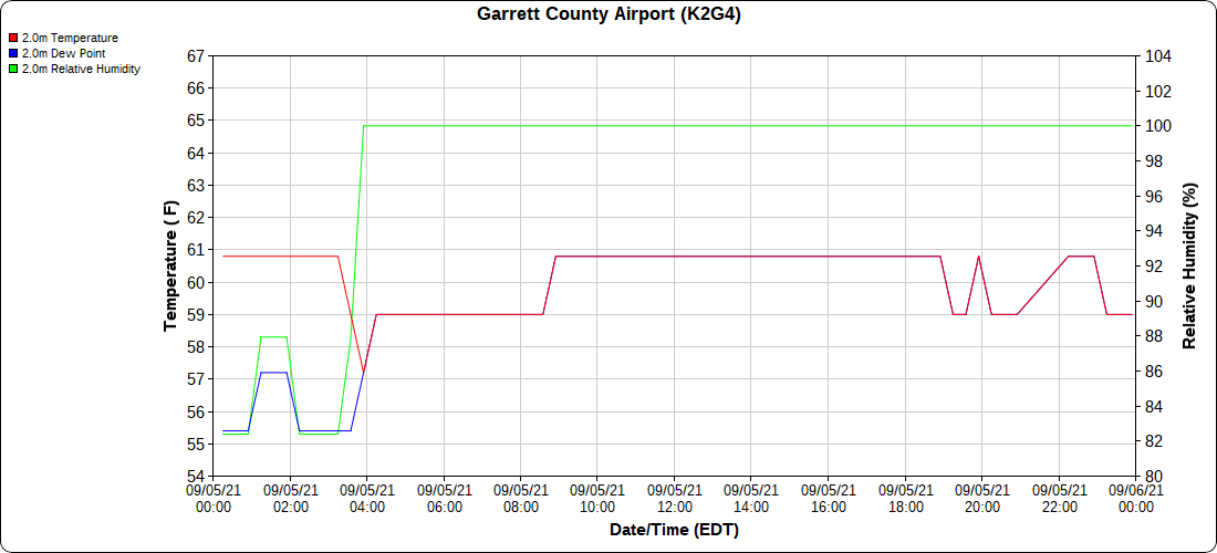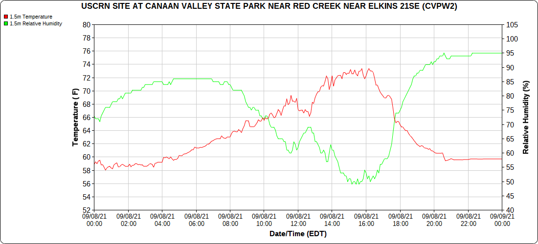 Dy007-Canaan Valley Refuge 3150′, Dy002-Cabin Mt at Bald Knob 4350′, Dy003-Cabin Mt-Western Sods 4035′, Dy004-Spruce Knob 4820′, Cvpw2-Climate Reference Network Canaan 3479′, KW99-Petersburg Grant County Airport 961′, K2G4 Garrett County Airport 2933′, KCBE Cumberland Airport 774′