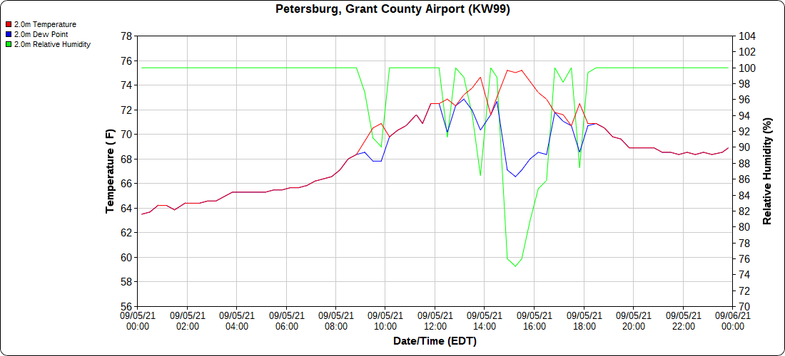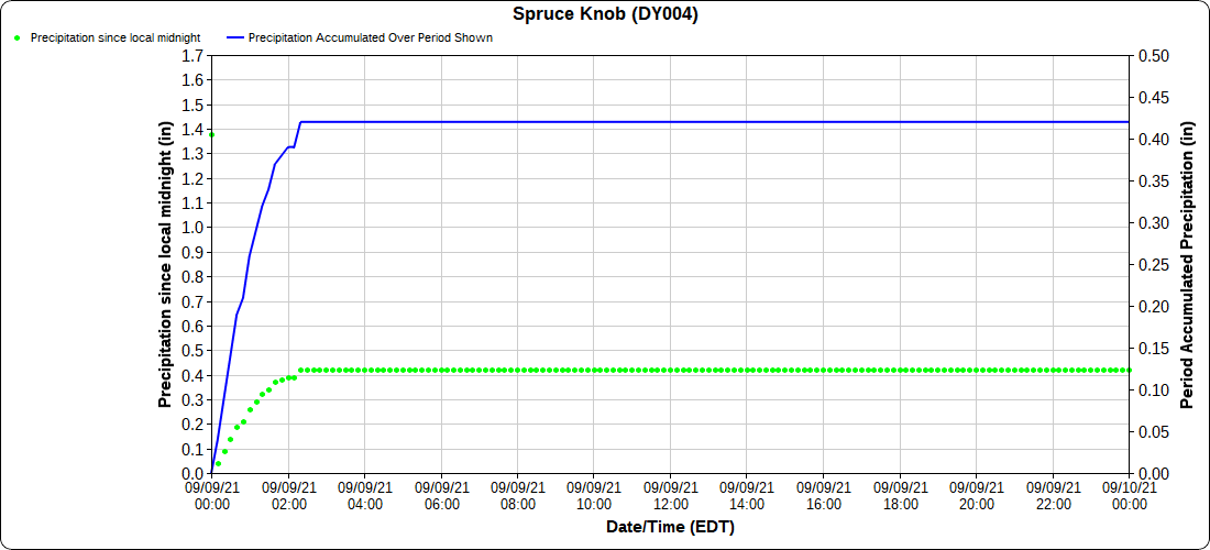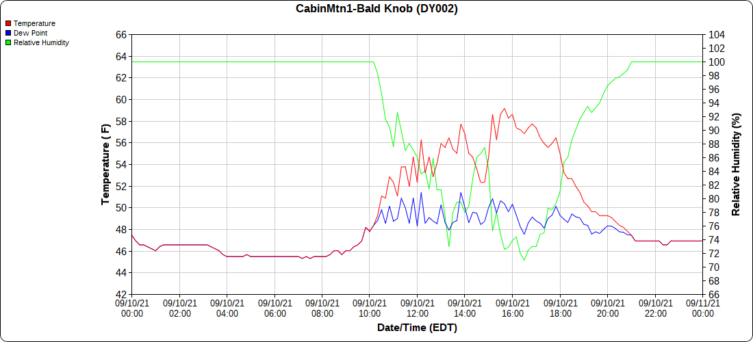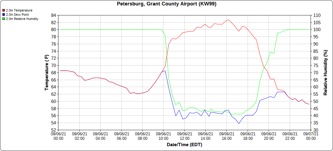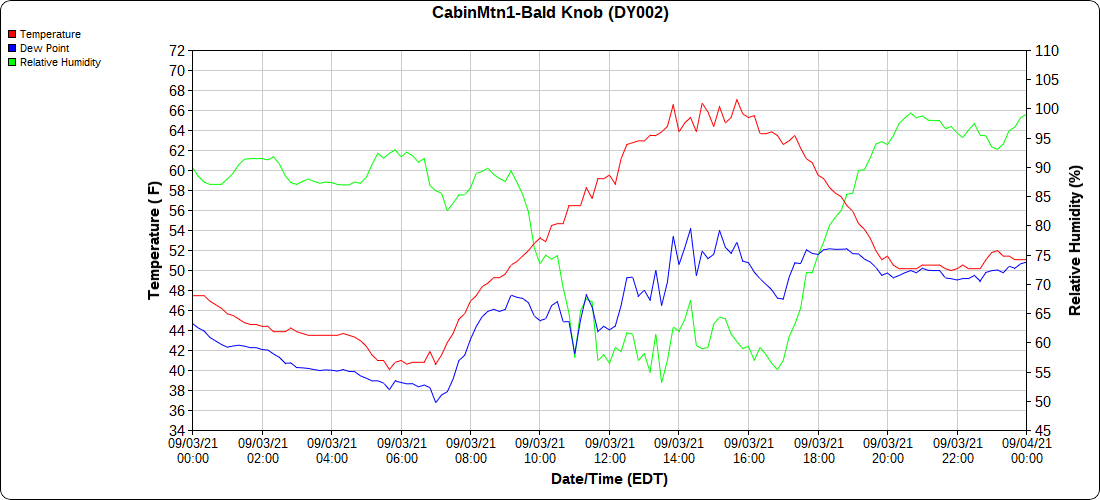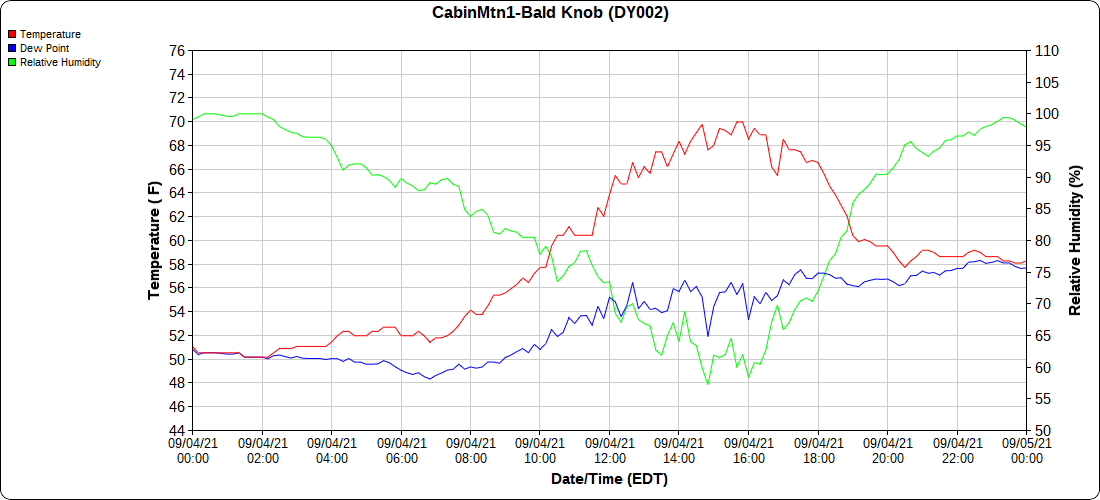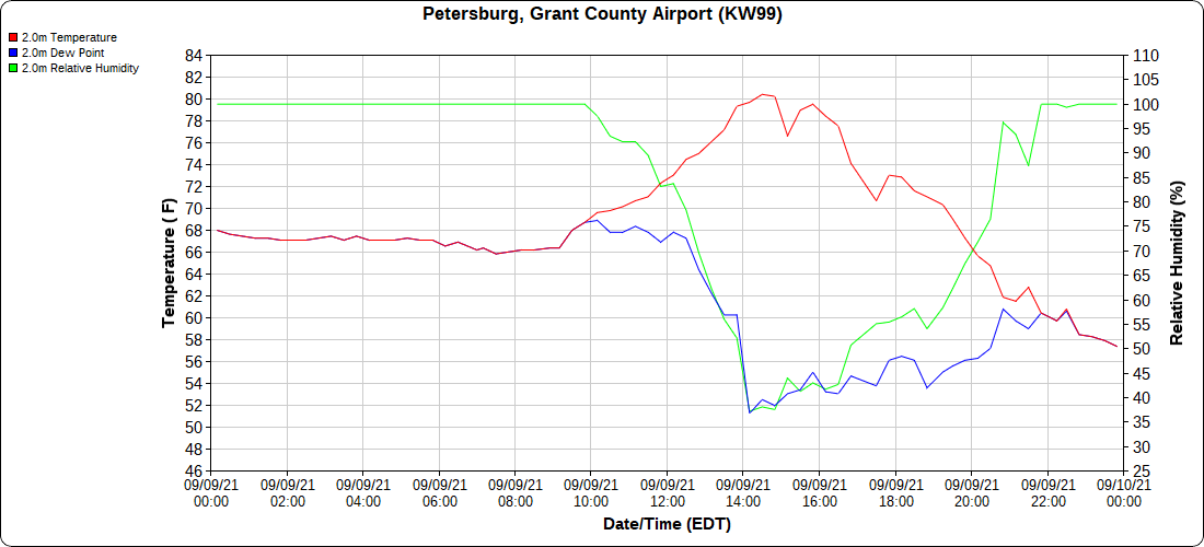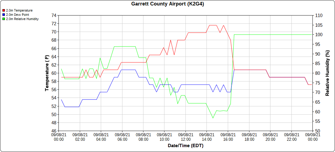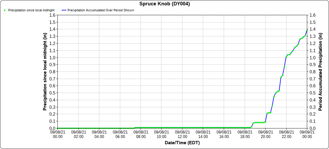 Dy007-Canaan Valley Refuge 3150′, Dy002-Cabin Mt at Bald Knob 4350′, Dy003-Cabin Mt-Western Sods 4035′, Dy004-Spruce Knob 4820′, Cvpw2-Climate Reference Network Canaan 3479′, KW99-Petersburg Grant County Airport 961′, K2G4 Garrett County Airport 2933′, KCBE Cumberland Airport 774′