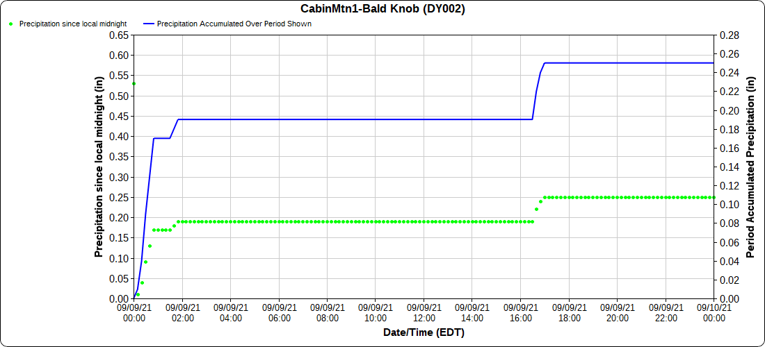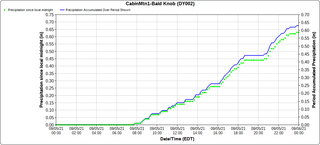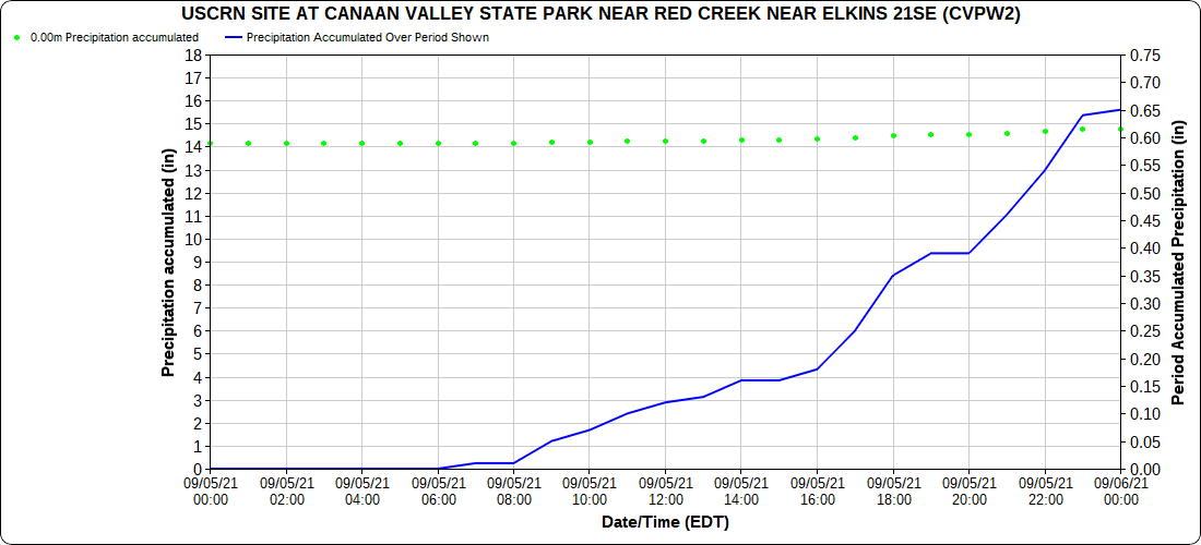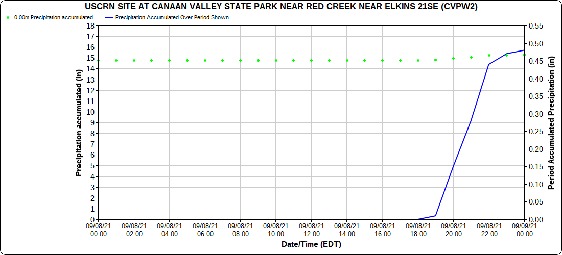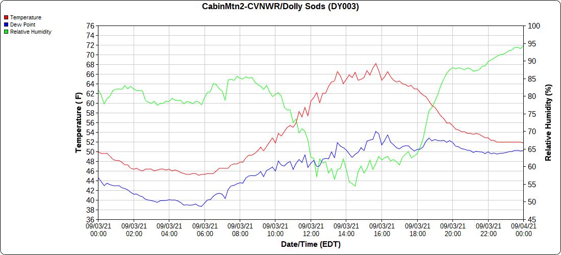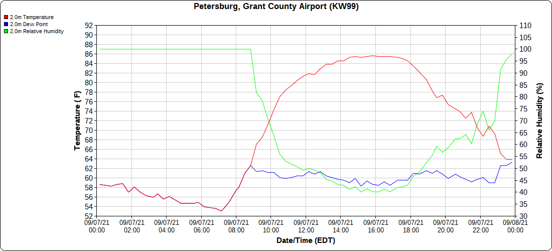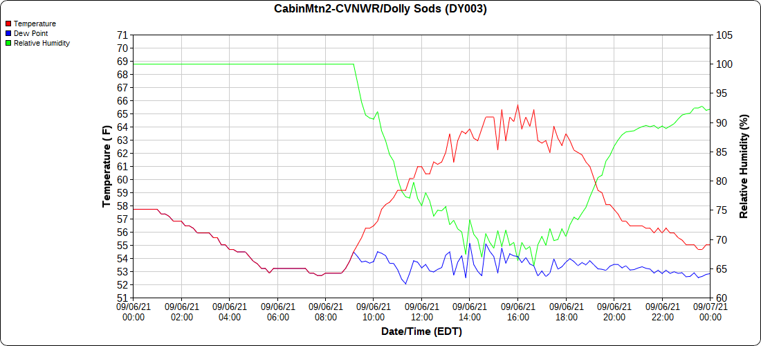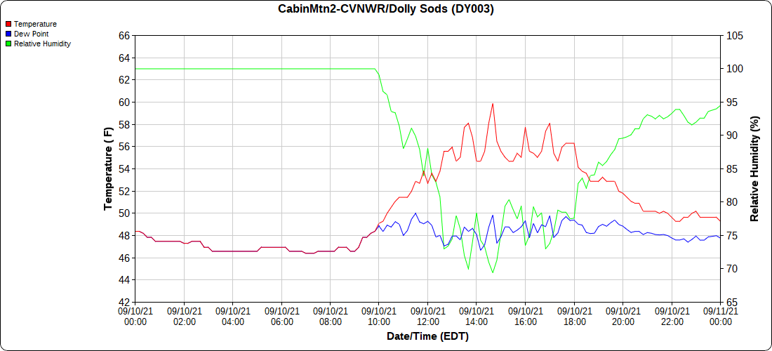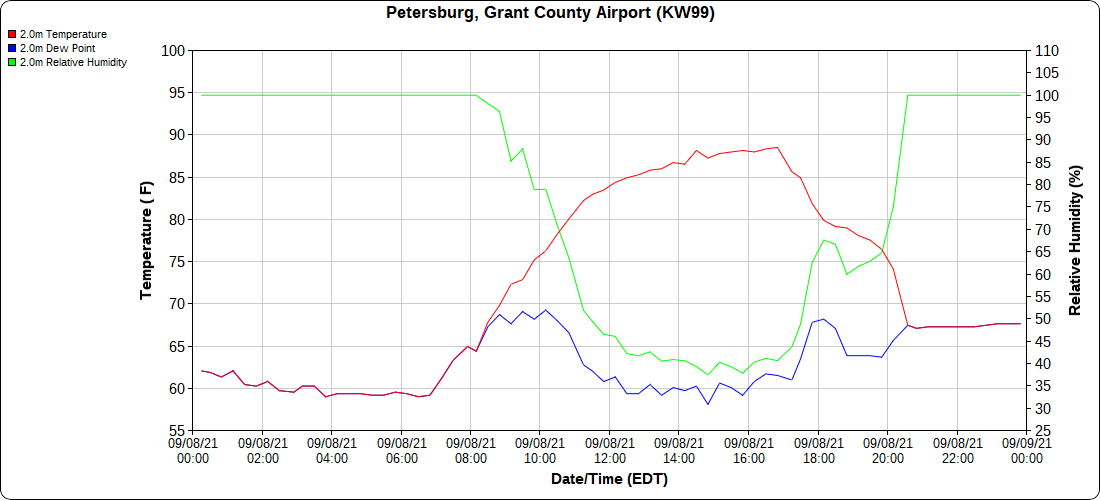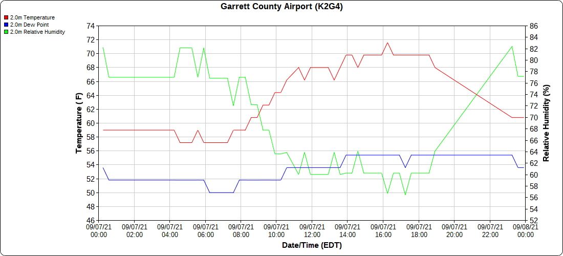 Dy007-Canaan Valley Refuge 3150′, Dy002-Cabin Mt at Bald Knob 4350′, Dy003-Cabin Mt-Western Sods 4035′, Dy004-Spruce Knob 4820′, Cvpw2-Climate Reference Network Canaan 3479′, KW99-Petersburg Grant County Airport 961′, K2G4 Garrett County Airport 2933′, KCBE Cumberland Airport 774′