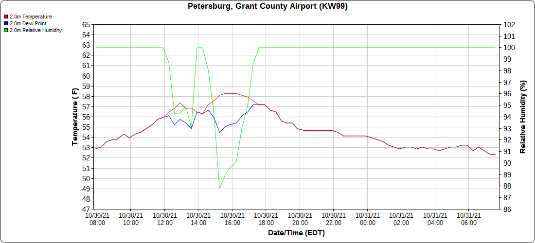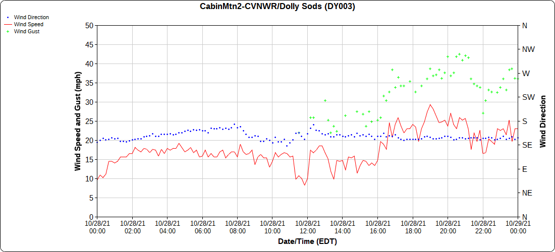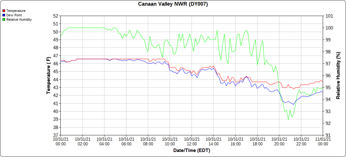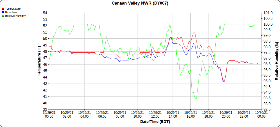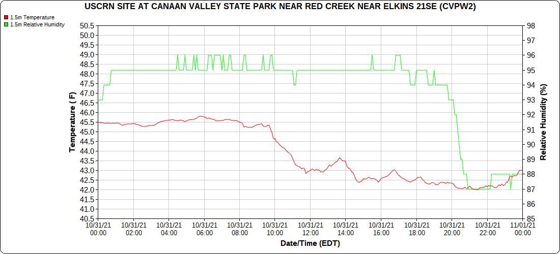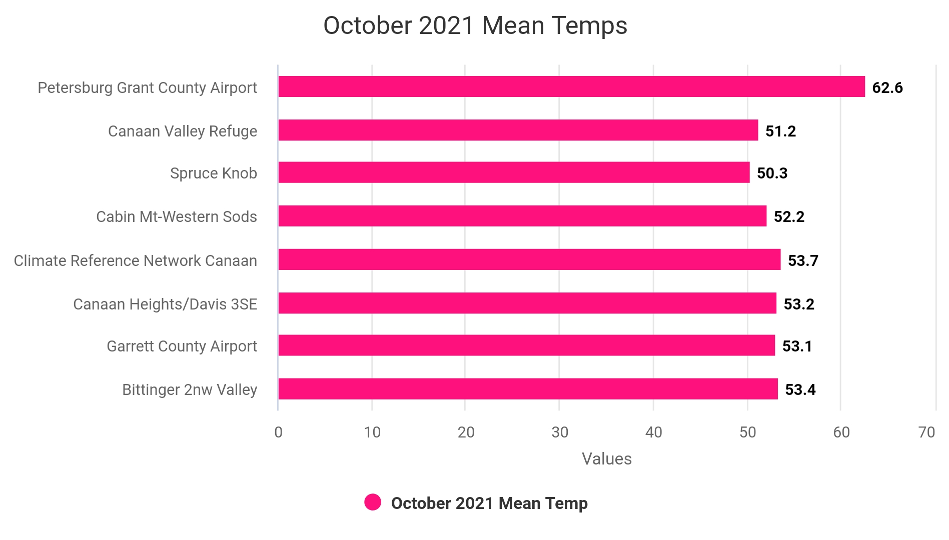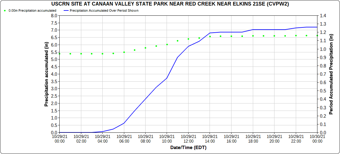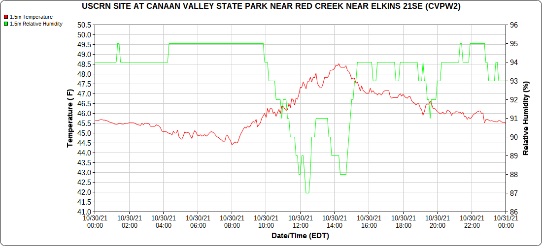 Dy007-Canaan Valley Refuge 3150′, Dy002-Cabin Mt at Bald Knob 4350′, Dy003-Cabin Mt-Western Sods 4035′, Dy004-Spruce Knob 4820′, Cvpw2-Climate Reference Network Canaan 3479′, KW99-Petersburg Grant County Airport 961′, K2G4 Garrett County Airport 2933′, KCBE Cumberland Airport 774′, BDKW2 Bearden Knob