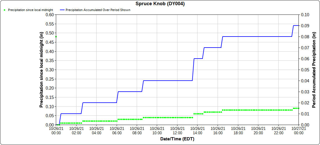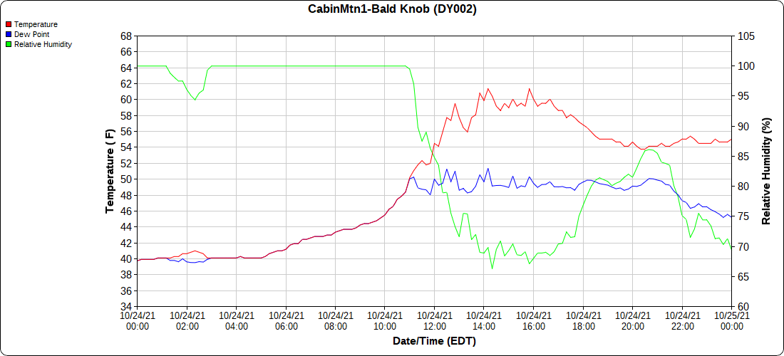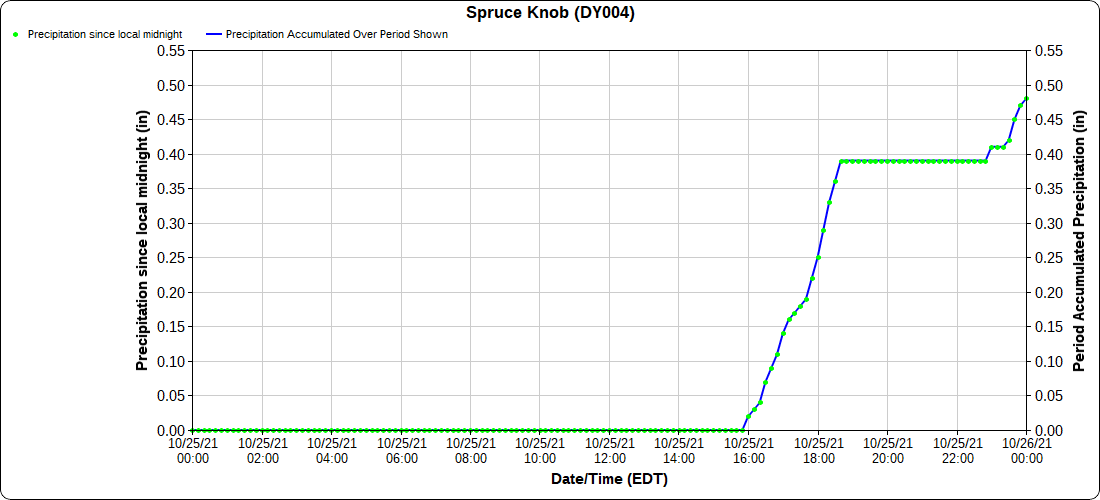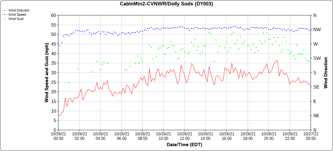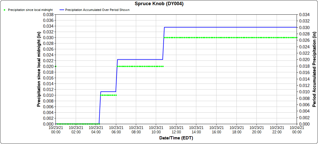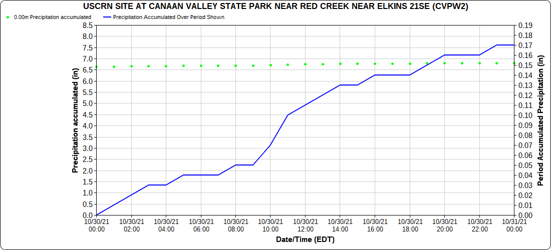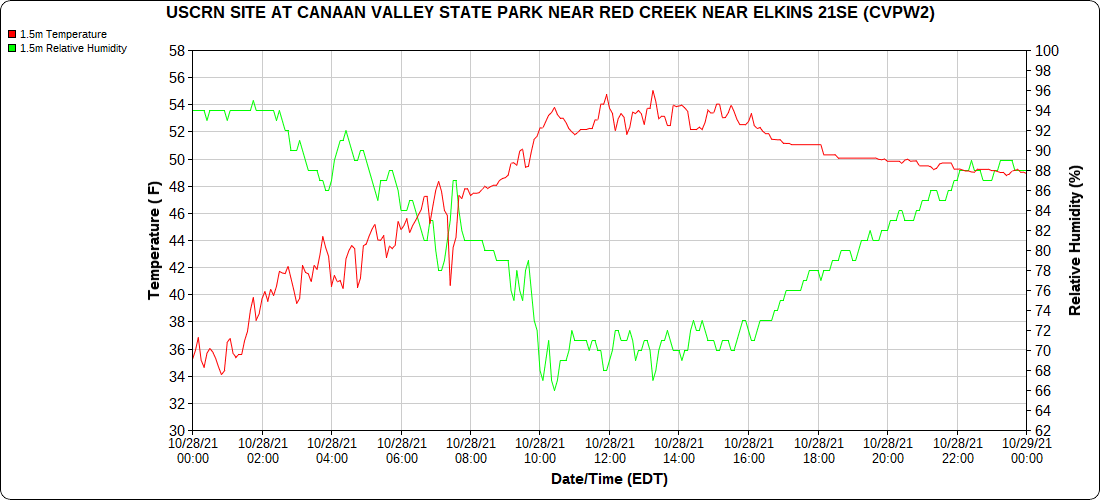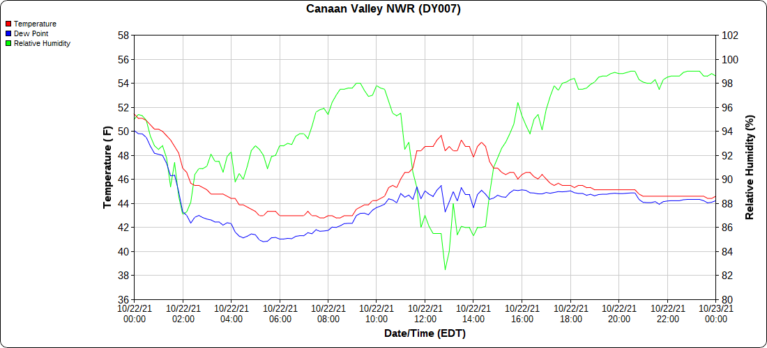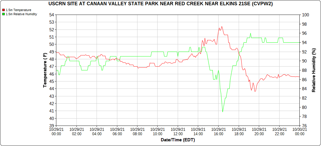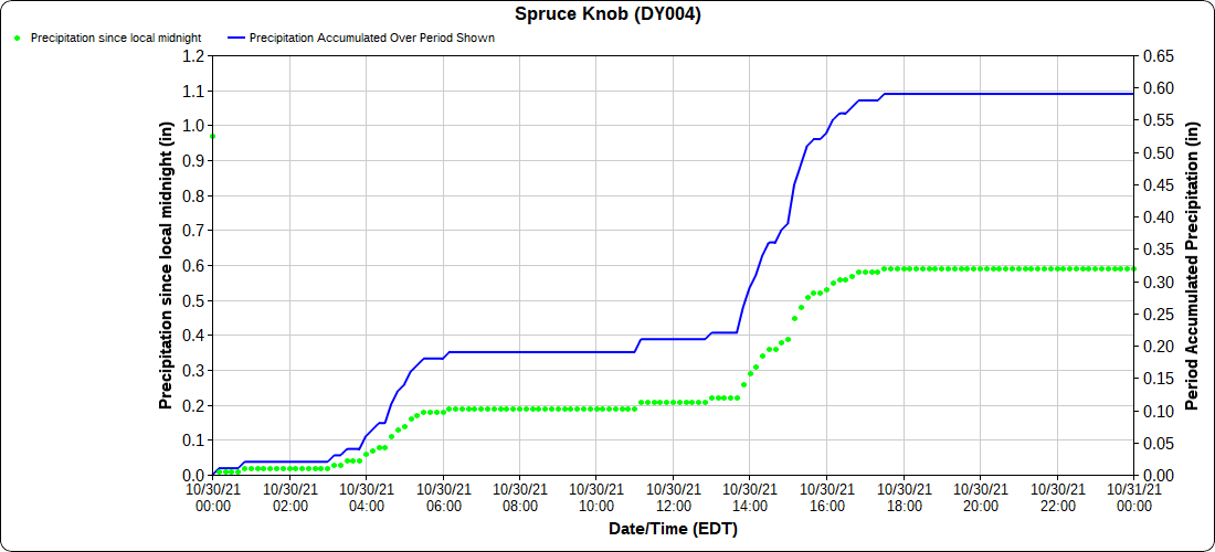 Dy007-Canaan Valley Refuge 3150′, Dy002-Cabin Mt at Bald Knob 4350′, Dy003-Cabin Mt-Western Sods 4035′, Dy004-Spruce Knob 4820′, Cvpw2-Climate Reference Network Canaan 3479′, KW99-Petersburg Grant County Airport 961′, K2G4 Garrett County Airport 2933′, KCBE Cumberland Airport 774′, BDKW2 Bearden Knob