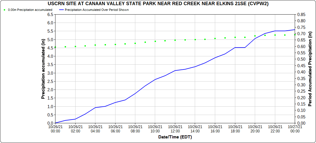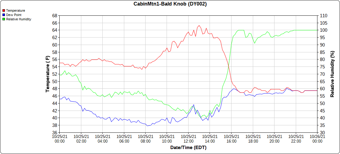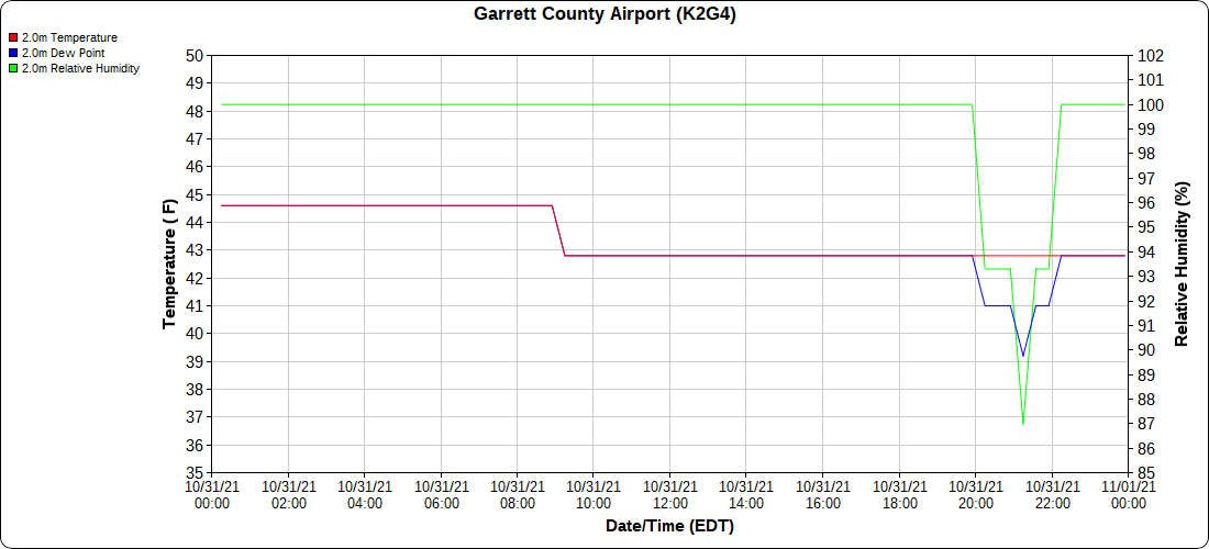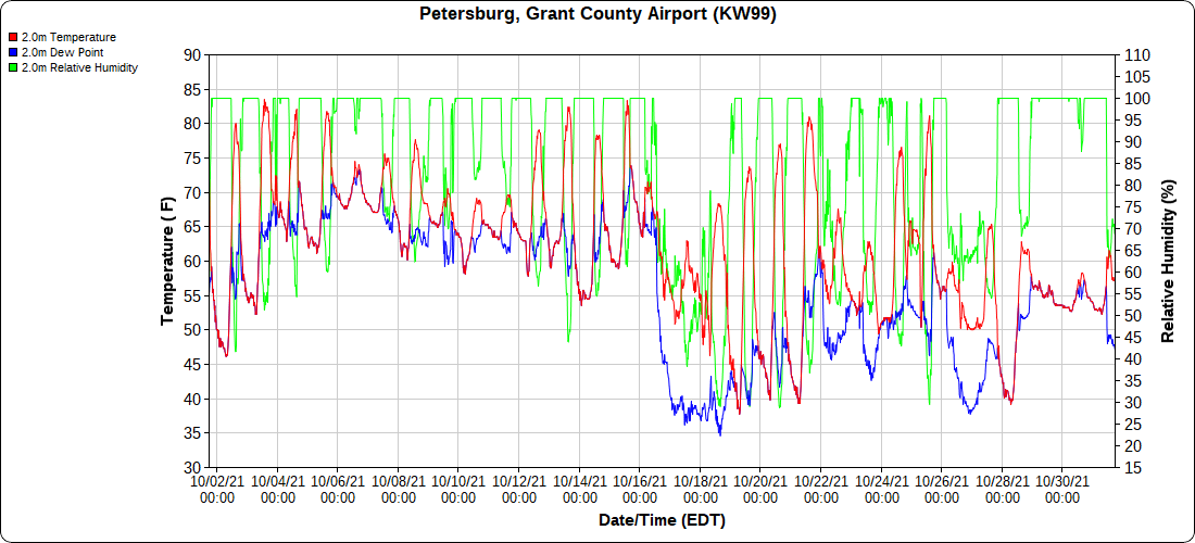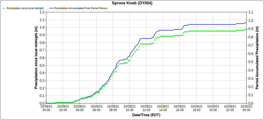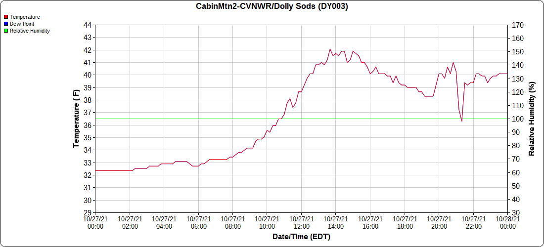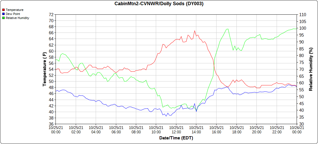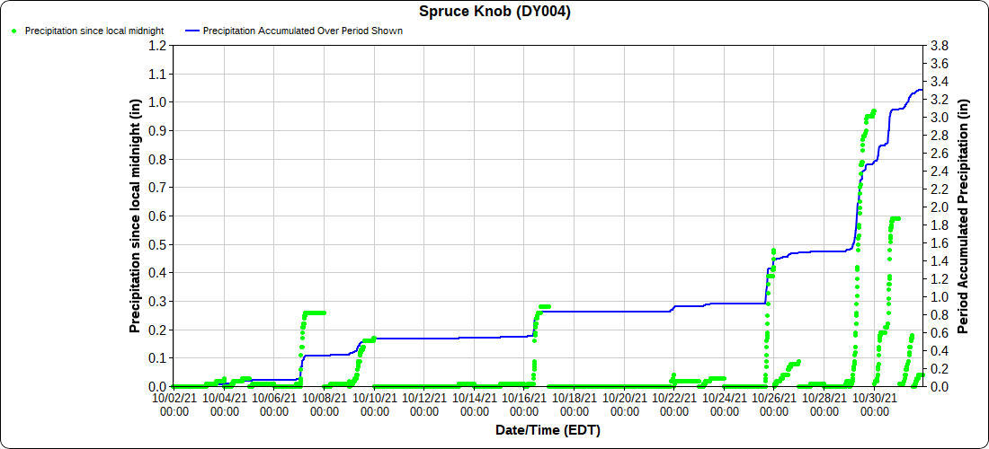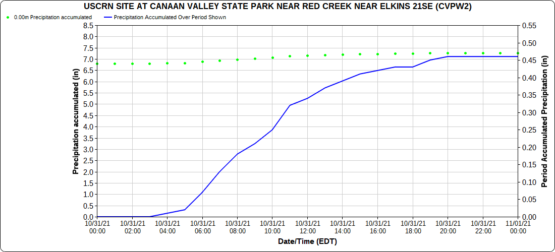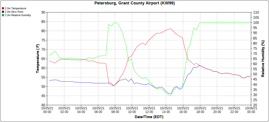 Dy007-Canaan Valley Refuge 3150′, Dy002-Cabin Mt at Bald Knob 4350′, Dy003-Cabin Mt-Western Sods 4035′, Dy004-Spruce Knob 4820′, Cvpw2-Climate Reference Network Canaan 3479′, KW99-Petersburg Grant County Airport 961′, K2G4 Garrett County Airport 2933′, KCBE Cumberland Airport 774′, BDKW2 Bearden Knob