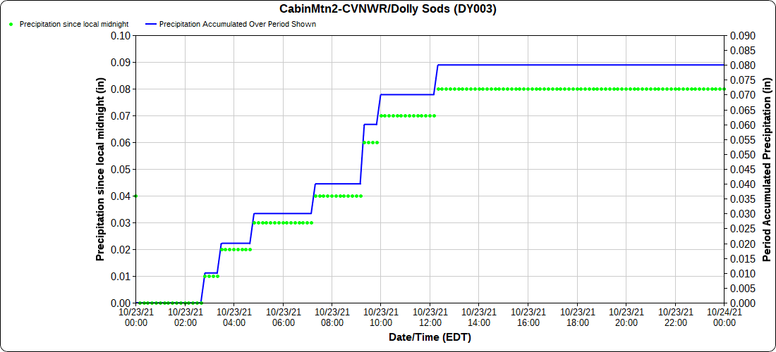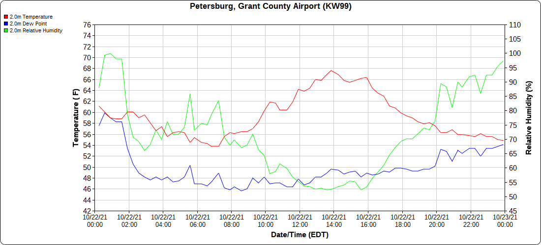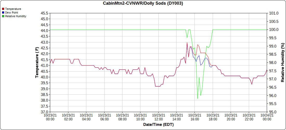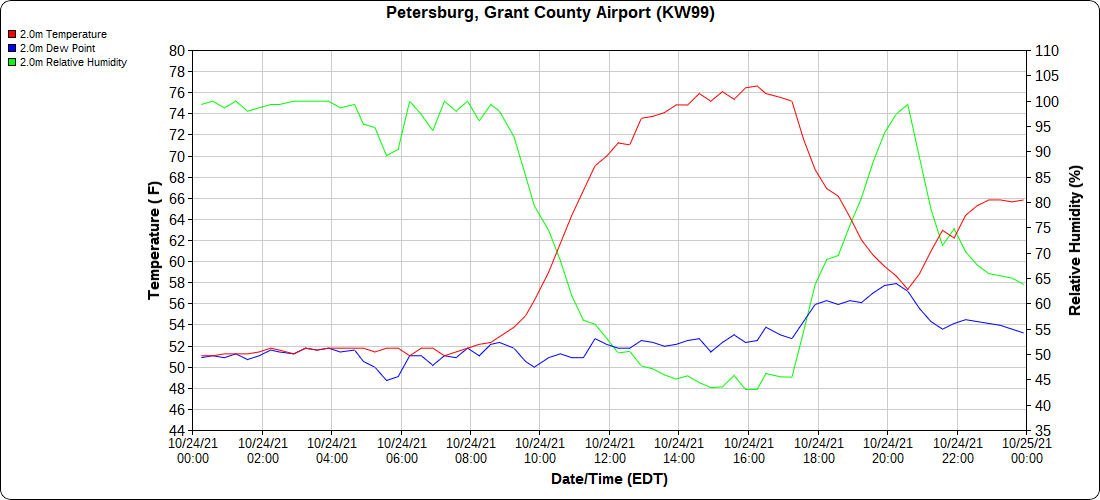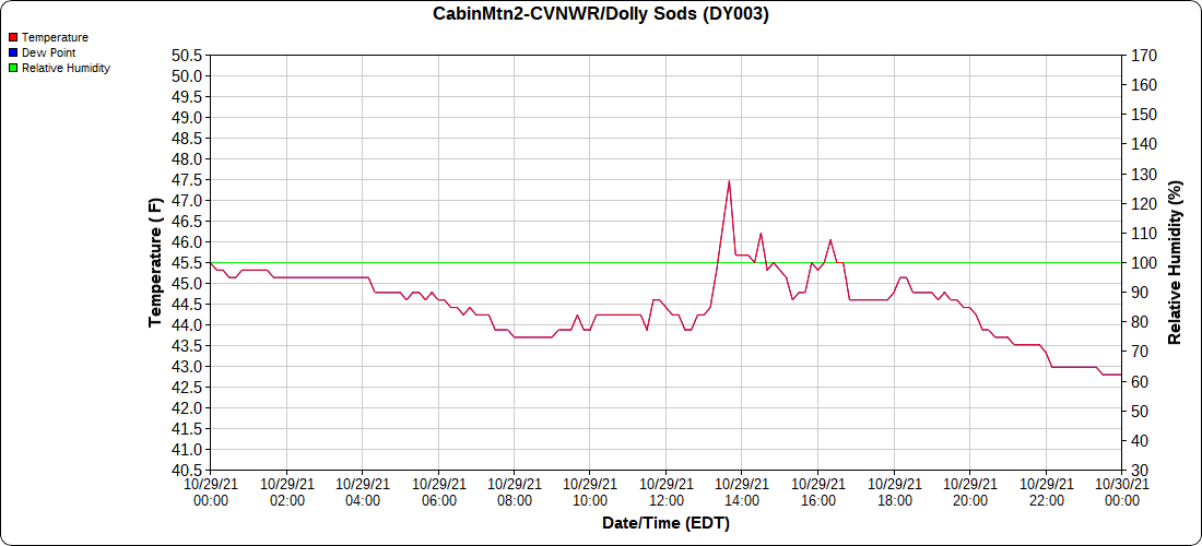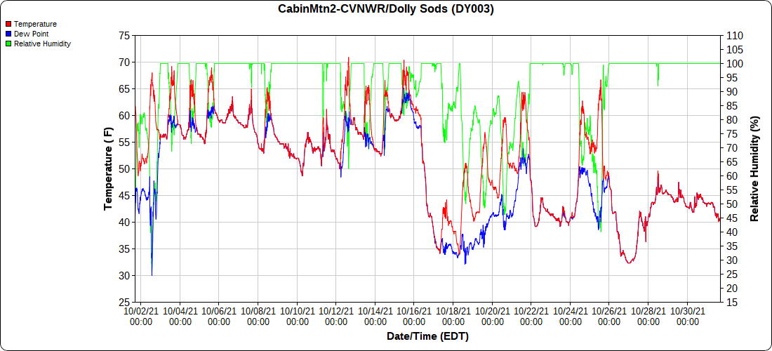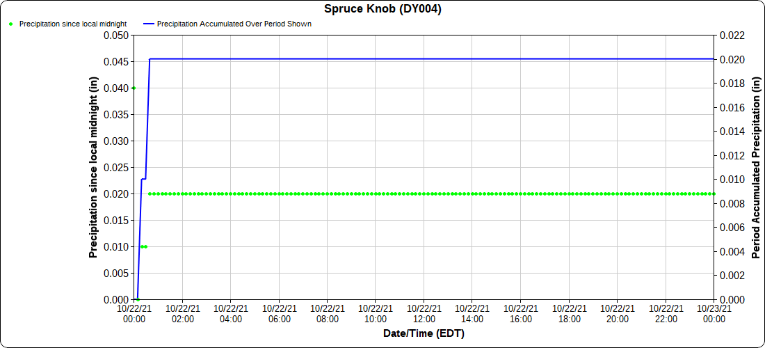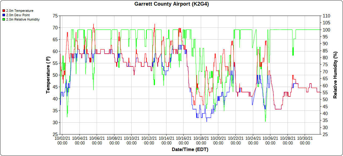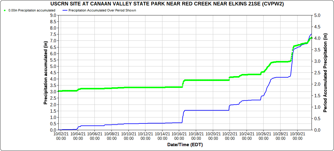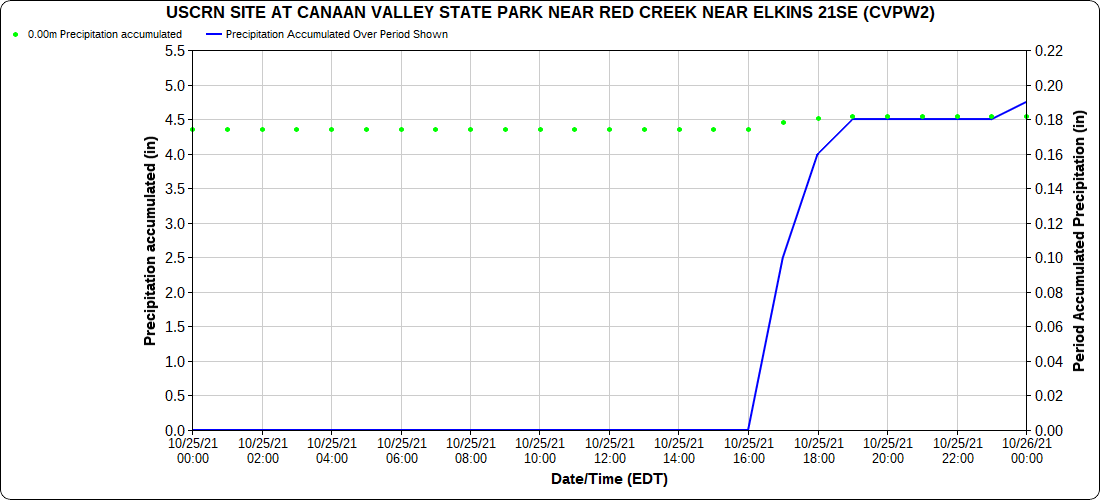 Dy007-Canaan Valley Refuge 3150′, Dy002-Cabin Mt at Bald Knob 4350′, Dy003-Cabin Mt-Western Sods 4035′, Dy004-Spruce Knob 4820′, Cvpw2-Climate Reference Network Canaan 3479′, KW99-Petersburg Grant County Airport 961′, K2G4 Garrett County Airport 2933′, KCBE Cumberland Airport 774′, BDKW2 Bearden Knob