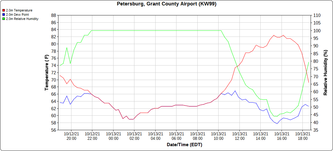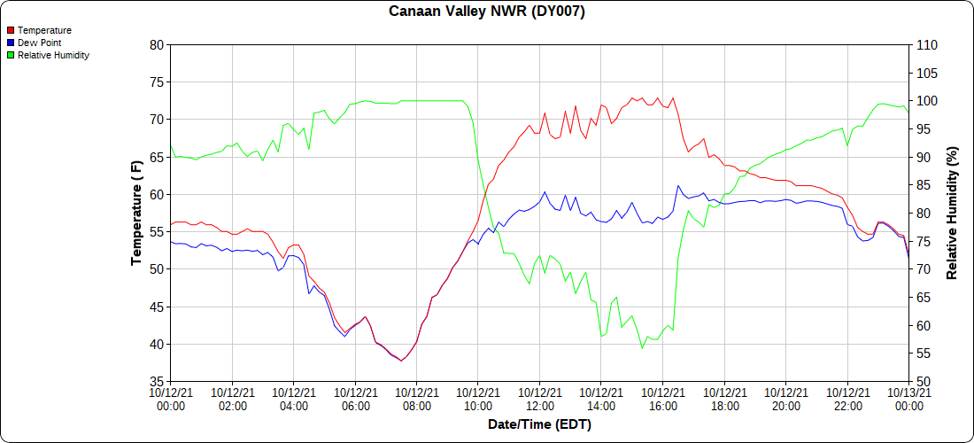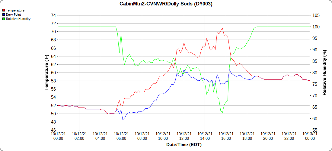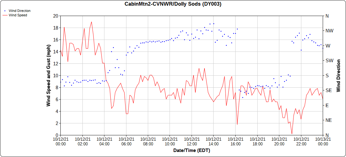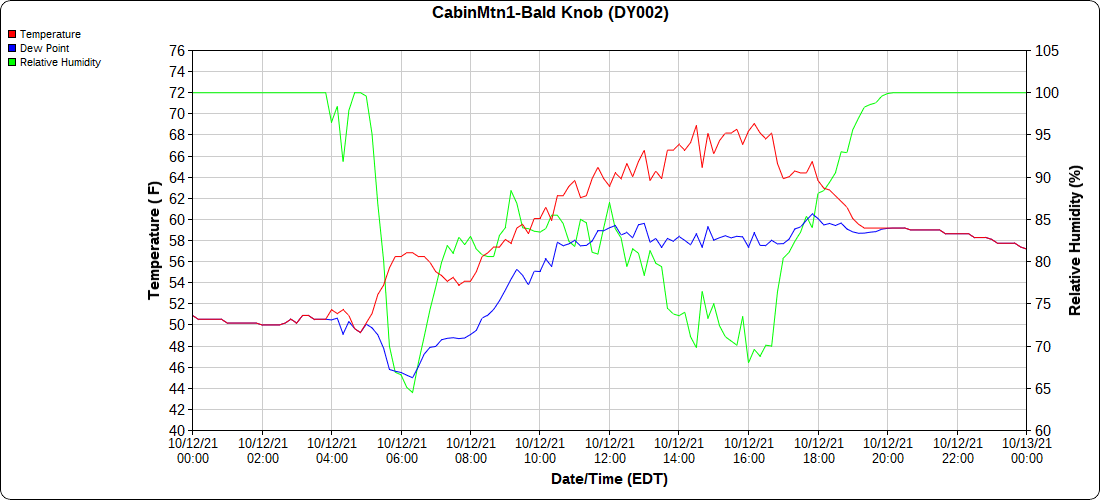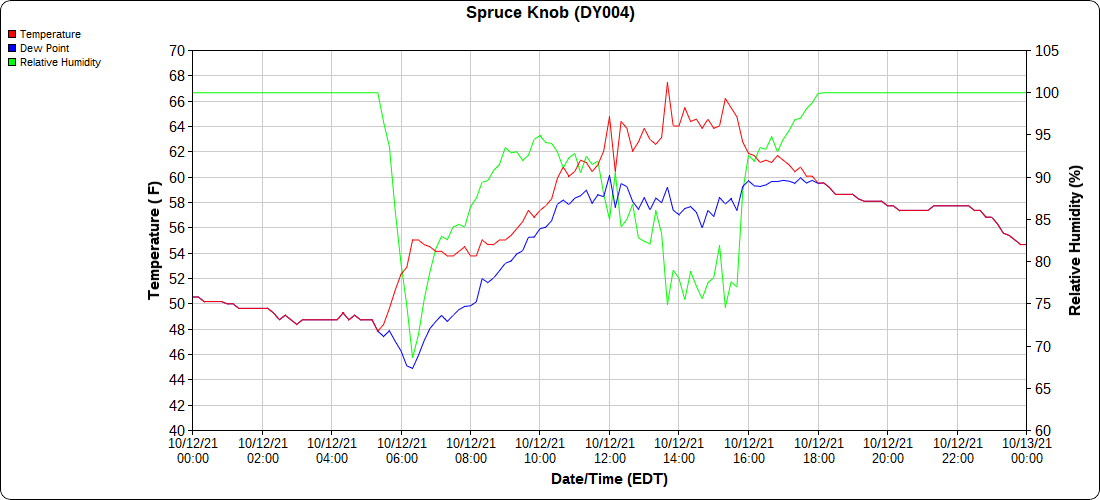 Cloudy early, breaksof sun through the day. East side of the Alleghenies held dreary a good while today