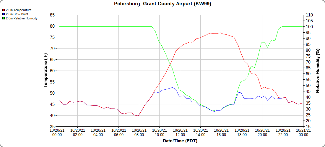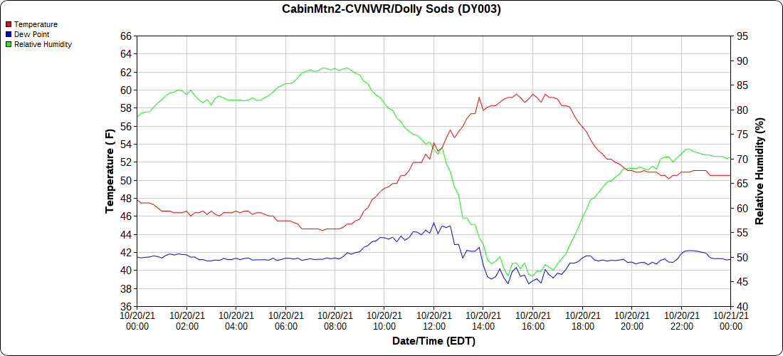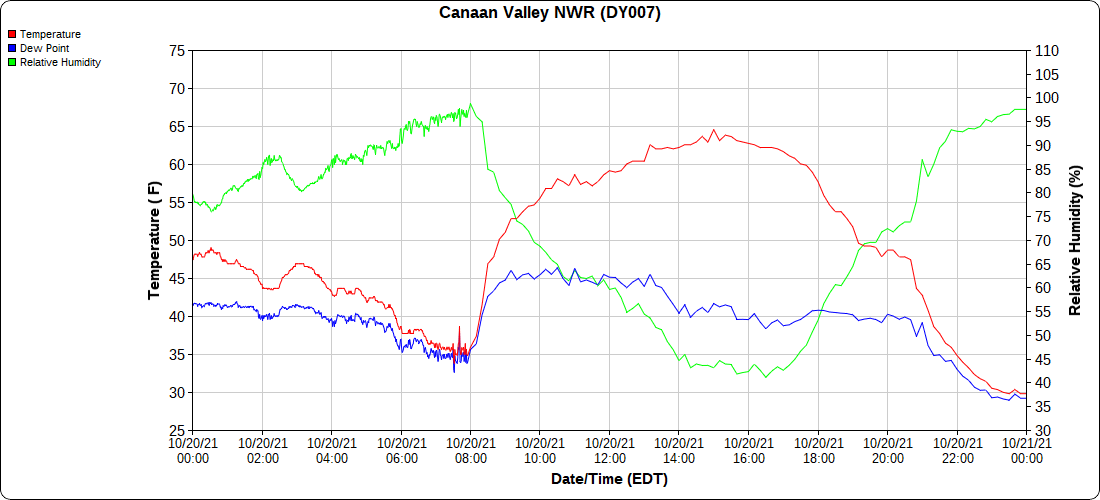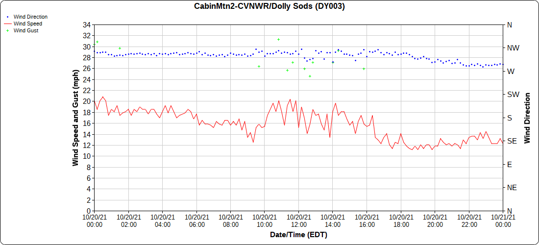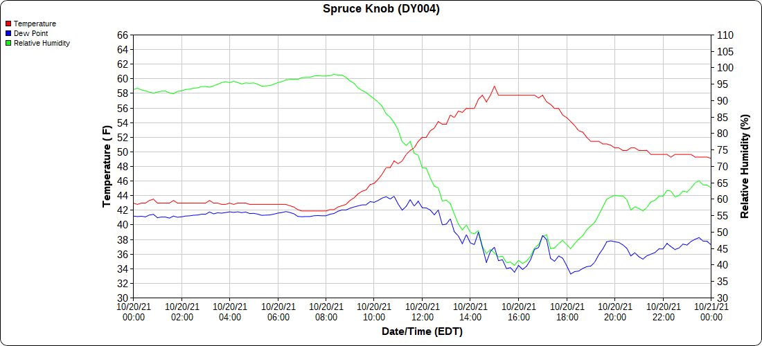 Dy007-Canaan Valley Refuge 3150′, Dy002-Cabin Mt at Bald Knob 4350′, Dy003-Cabin Mt-Western Sods 4035′, Dy004-Spruce Knob 4820′, Cvpw2-Climate Reference Network Canaan 3479′, KW99-Petersburg Grant County Airport 961′, K2G4 Garrett County Airport 2933′, KCBE Cumberland Airport 774′